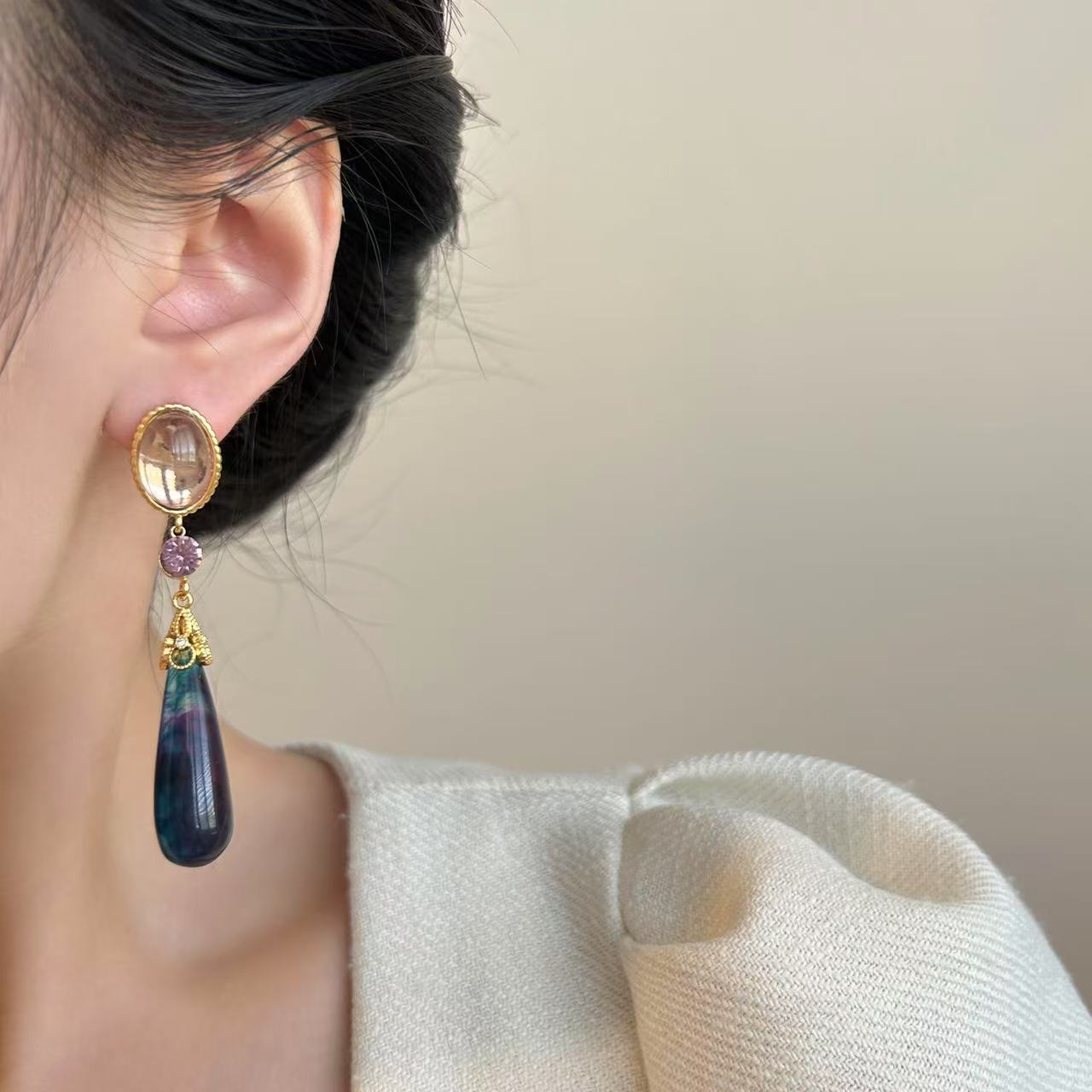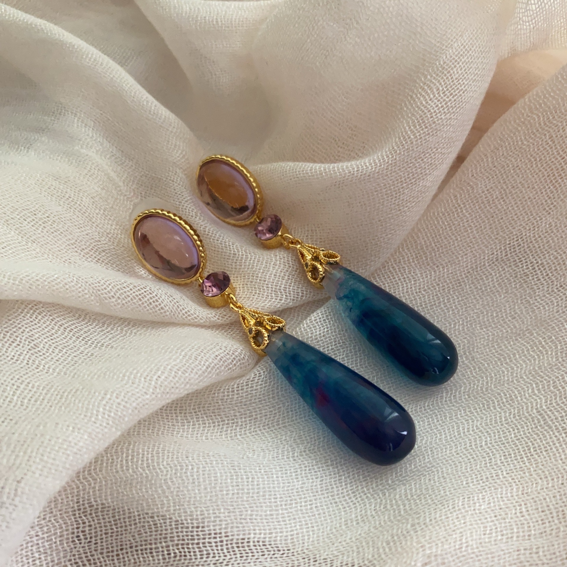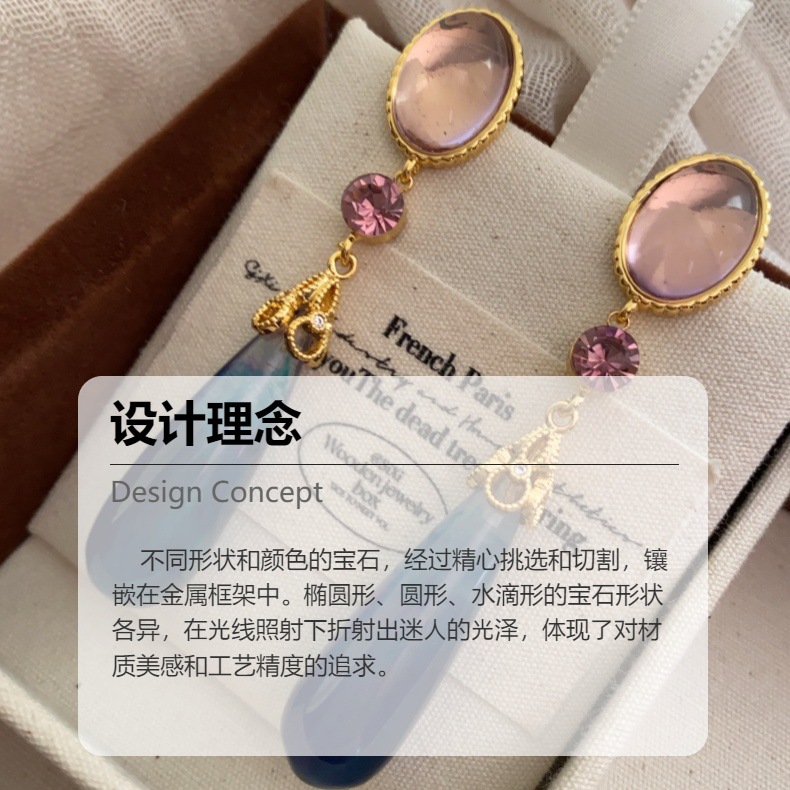 小众独特镶钻树脂水滴耳环复古轻奢长款耳坠小众设计中古风耳饰女