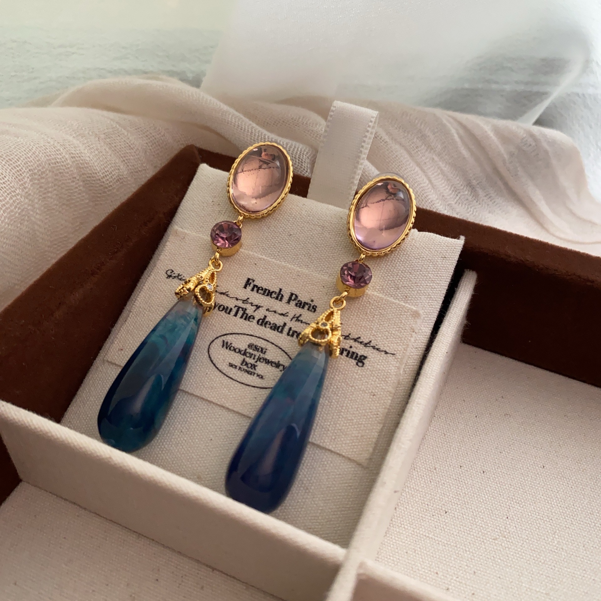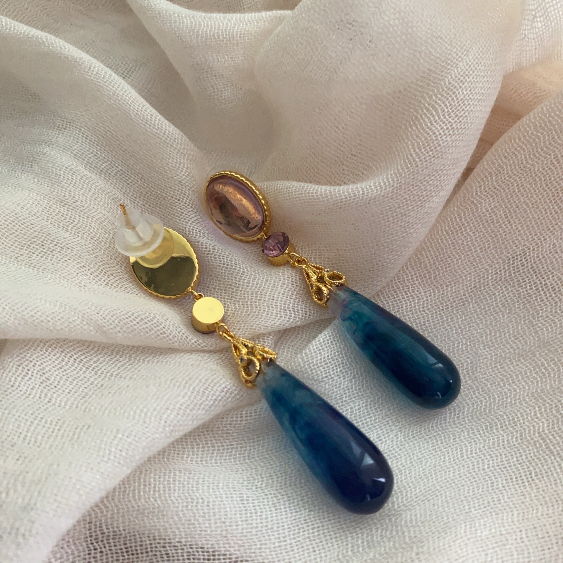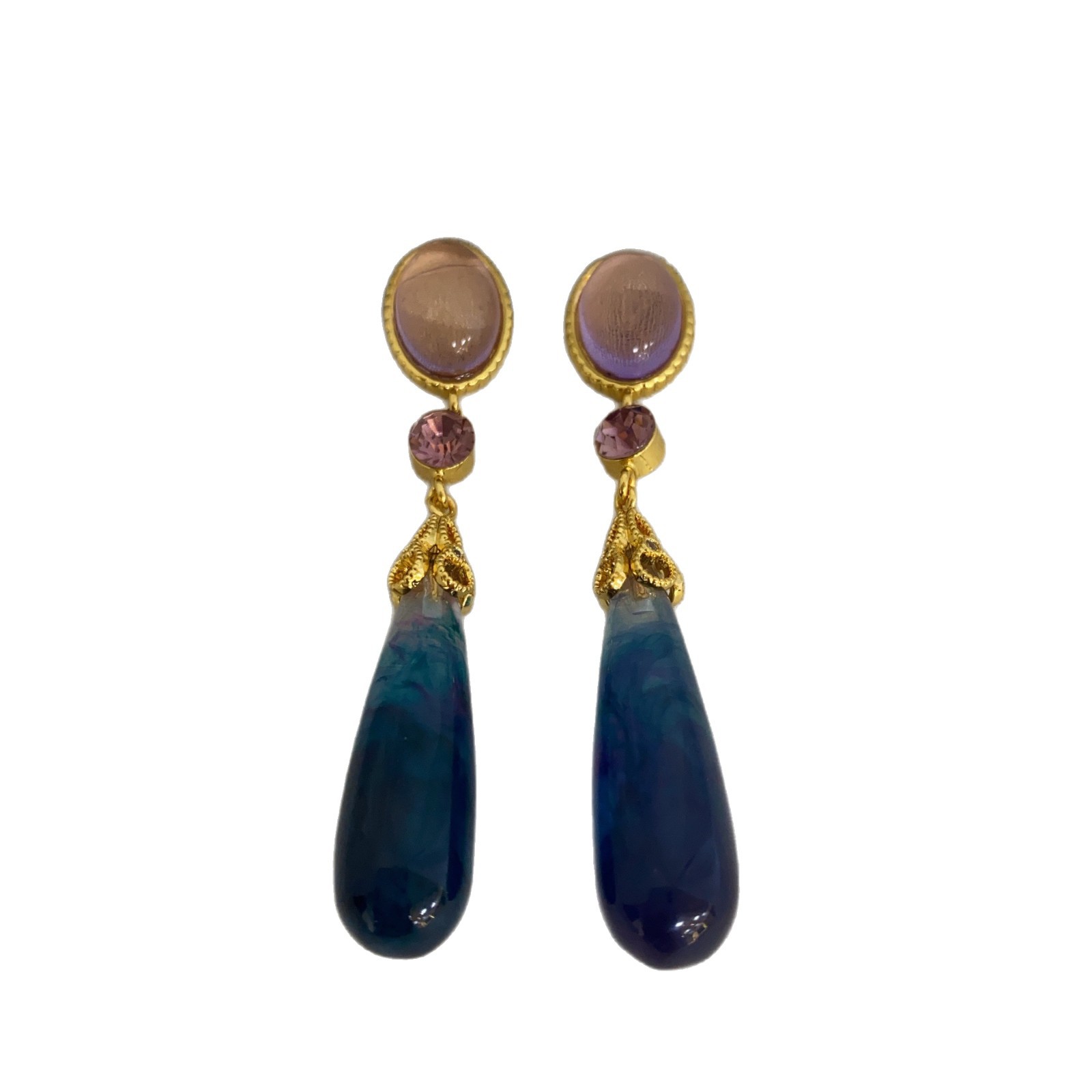 小众独特镶钻树脂水滴耳环复古轻奢长款耳坠小众设计中古风耳饰女