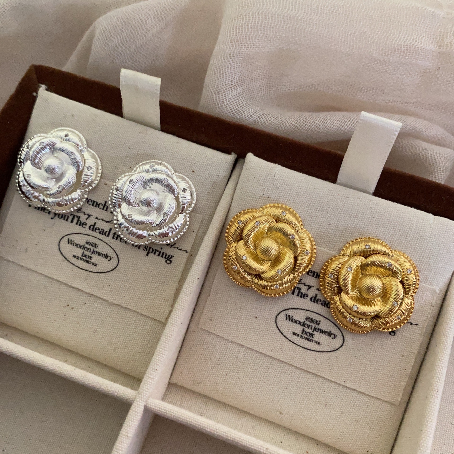 小香风花朵耳环轻奢高级感现货复古饰品花朵耳钉精致时尚通勤耳饰
