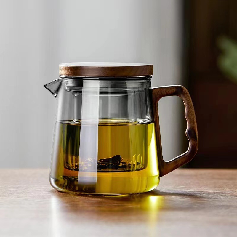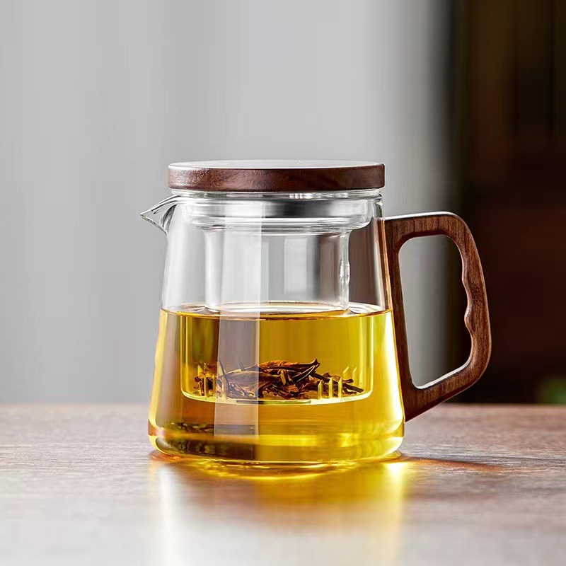 玻璃茶壶耐高温玻璃泡茶壶玻璃茶具茶壶套装高硼硅木把茶壶
