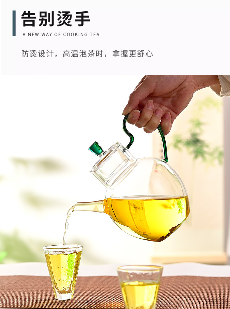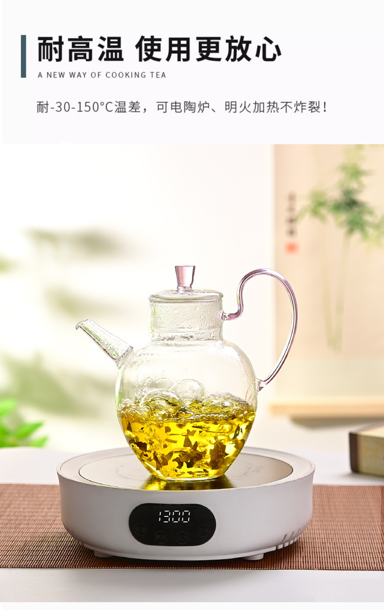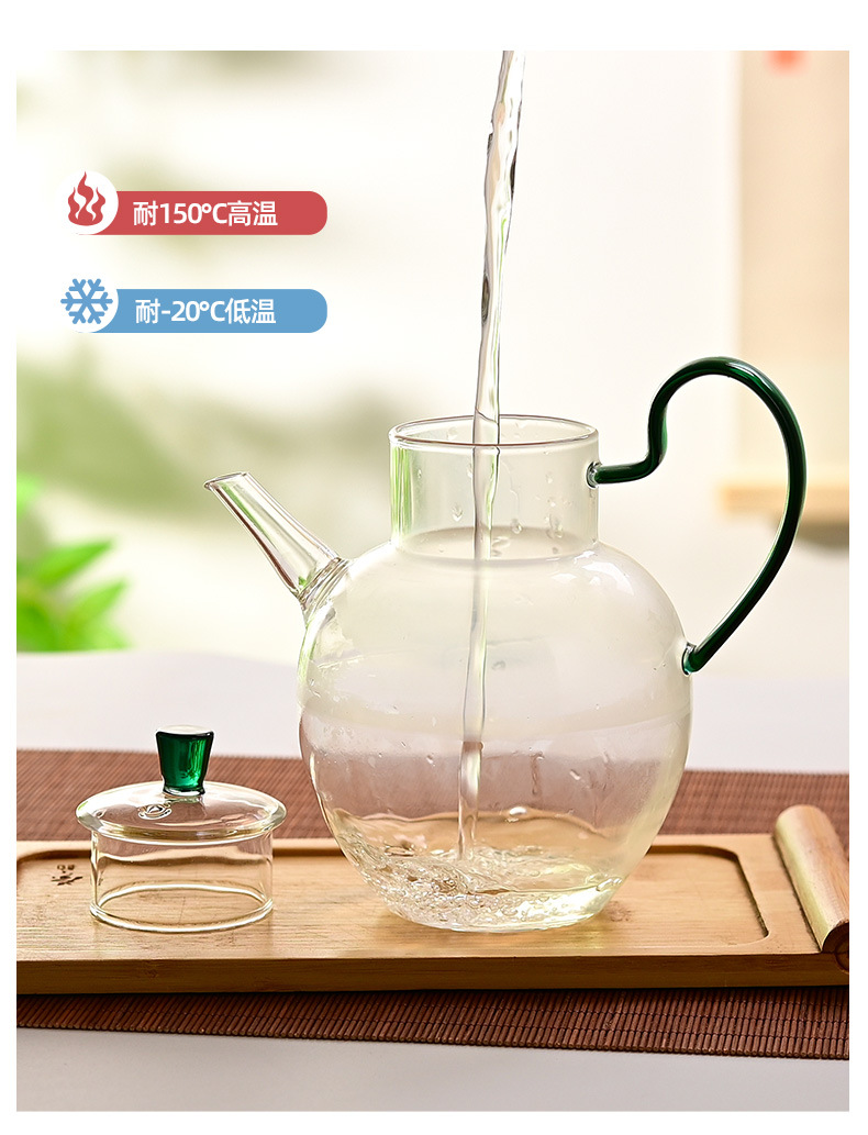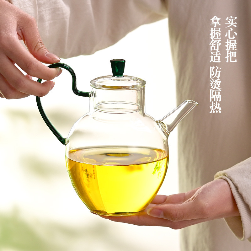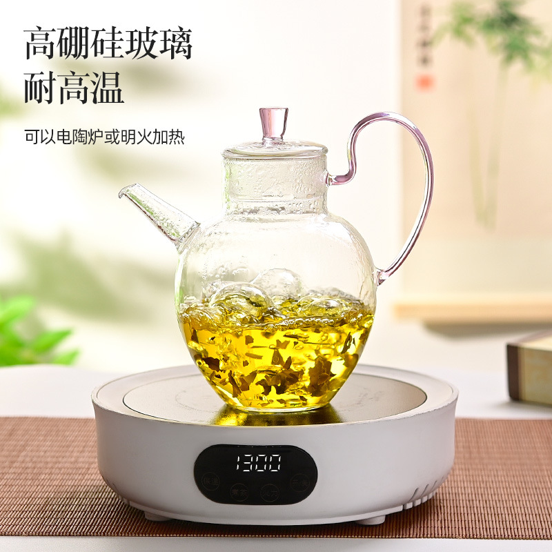 仿宋玻璃壶大容量苹果壶高硼硅玻璃泡茶壶耐高温花茶壶可明火执壶