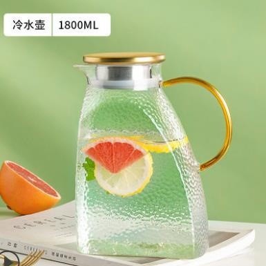 高硼硅耐高温锤纹玻璃凉水壶 家用大容量冷水壶 冰箱侧门凉水茶壶