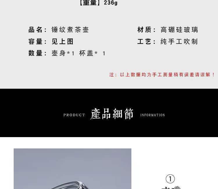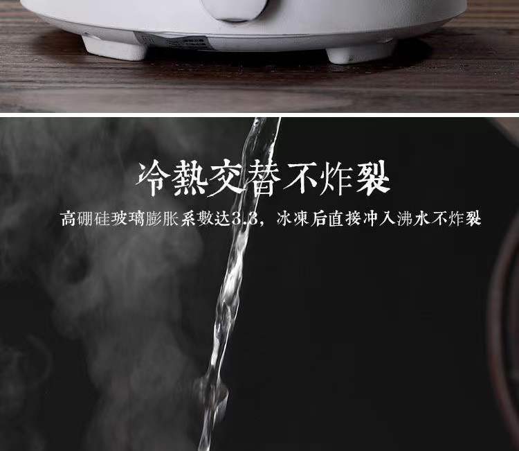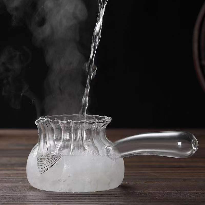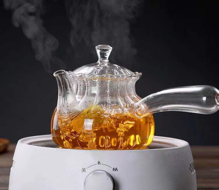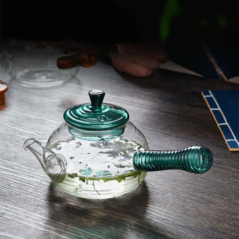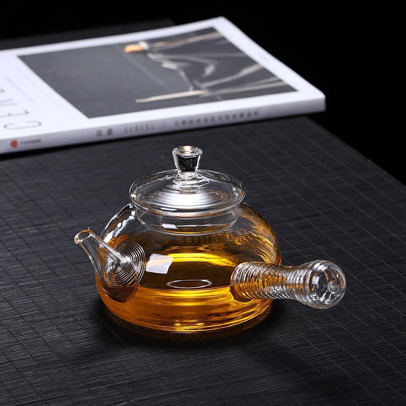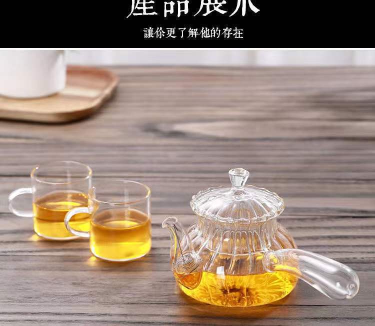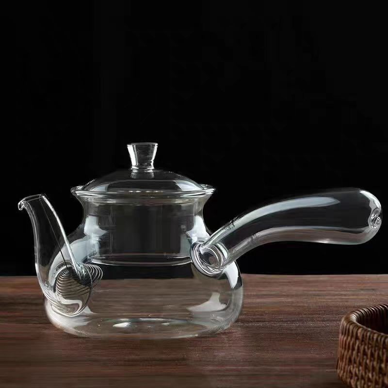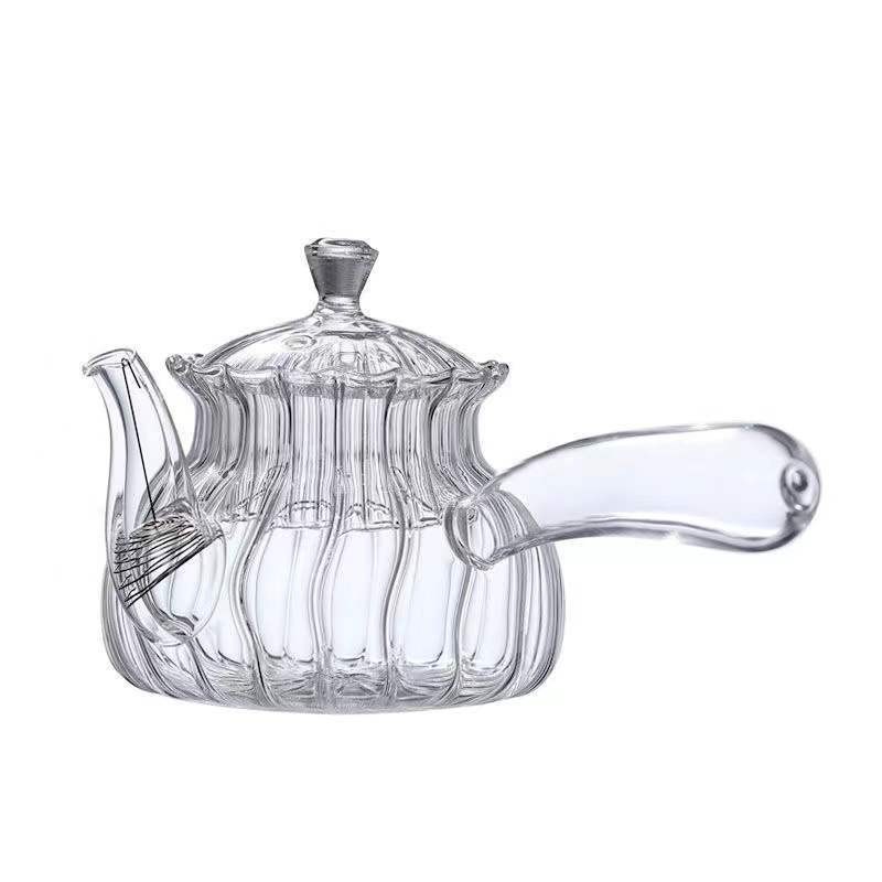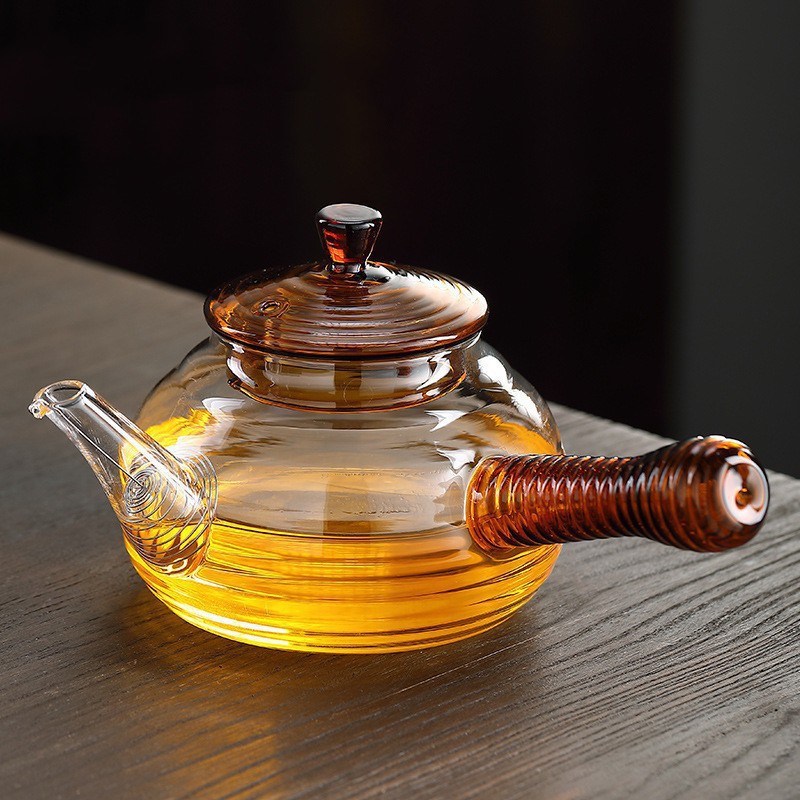 中式高硼硅玻璃壶条纹侧把玻璃花茶壶蒸煮茶壶长柄带过滤泡茶壶