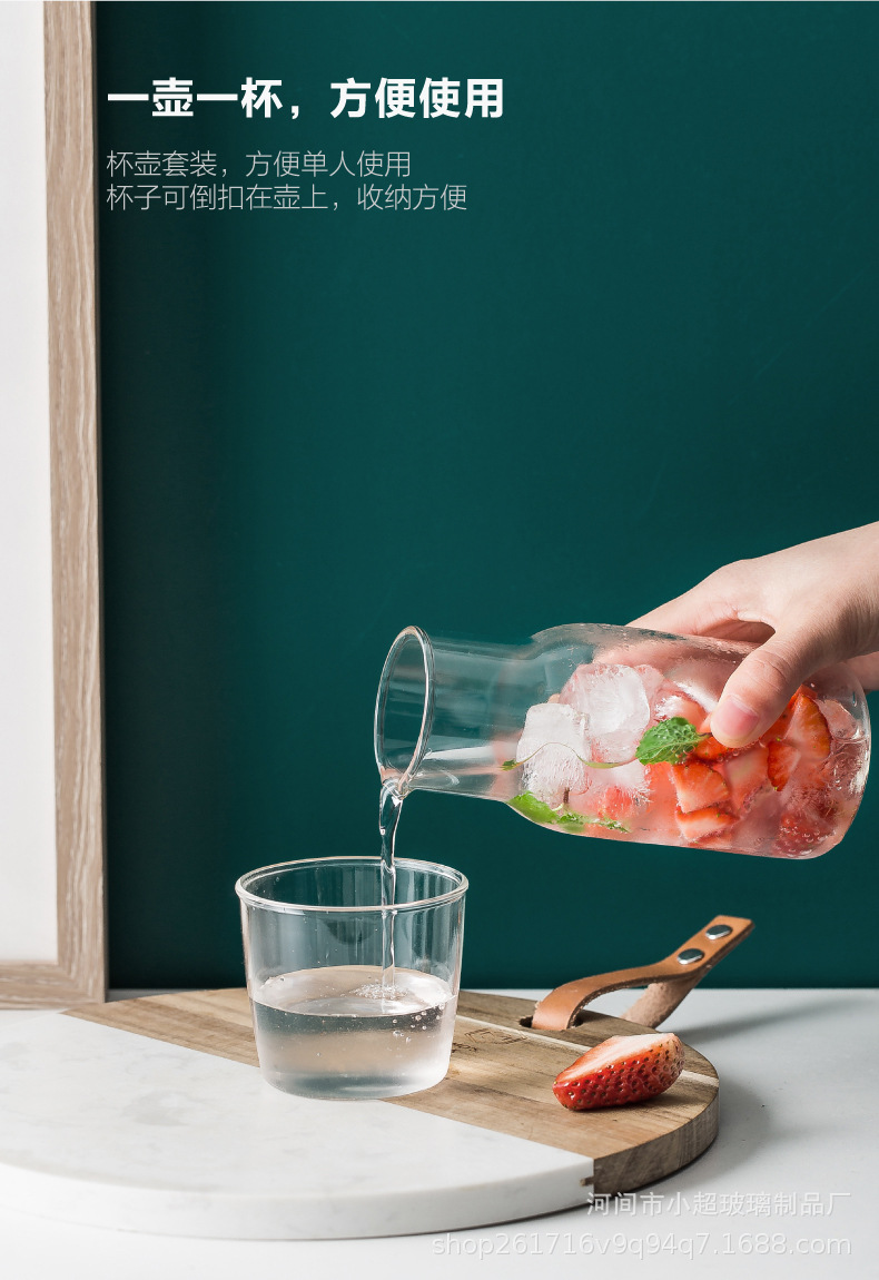 高硼硅玻璃单层凉水壶高级感一壶一杯果茶一人饮家用小容量凉水壶