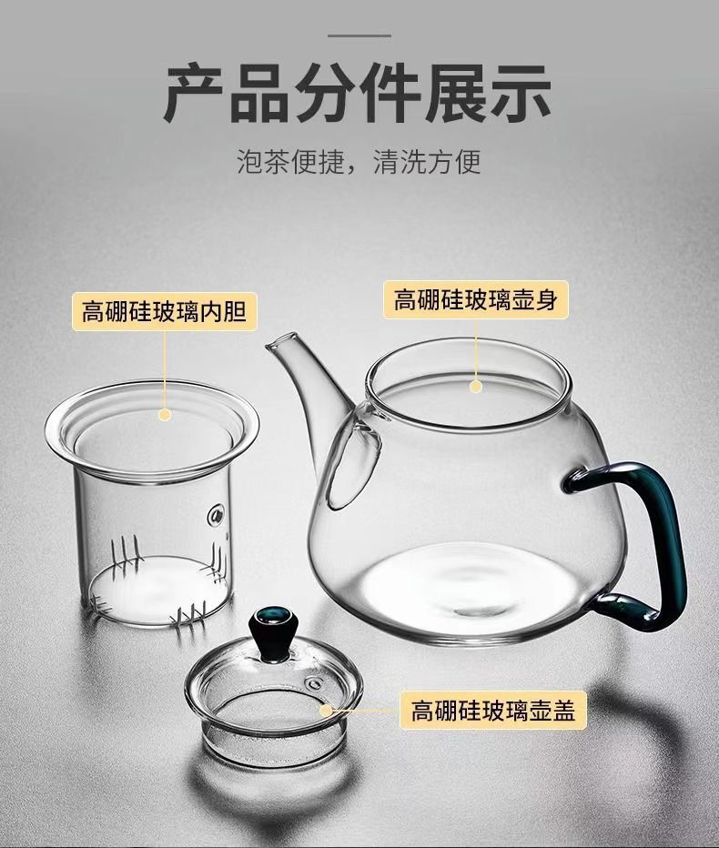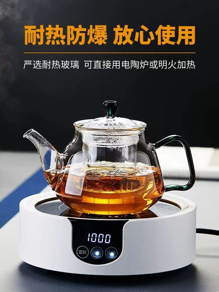 厂家定制玻璃茶壶耐高温煮茶器电陶炉煮茶壶烧水壶过滤花手绘工艺