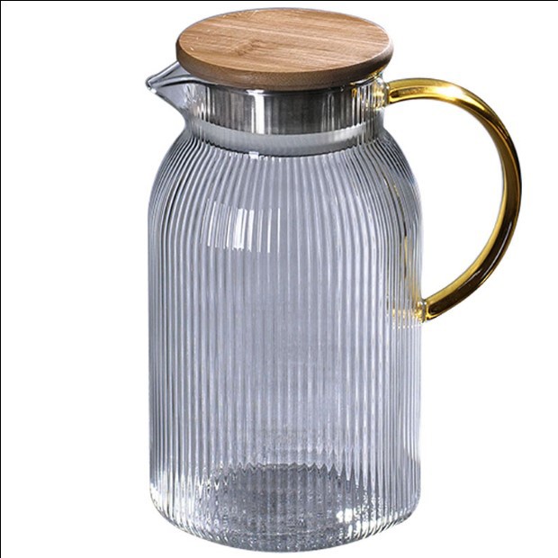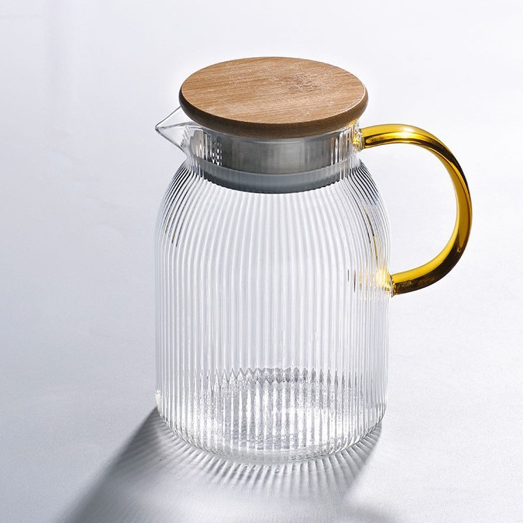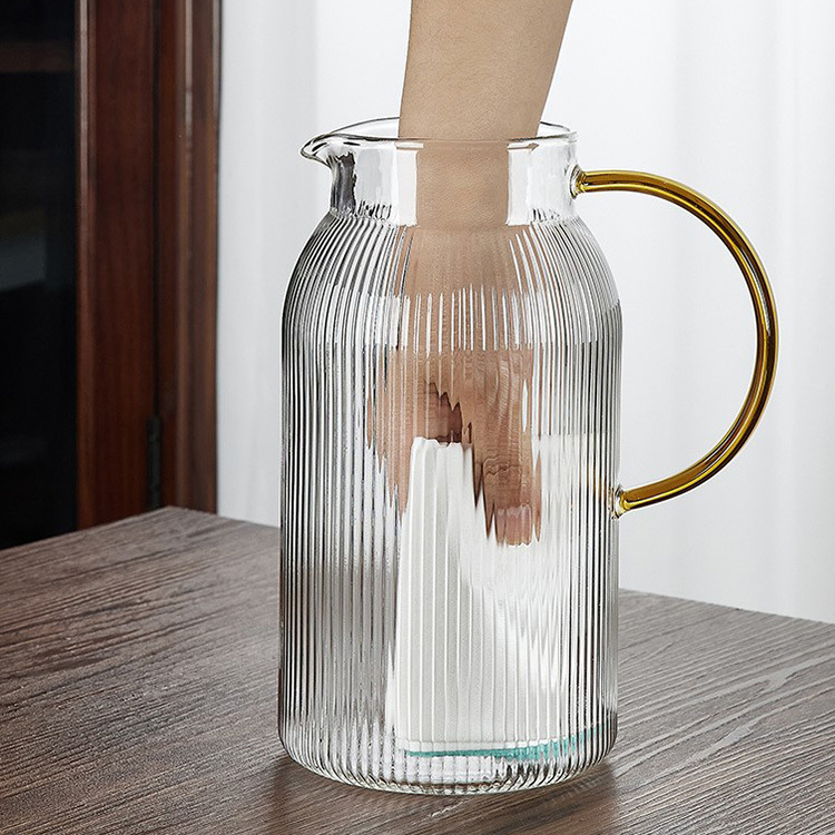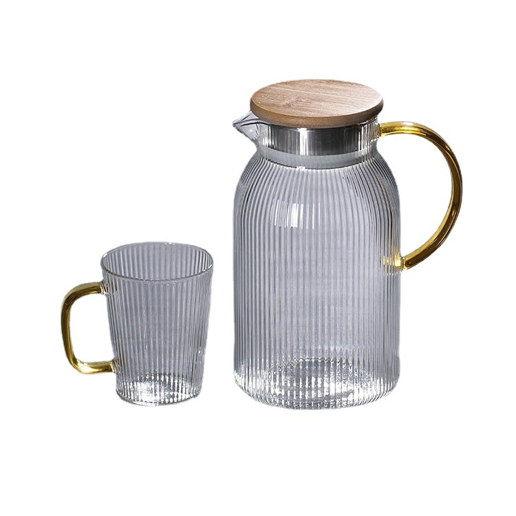 日式竖纹玻璃冷水壶凉水壶夏日果汁大容量白开水大肚条纹杯扎壶
