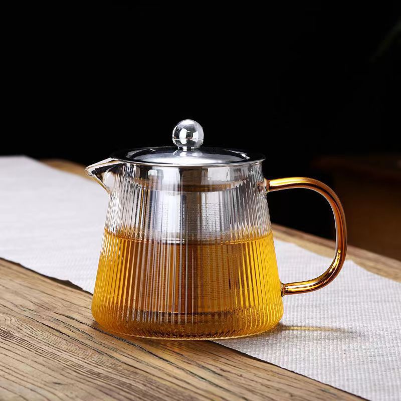 加厚高硼硅玻璃茶壶耐高温钢漏壶条纹泡茶水壶过滤家用茶具套装