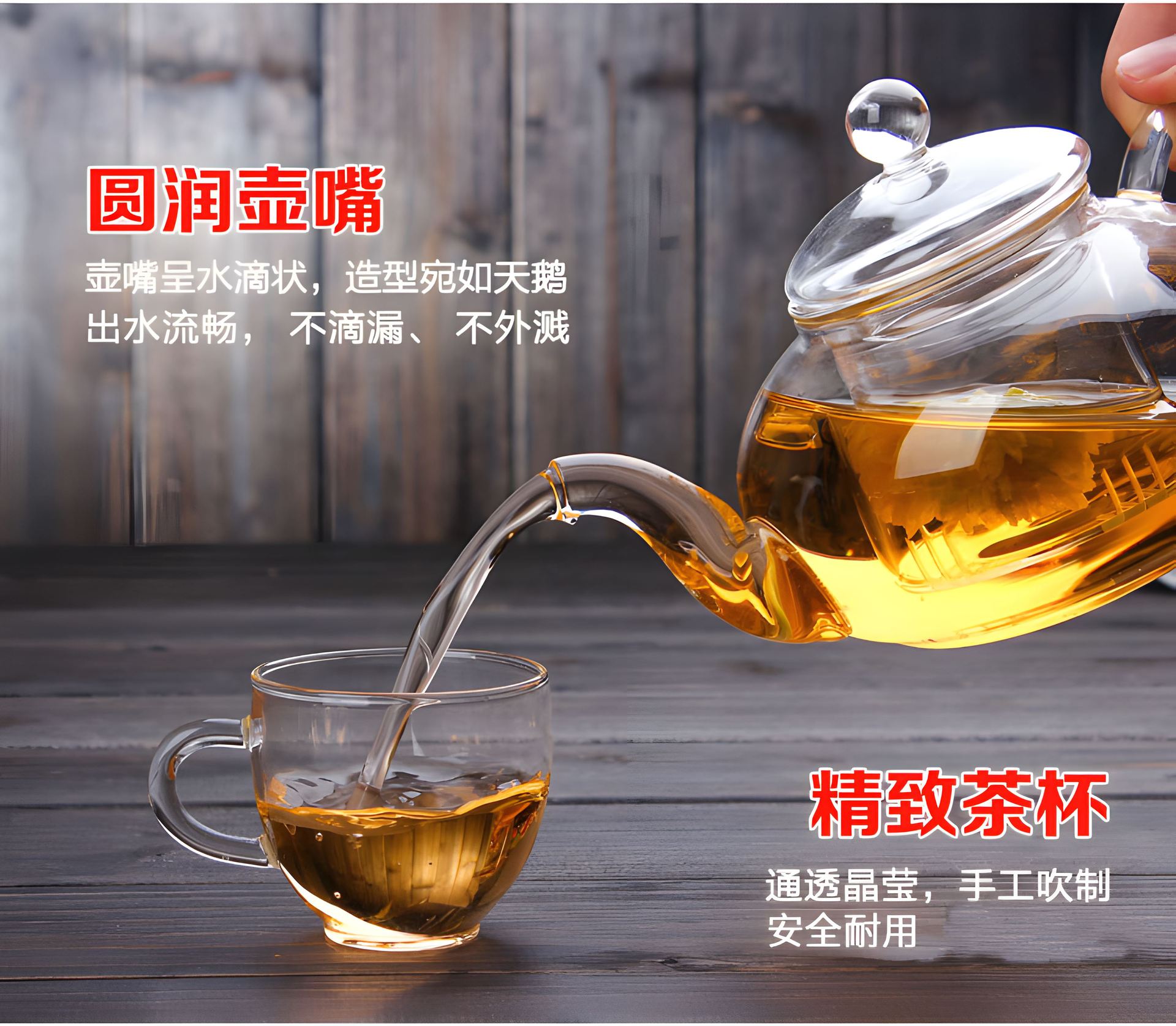 茶水分离可过滤花茶壶高硼硅玻璃家用多规格泡茶壶耐高温侧把茶壶