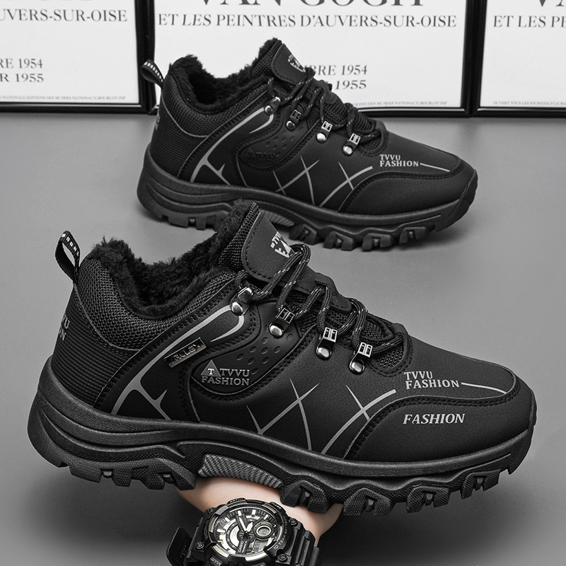 2025加绒保暖工装鞋防滑耐磨工地干活鞋户外旅游登山百搭休闲潮鞋