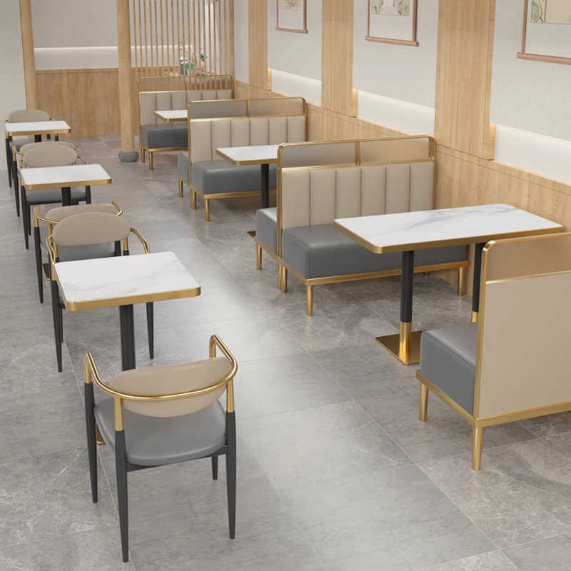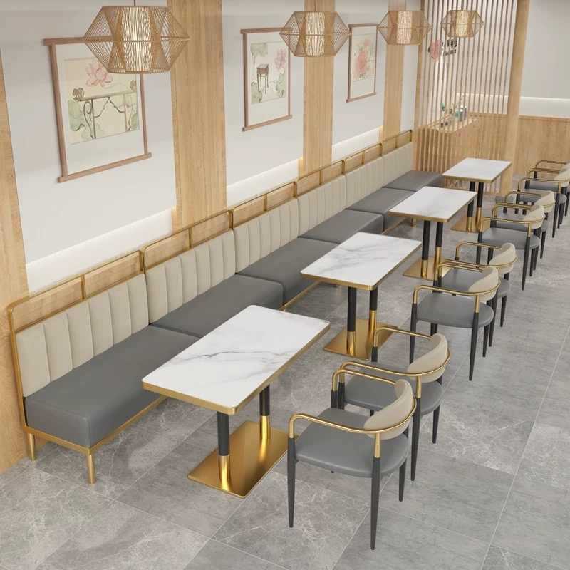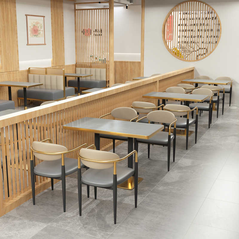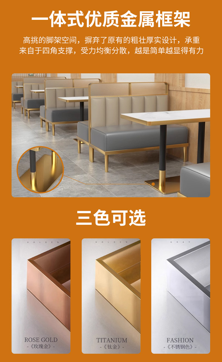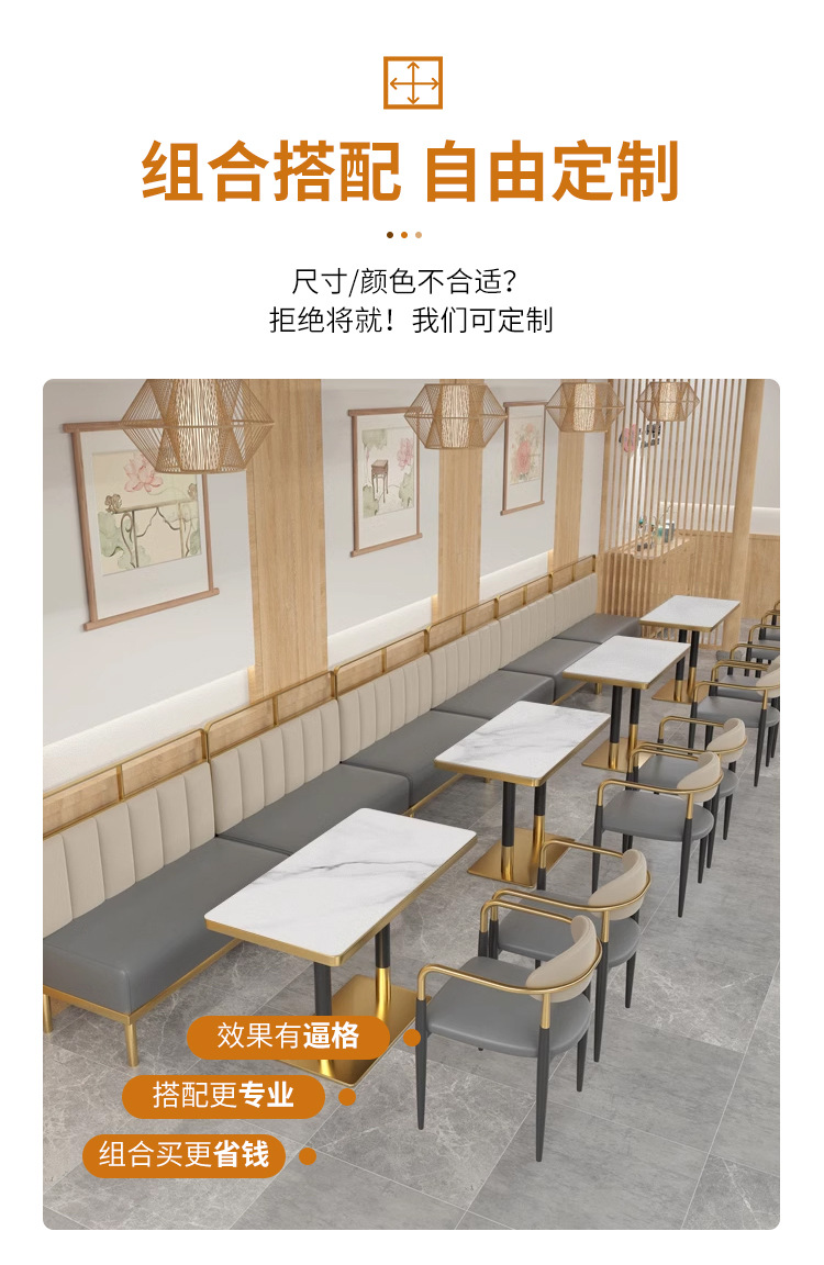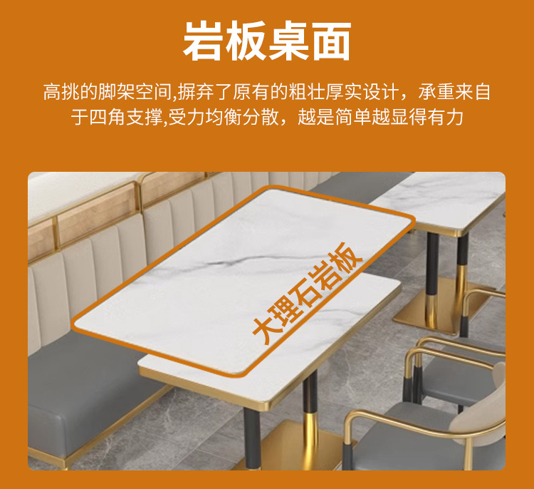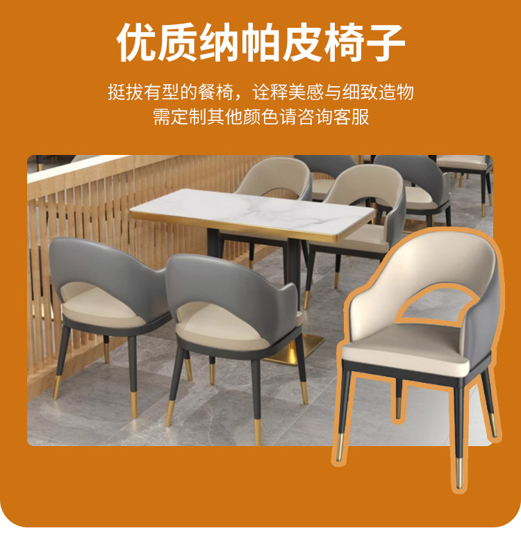 轻奢餐桌椅商用意式餐厅椅子西餐厅奶茶店餐桌椅组合不锈钢卡座