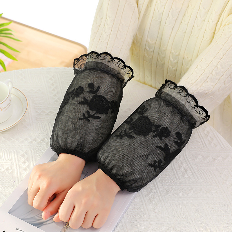 蕾丝套袖女可爱短款袖套工作护袖秋冬季袖头防脏学生办公室羽绒服