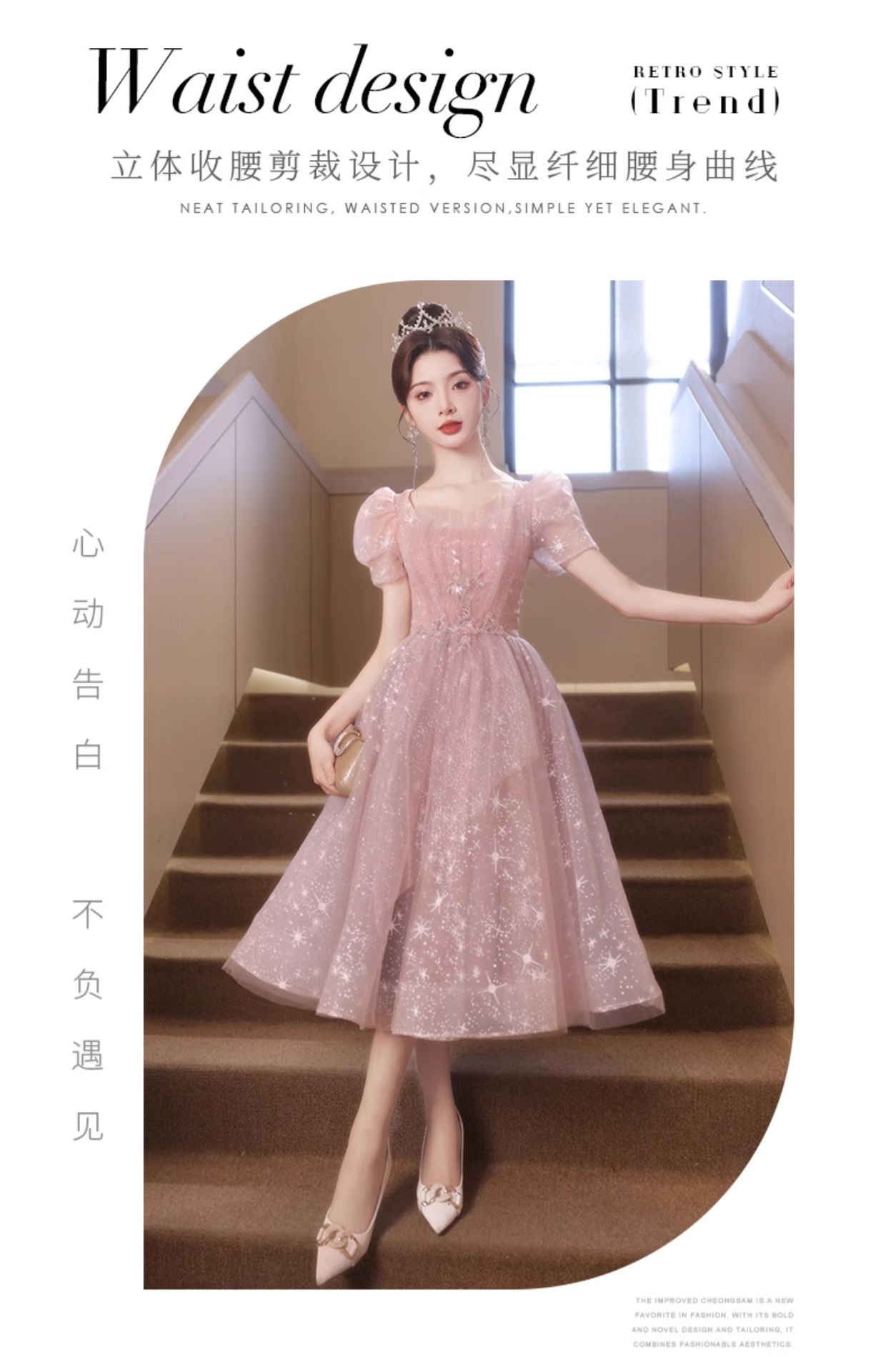 wedding dress evening dress for women light luxury minority high-end high-grade small pink engagement princess dress adult gift girl