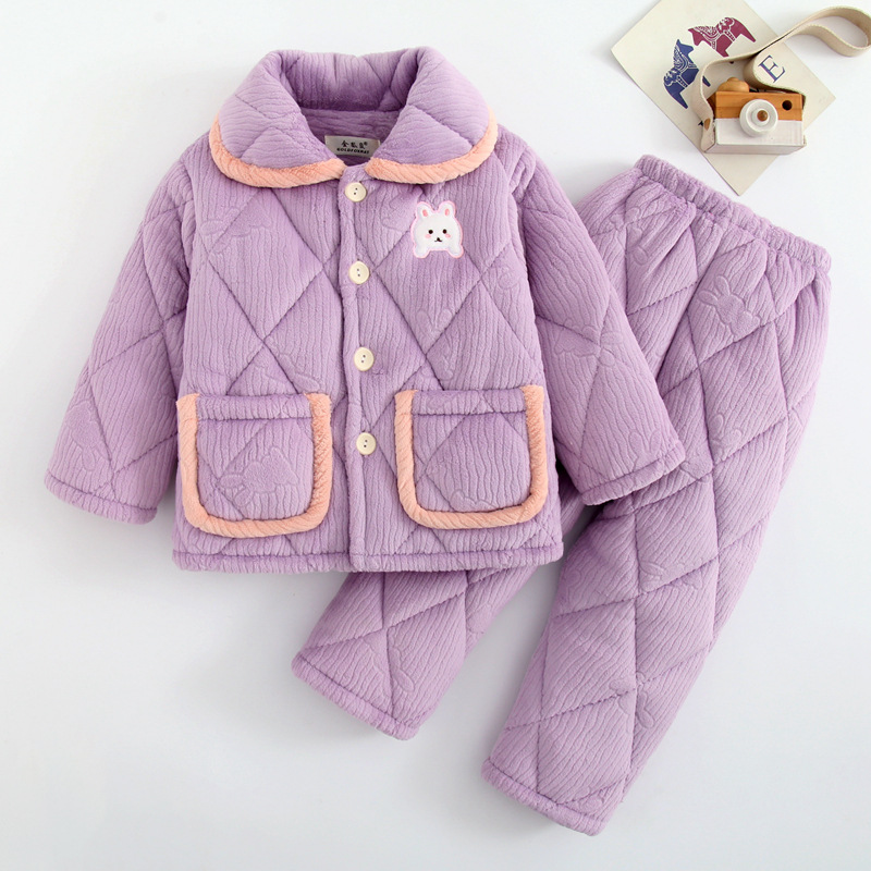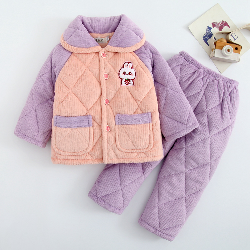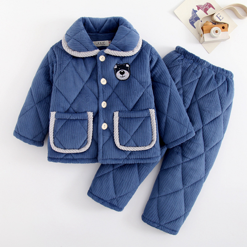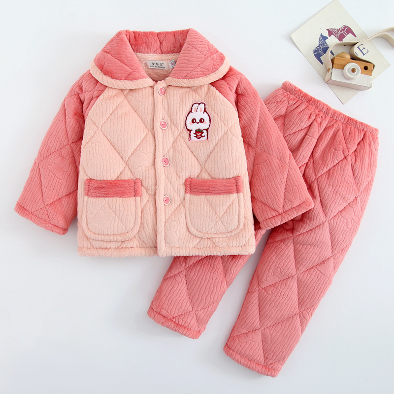 小孩冬季睡衣女童男孩秋冬季法兰绒加厚夹棉珊瑚绒宝宝儿童家居服