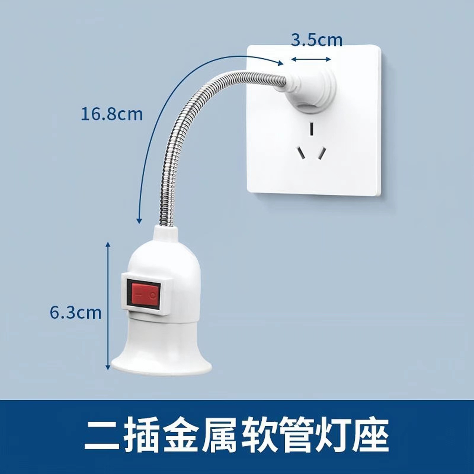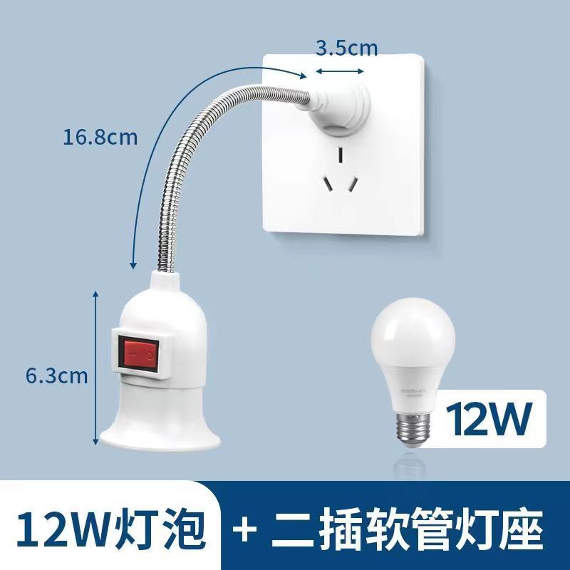 直插式旋转灯头灯口E27大螺口灯座插座式万向软管带开关两插三插