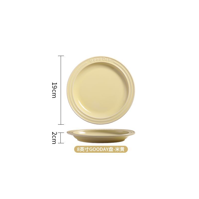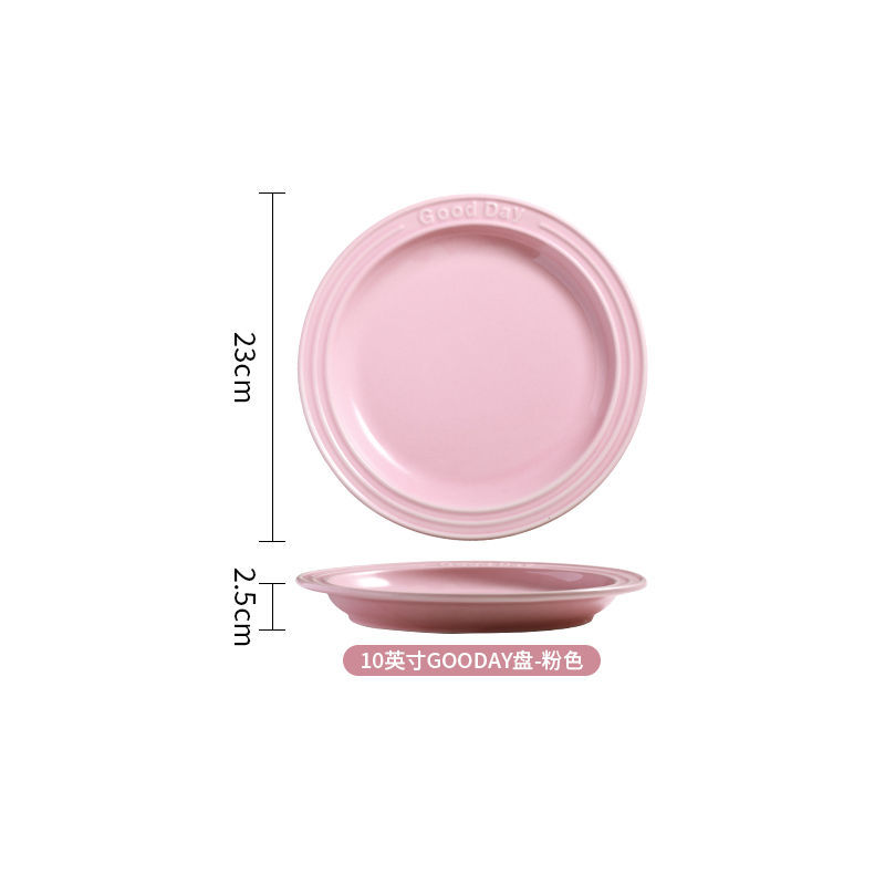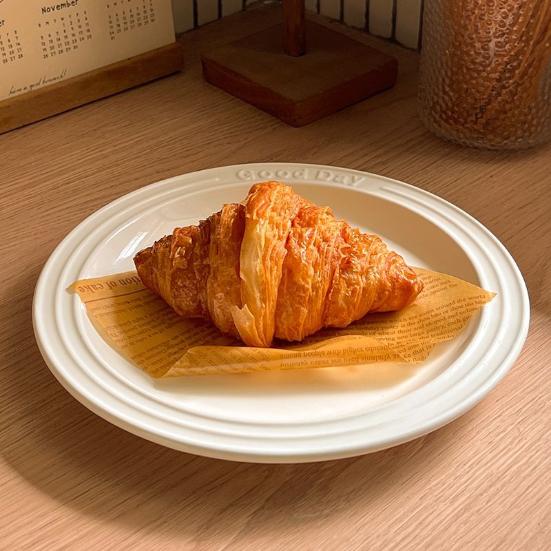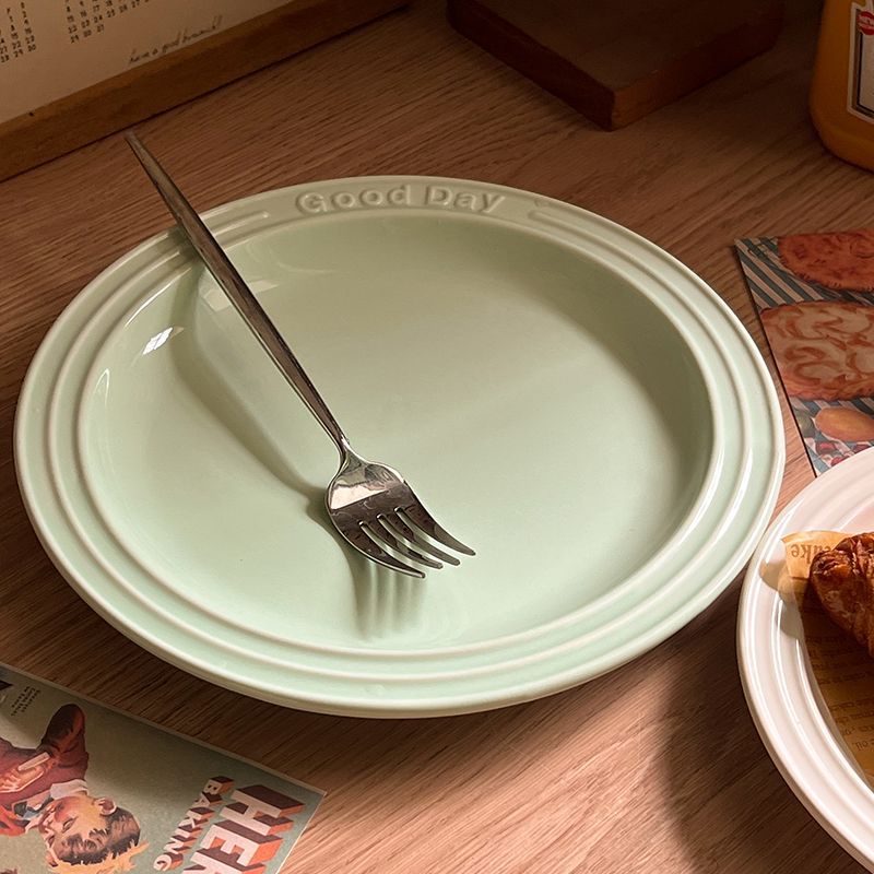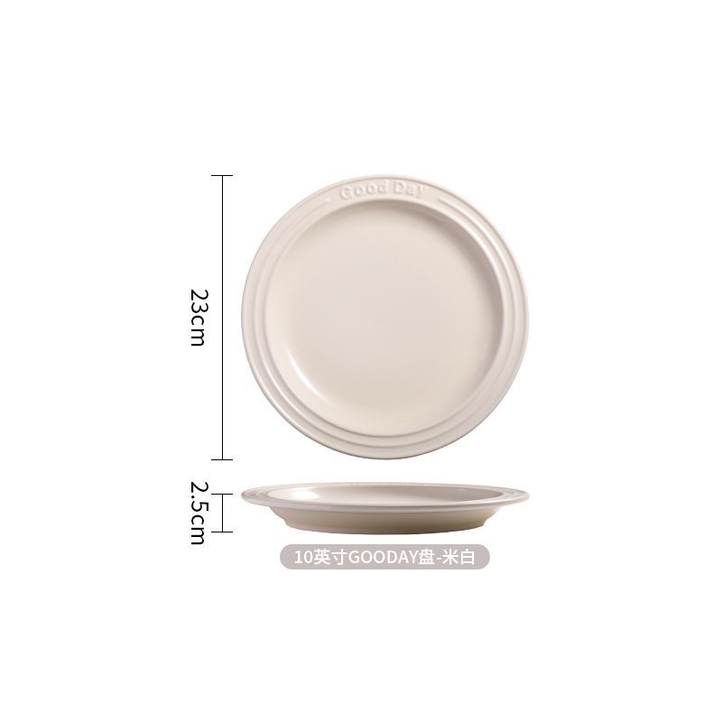 ins风陶瓷盘子奶油色浮雕字母餐具家用西餐意面盘子甜品早餐盘子