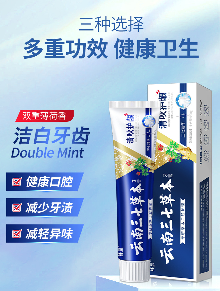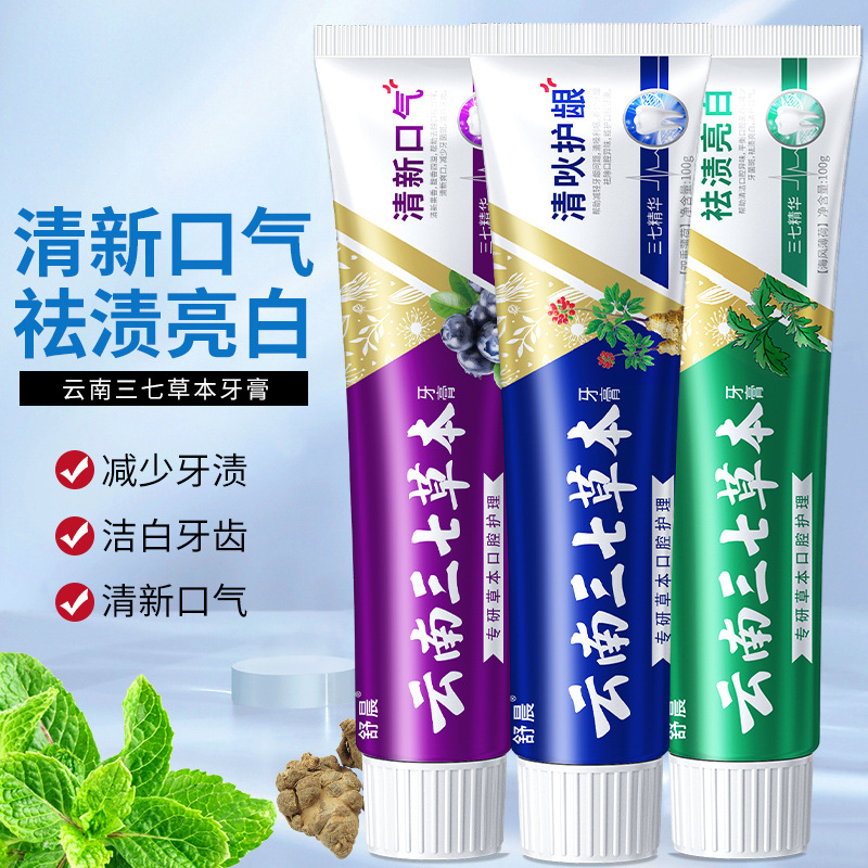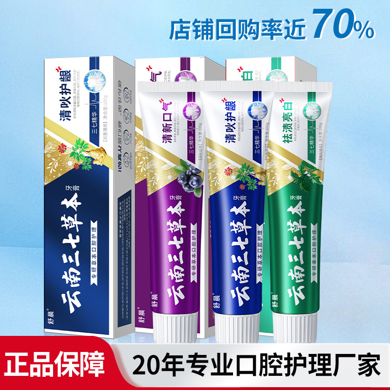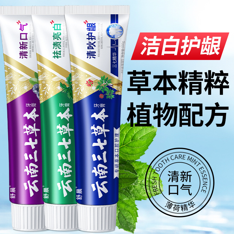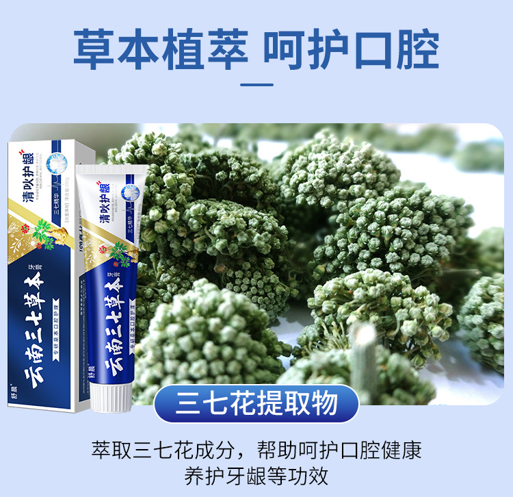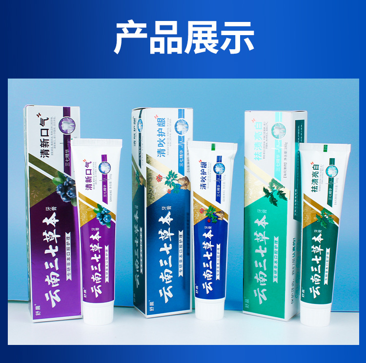 牙膏批发厂家云南三七草本中草药清新去口臭去黄美白牙膏热销榜一