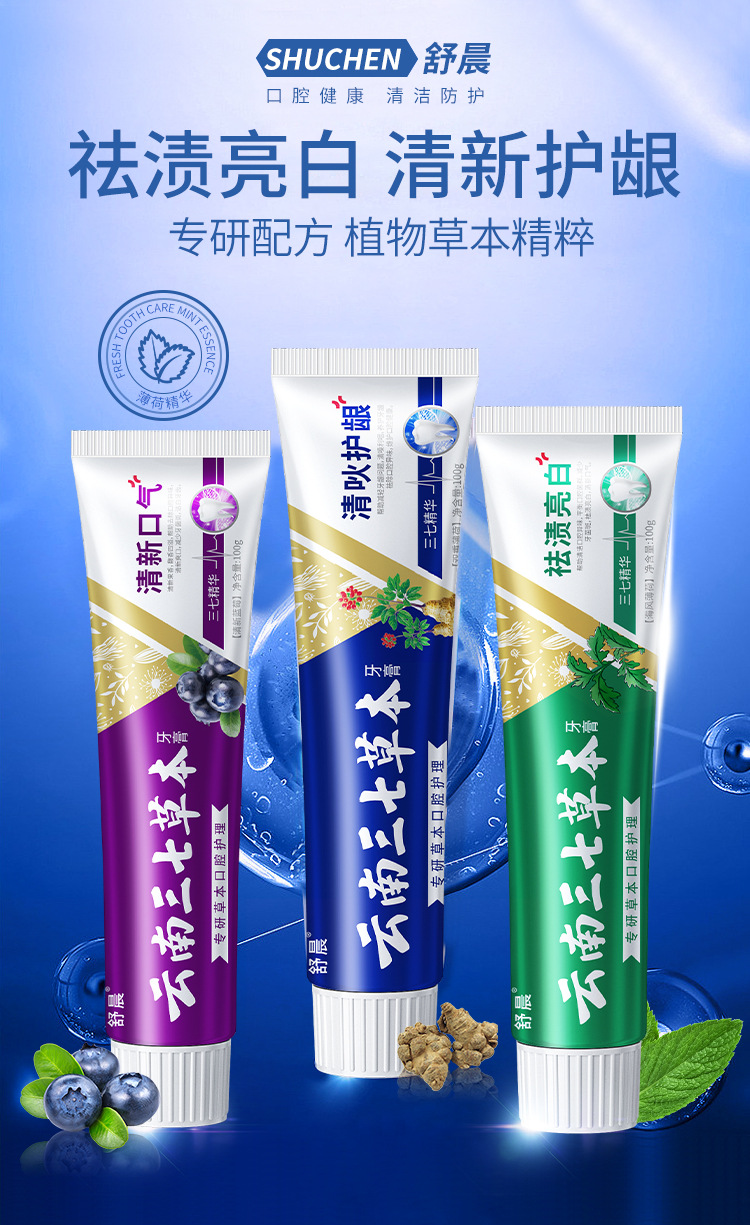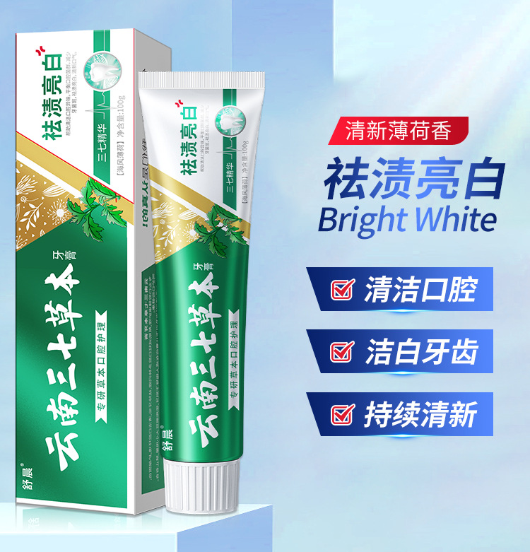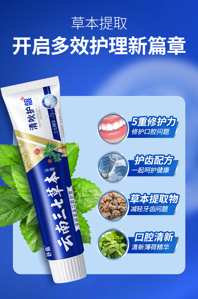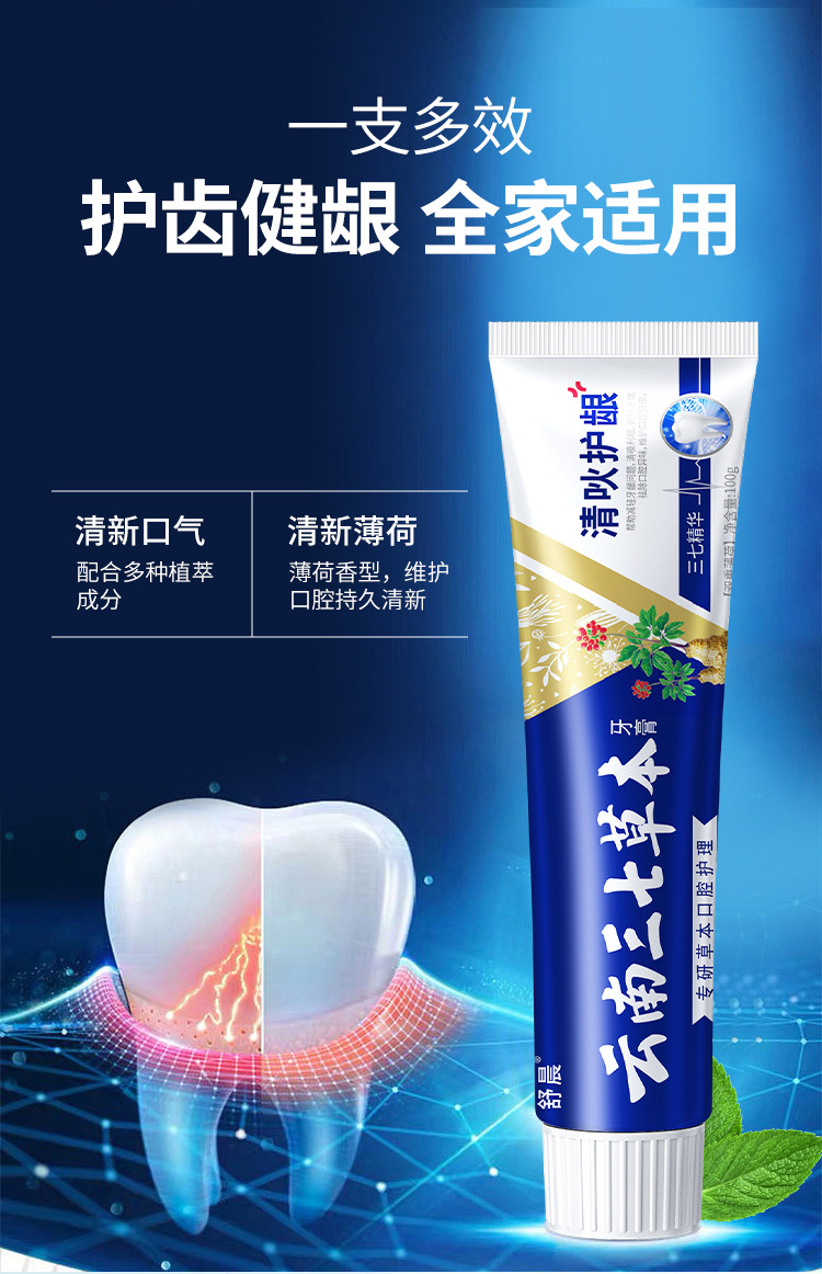 牙膏批发厂家云南三七草本中草药清新去口臭去黄美白牙膏热销榜一