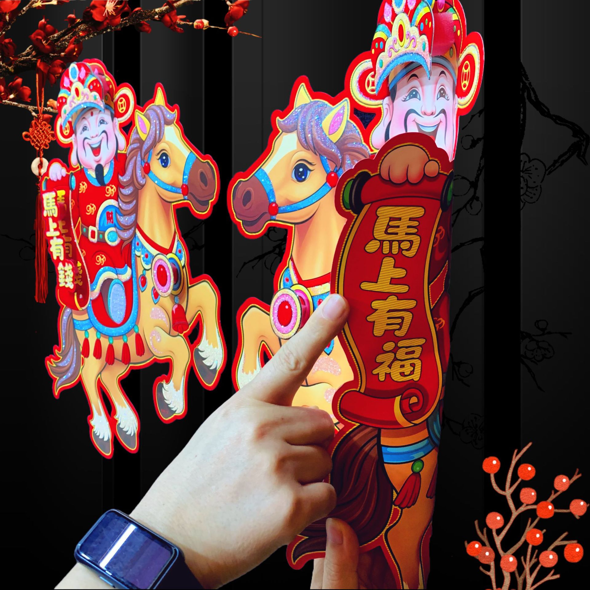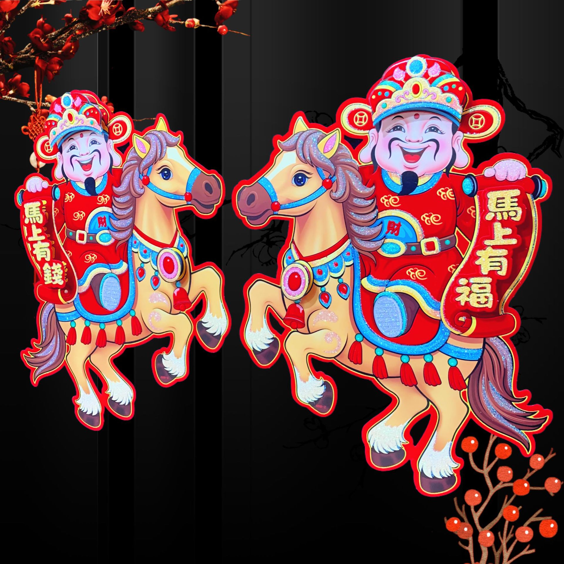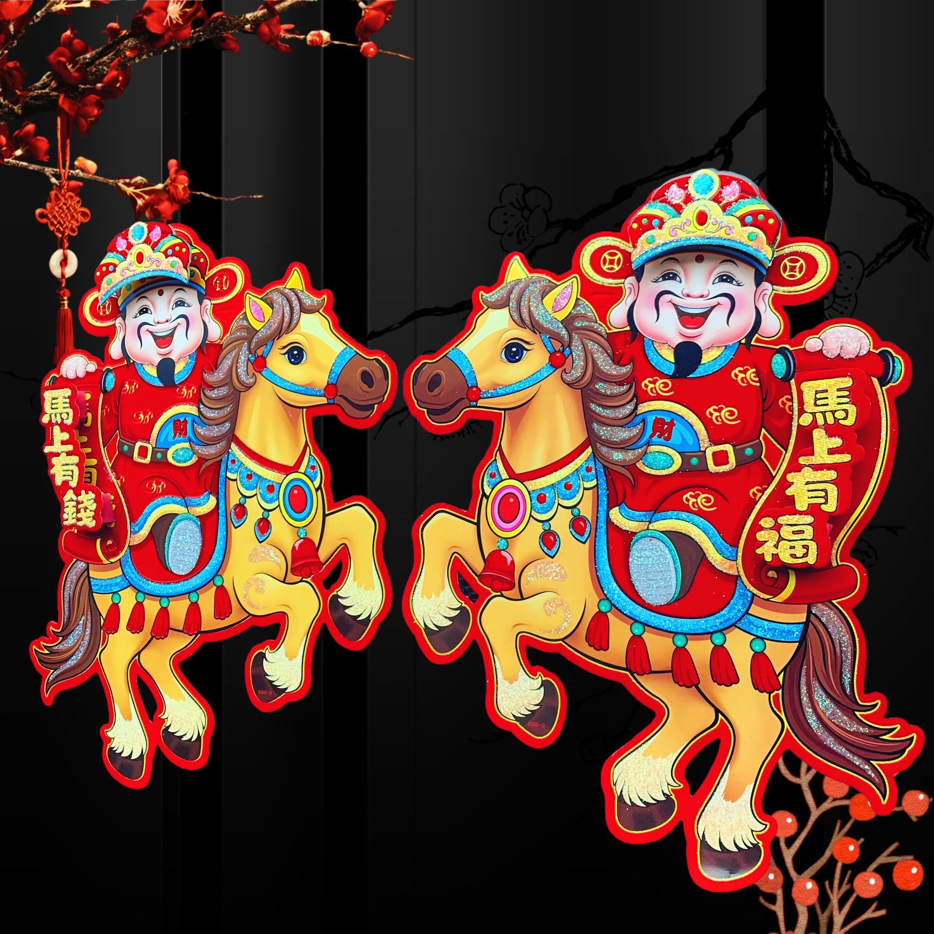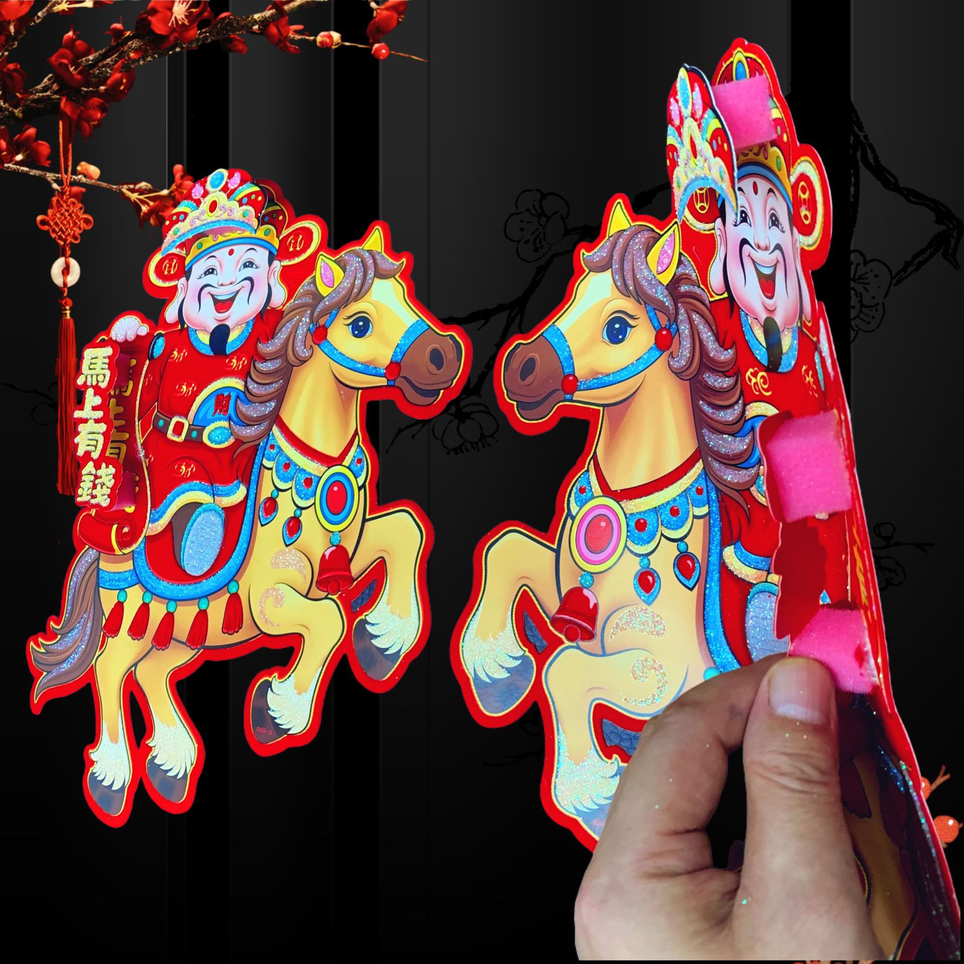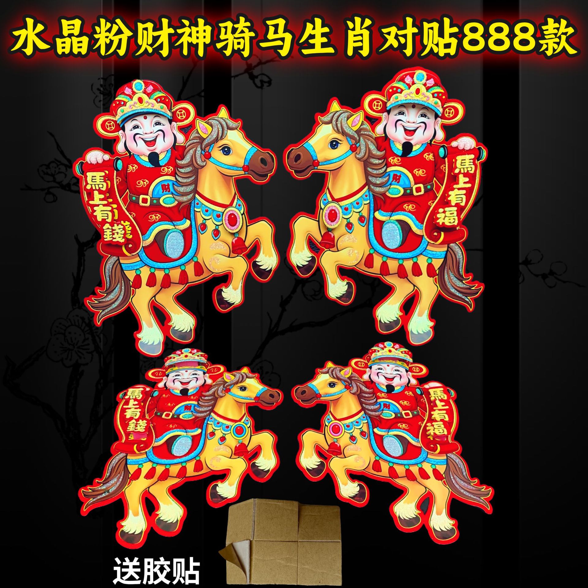 爆款水晶粉财神骑马生肖对贴888款马上有钱有福立体生肖对贴年画