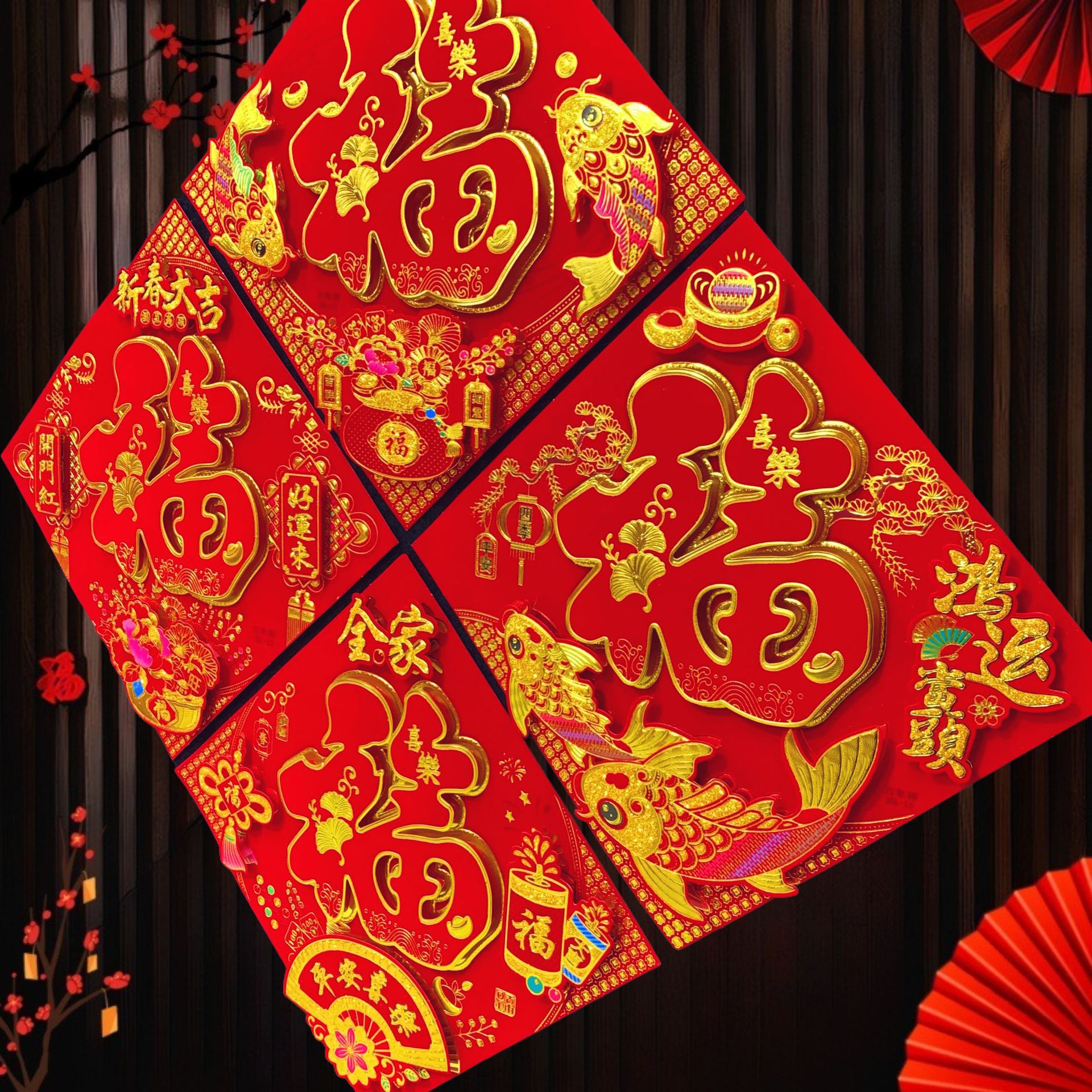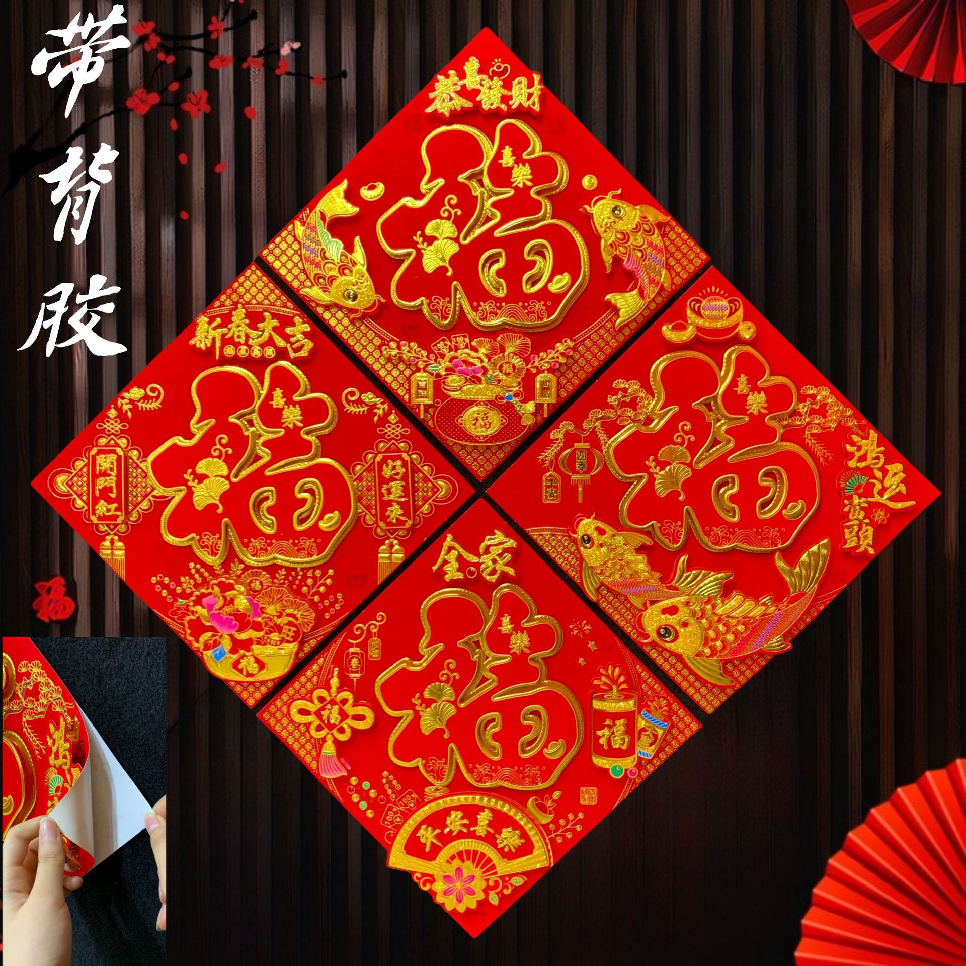 马年新款全胶四配件立体红福 植绒福字贴春节装饰福字门贴年画