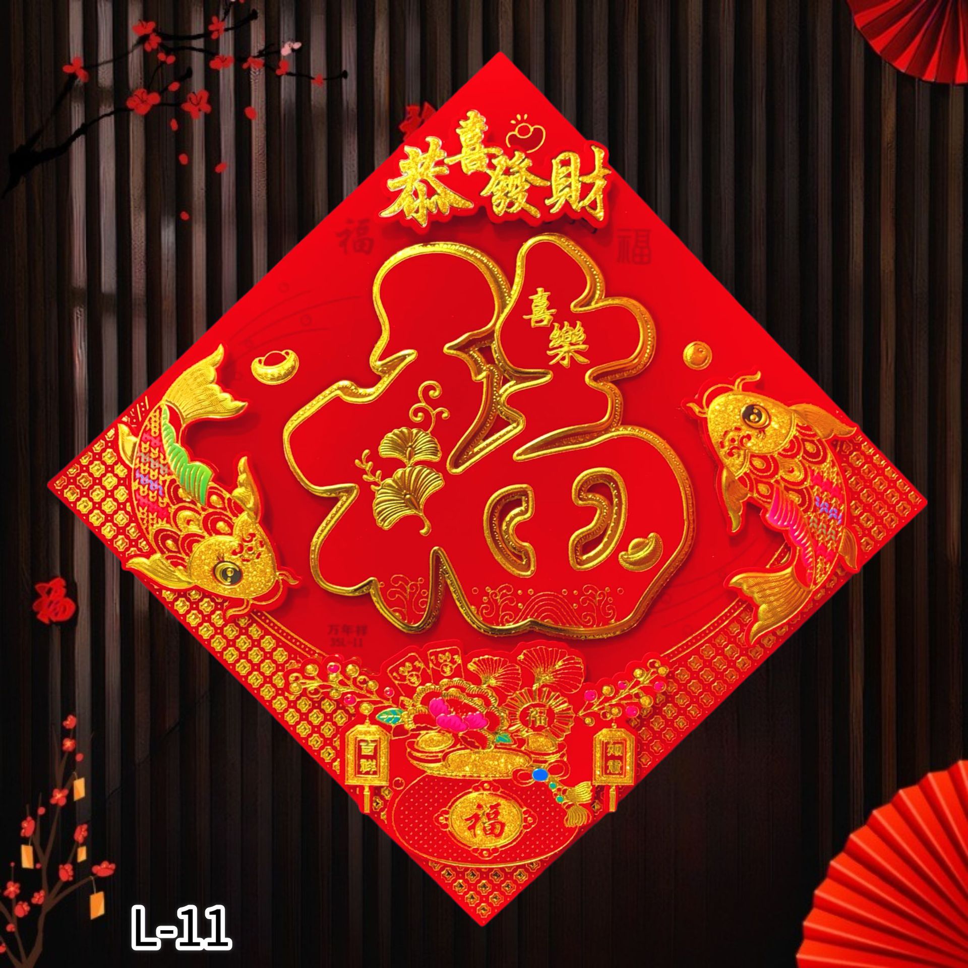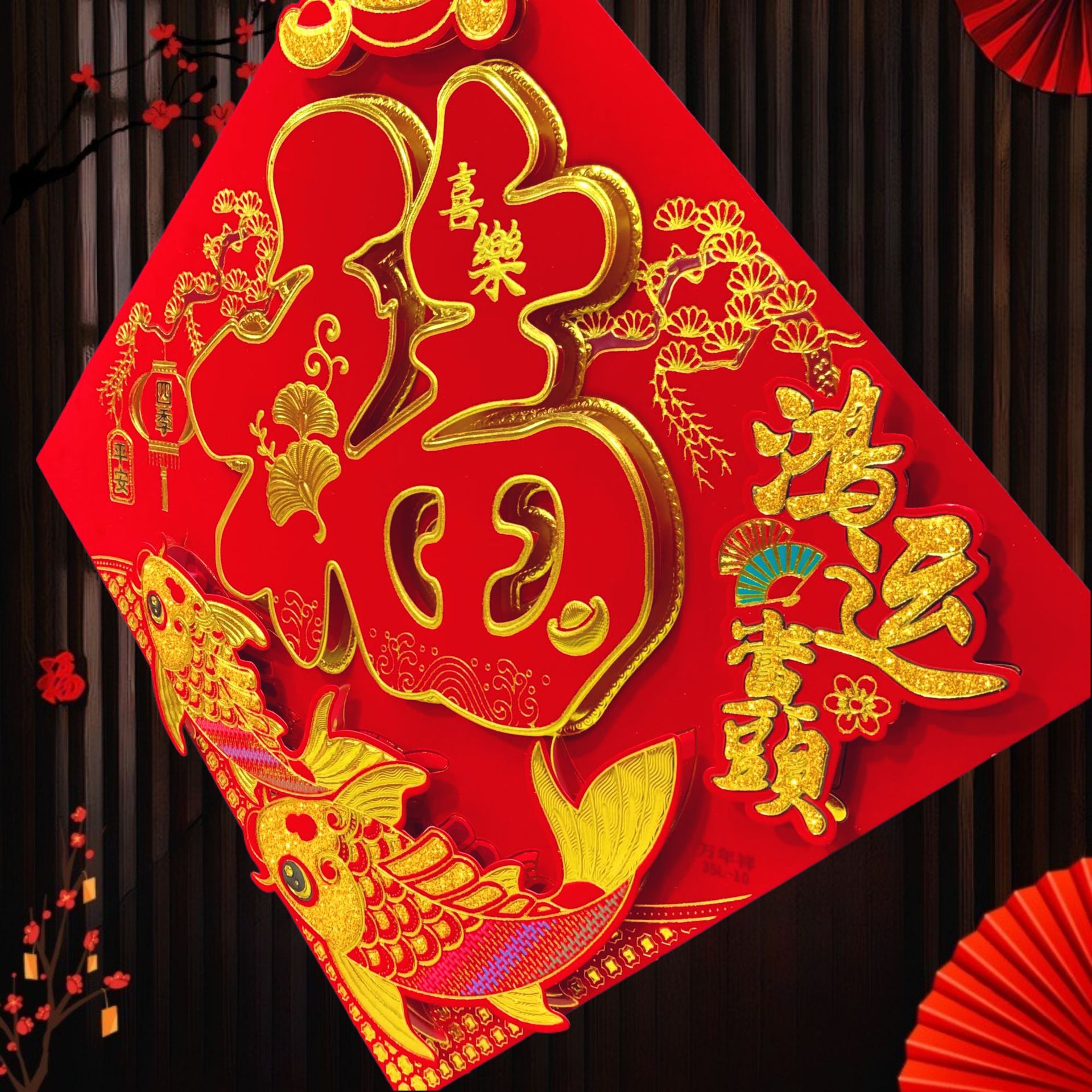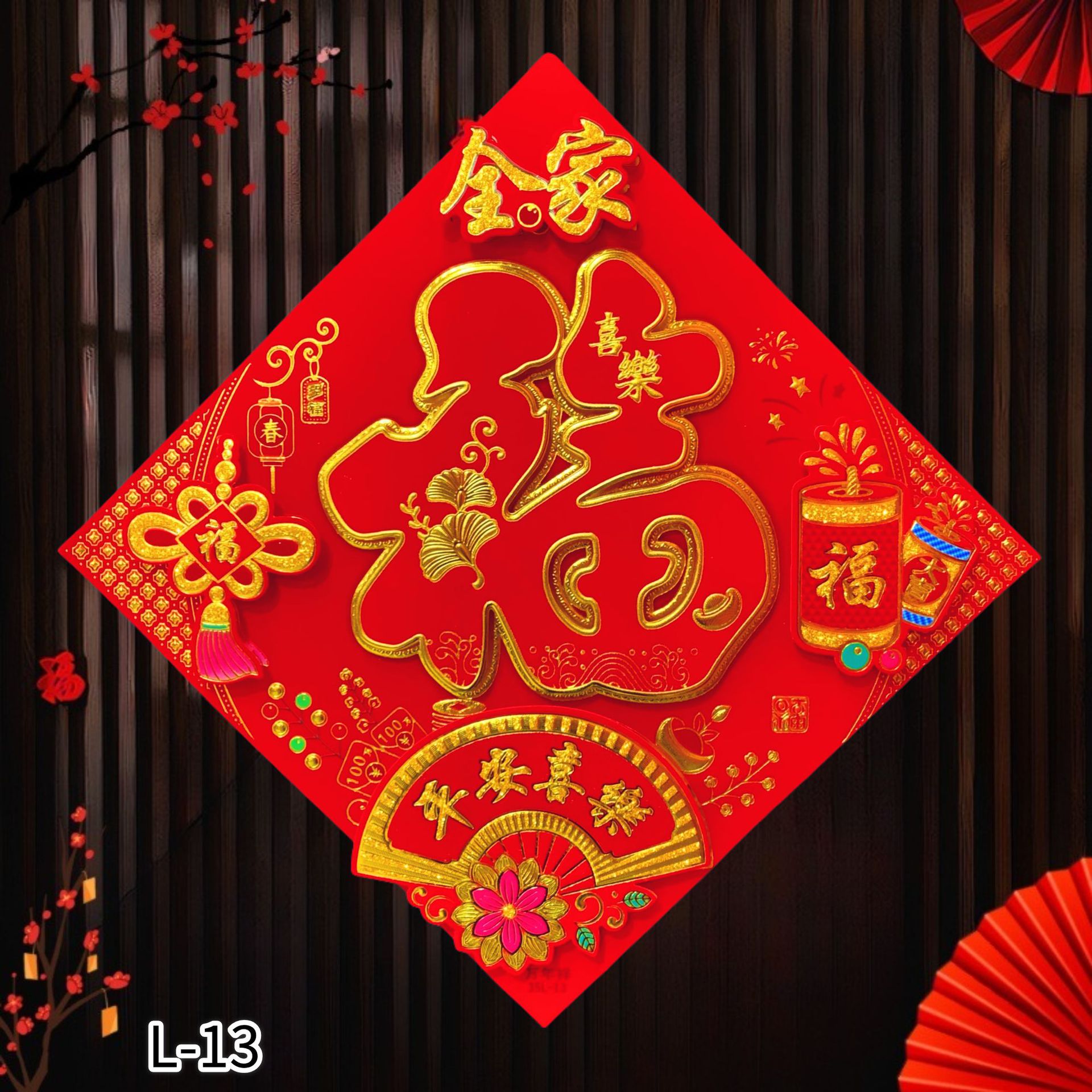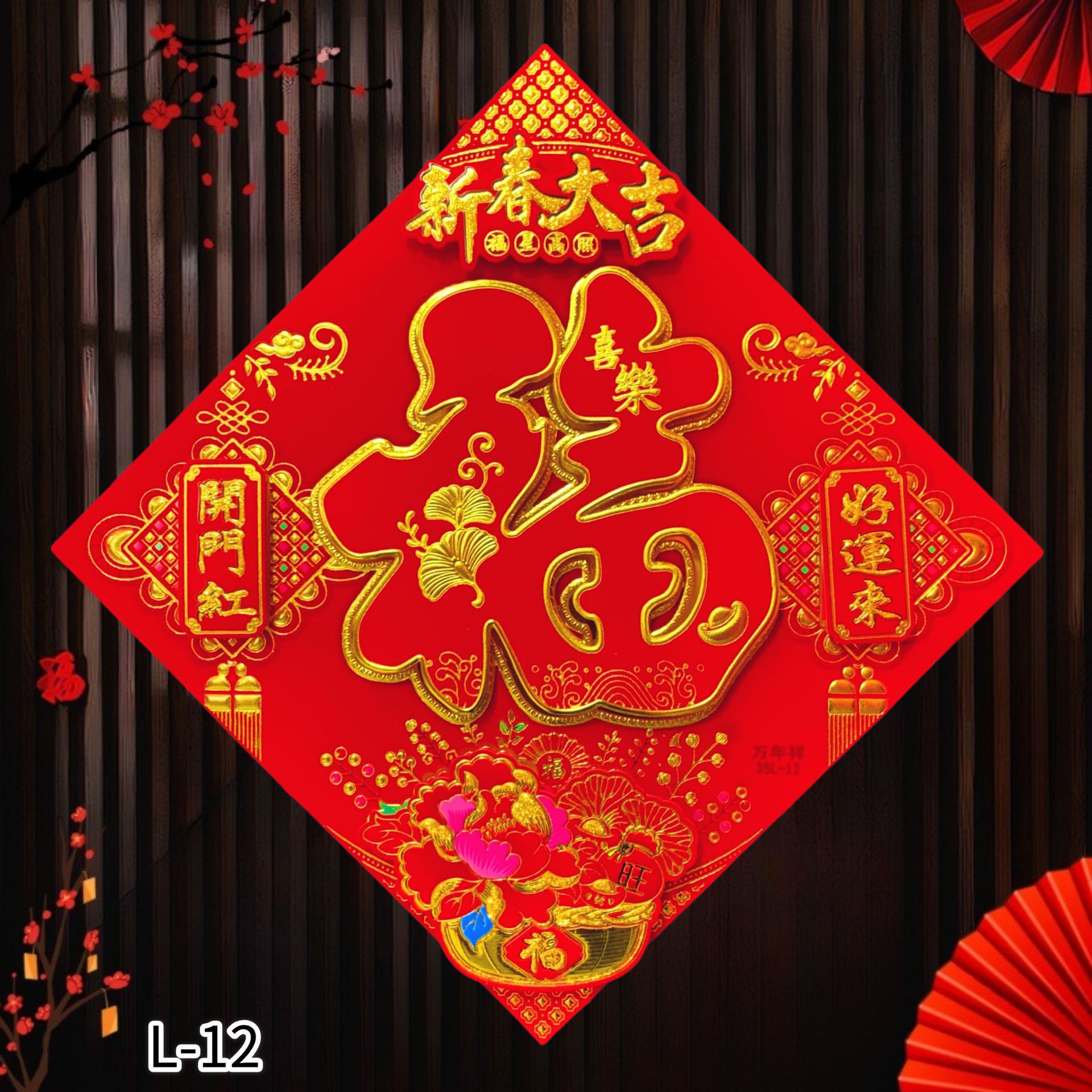 新品上市,全背胶四配件立体红福,40# 1.45元一张,四个款式,四角四个立体配件,实际尺寸40# 33.5×33.5cm.款式可混搭发货, 底板全胶植绒烫金+福字植绒加烫金,+配件彩色印花植绒撒粉,款式高端大气上档次,实物比照片更好看更有质感……箱装清装数量:40# 450/箱,清装整箱拿货私聊优惠……