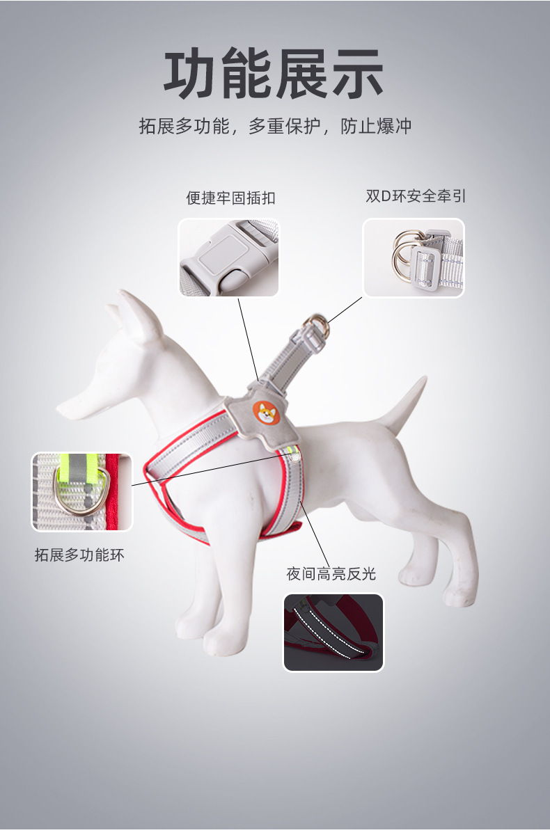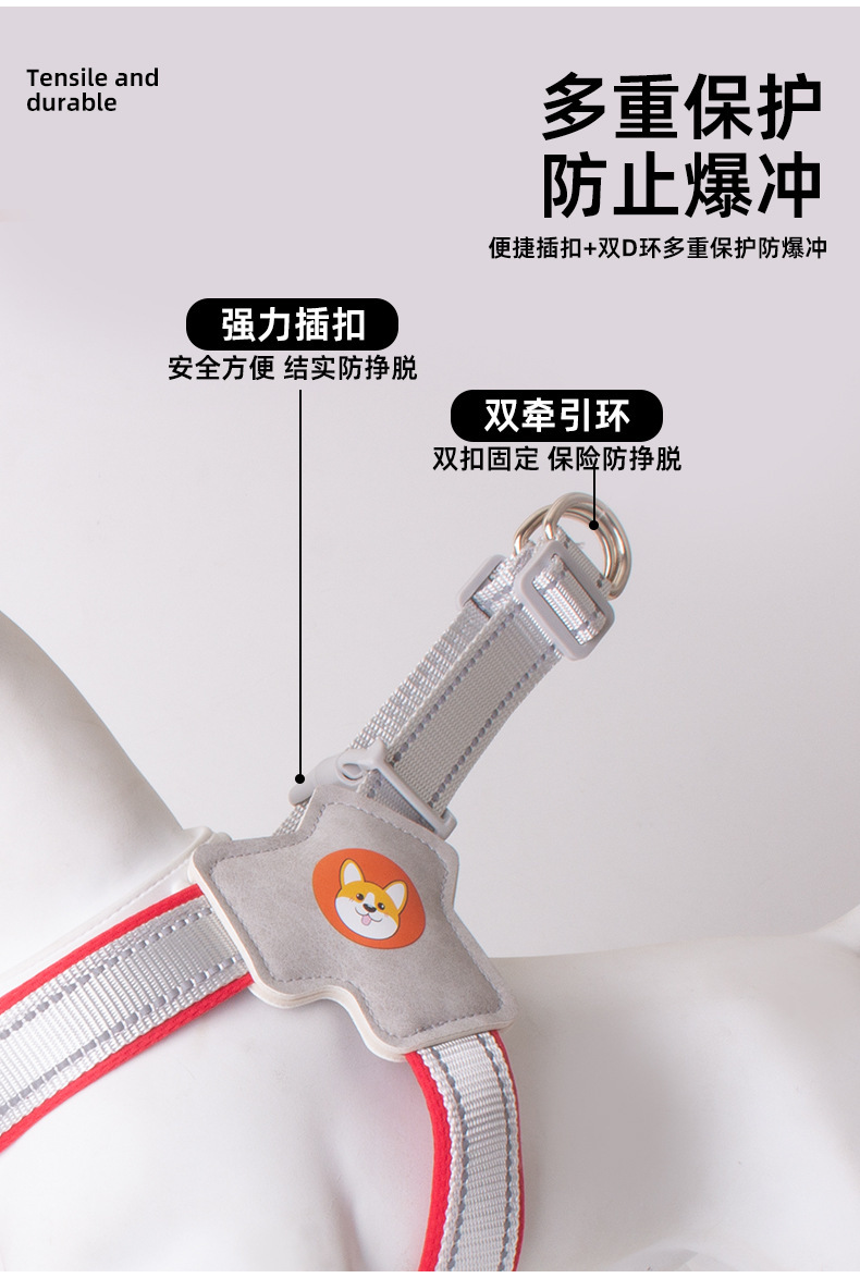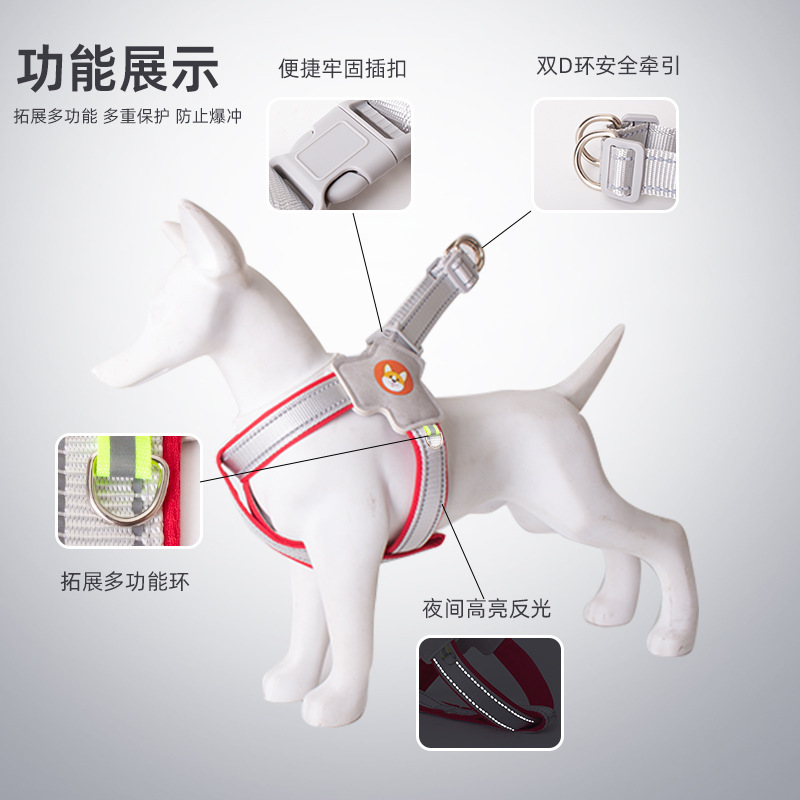 狗狗牵引绳背心式宠物牵引绳胸背带遛狗绳柴犬柯基反光防爆冲