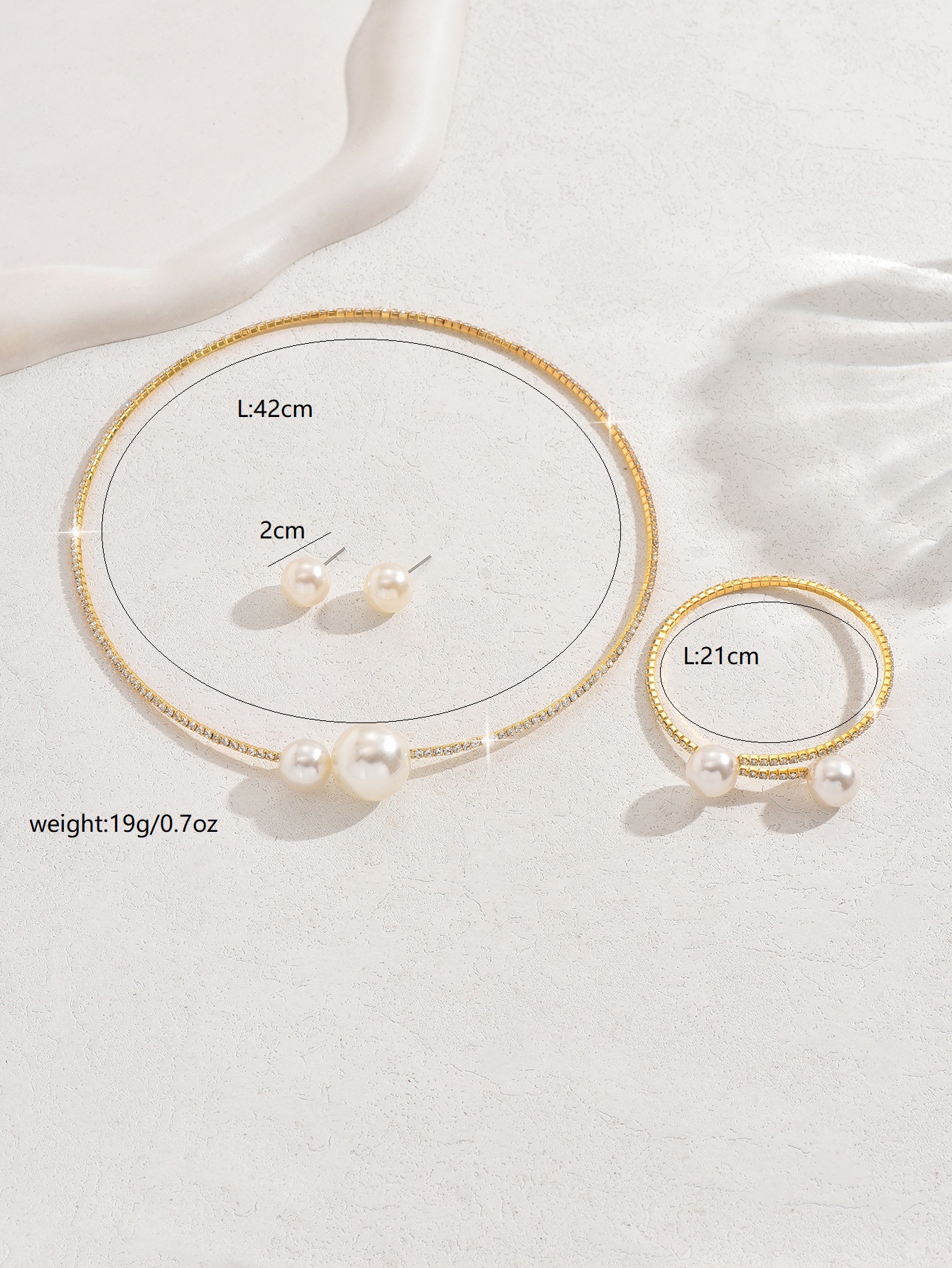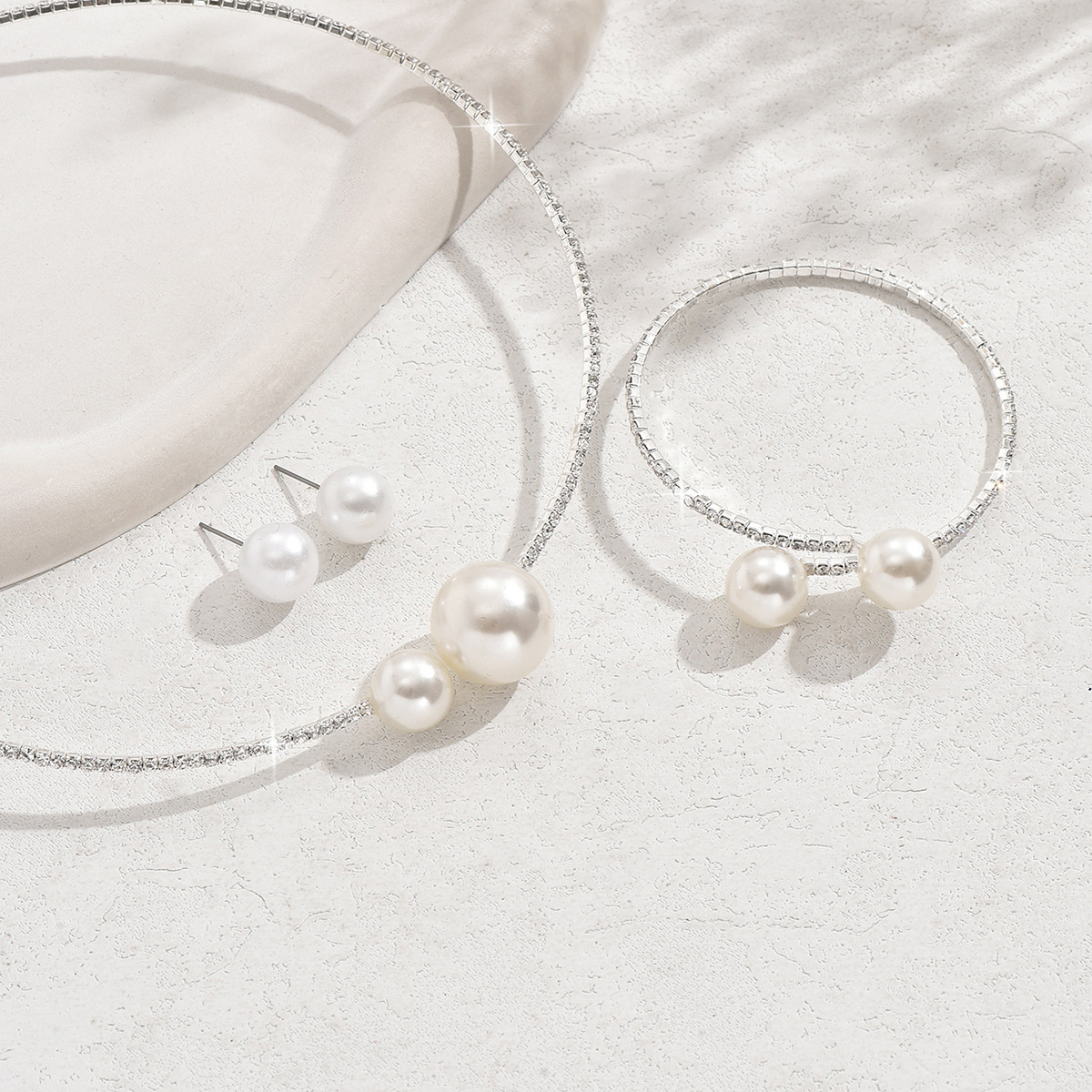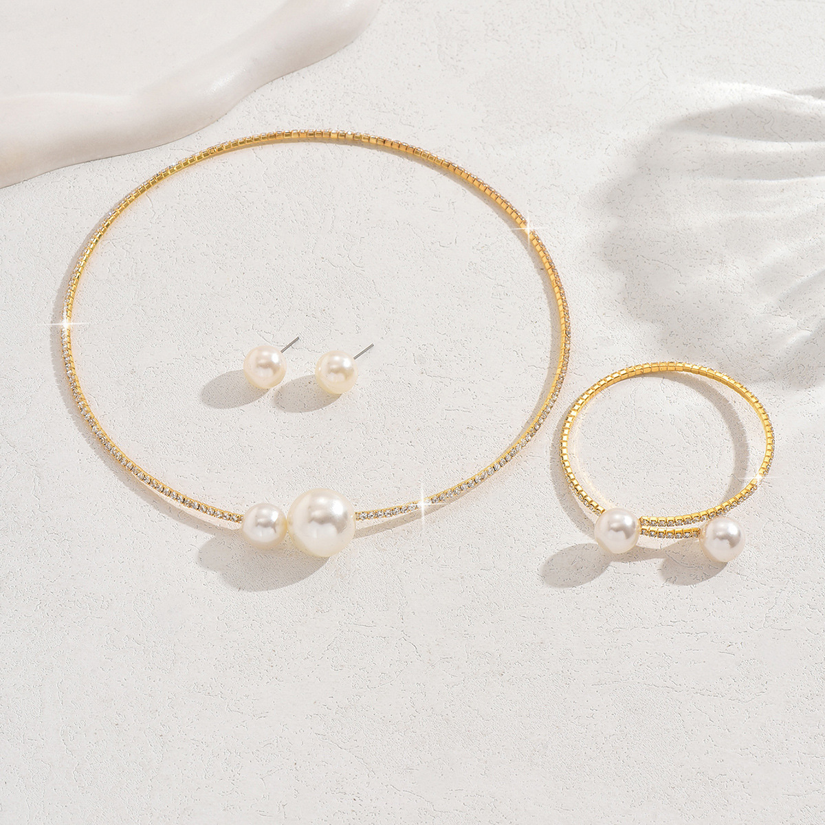 欧美时尚简约跨境热销新娘饰品优雅闪亮水钻珍珠项圈项链耳钉手圈