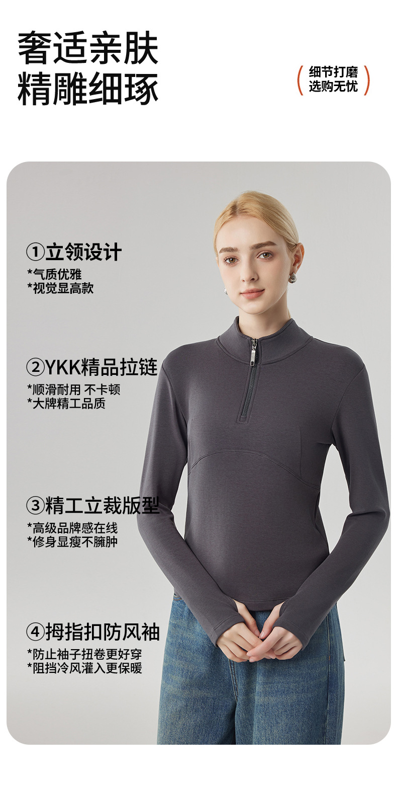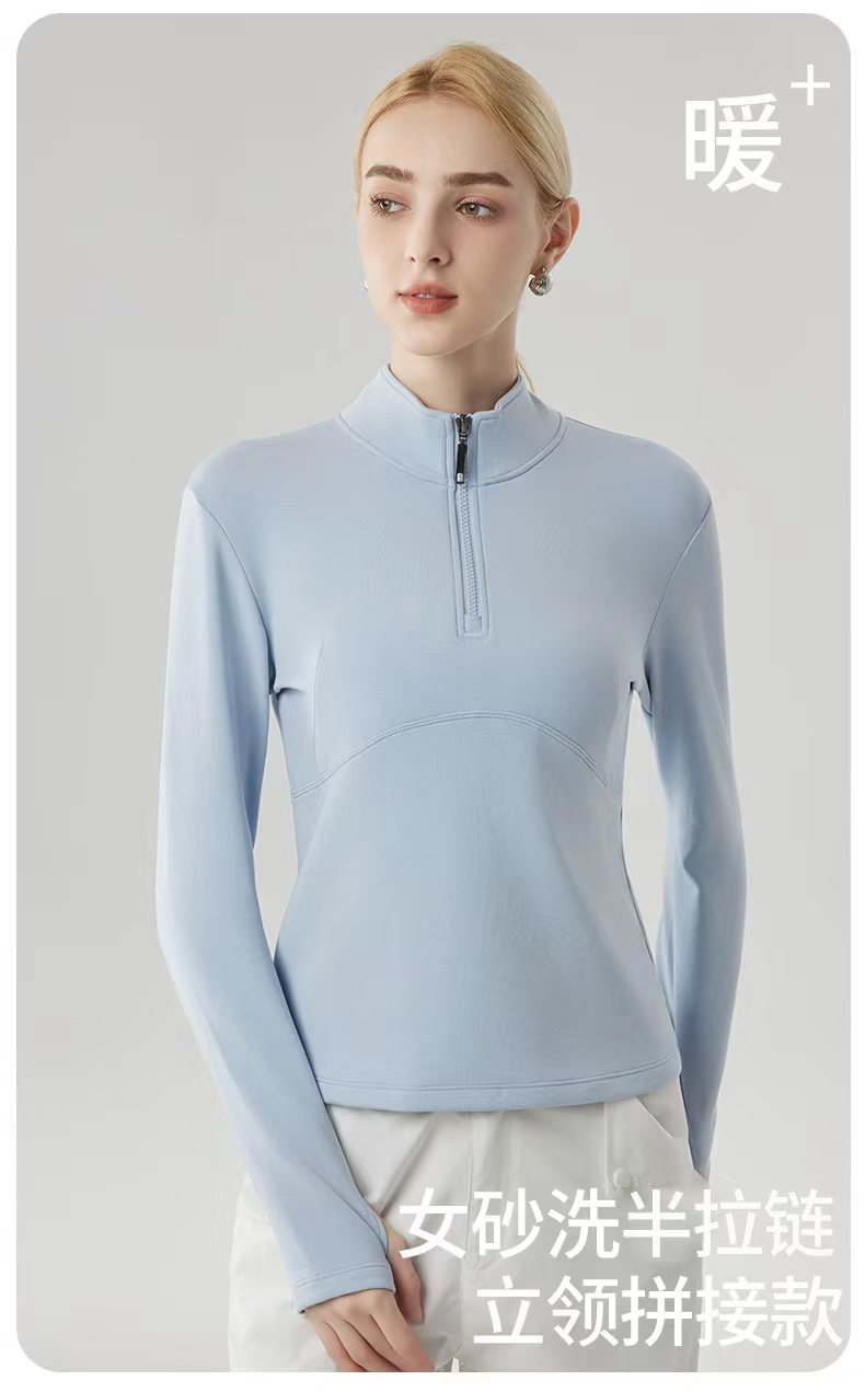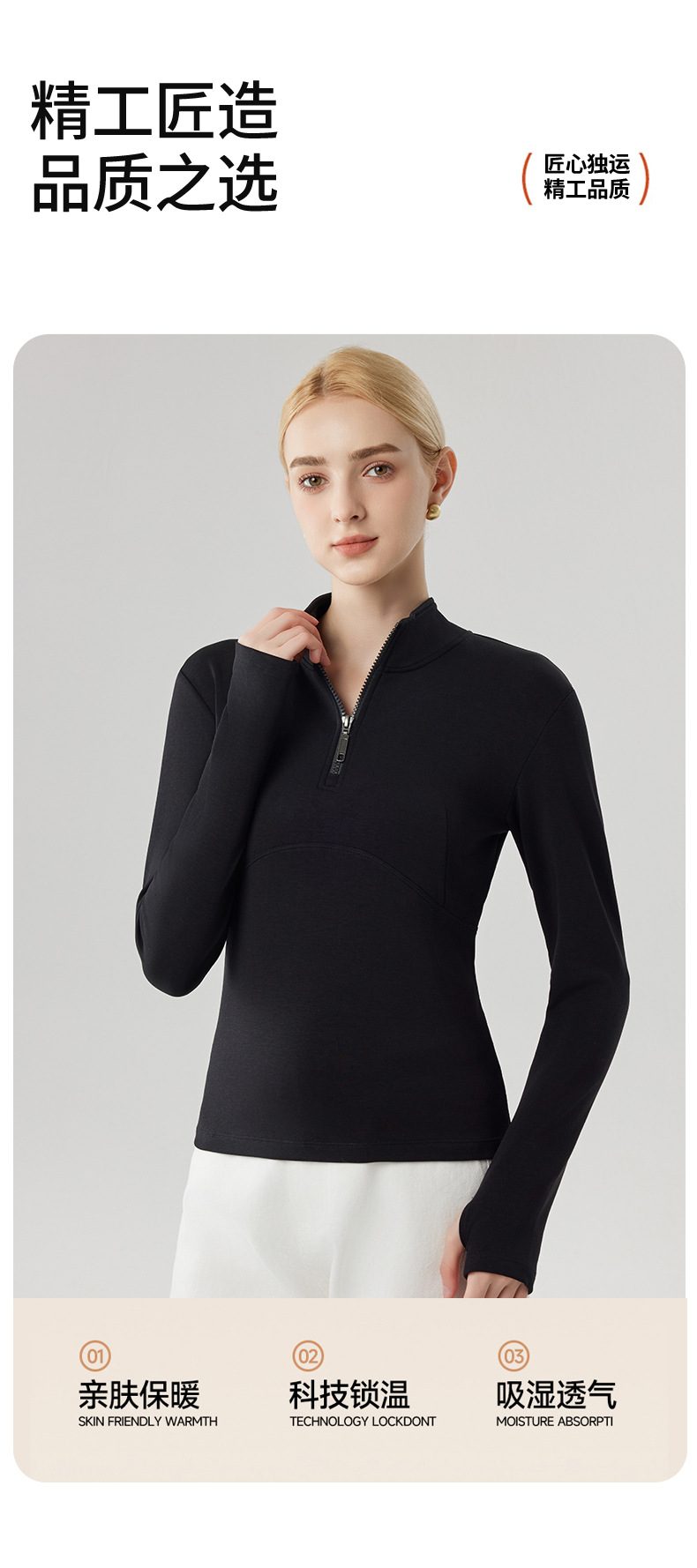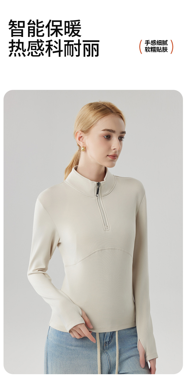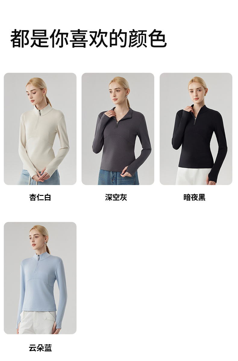 女士上衣冬季新款亲肤保暖修身可耐丽半拉链卫衣长袖上衣