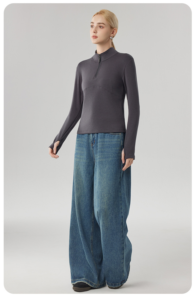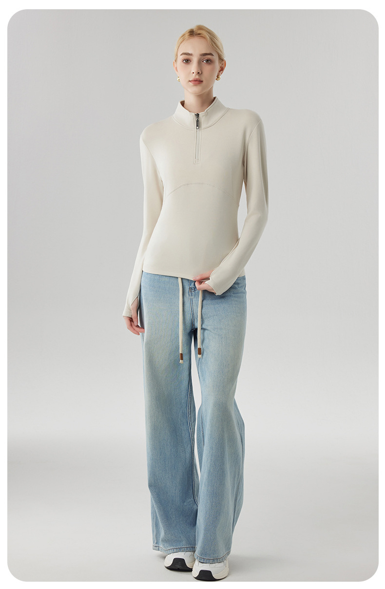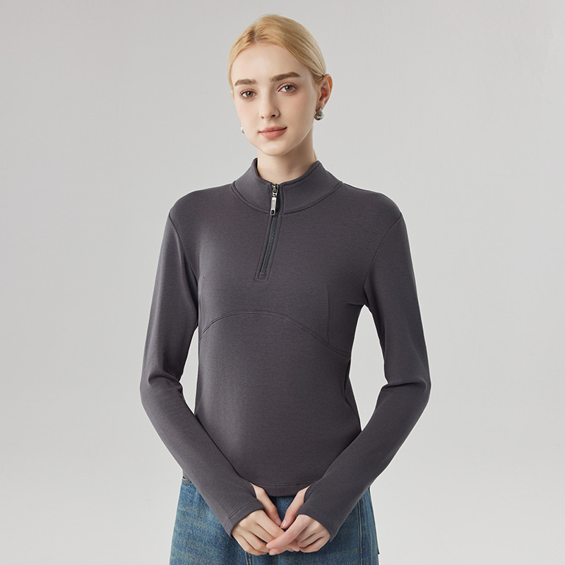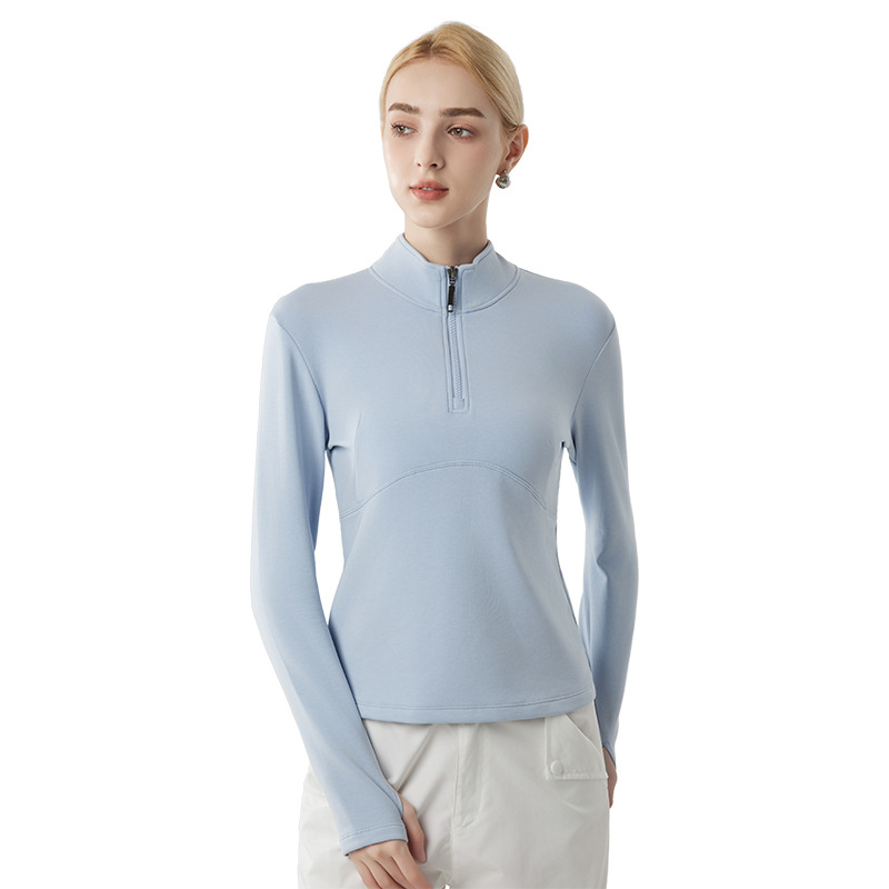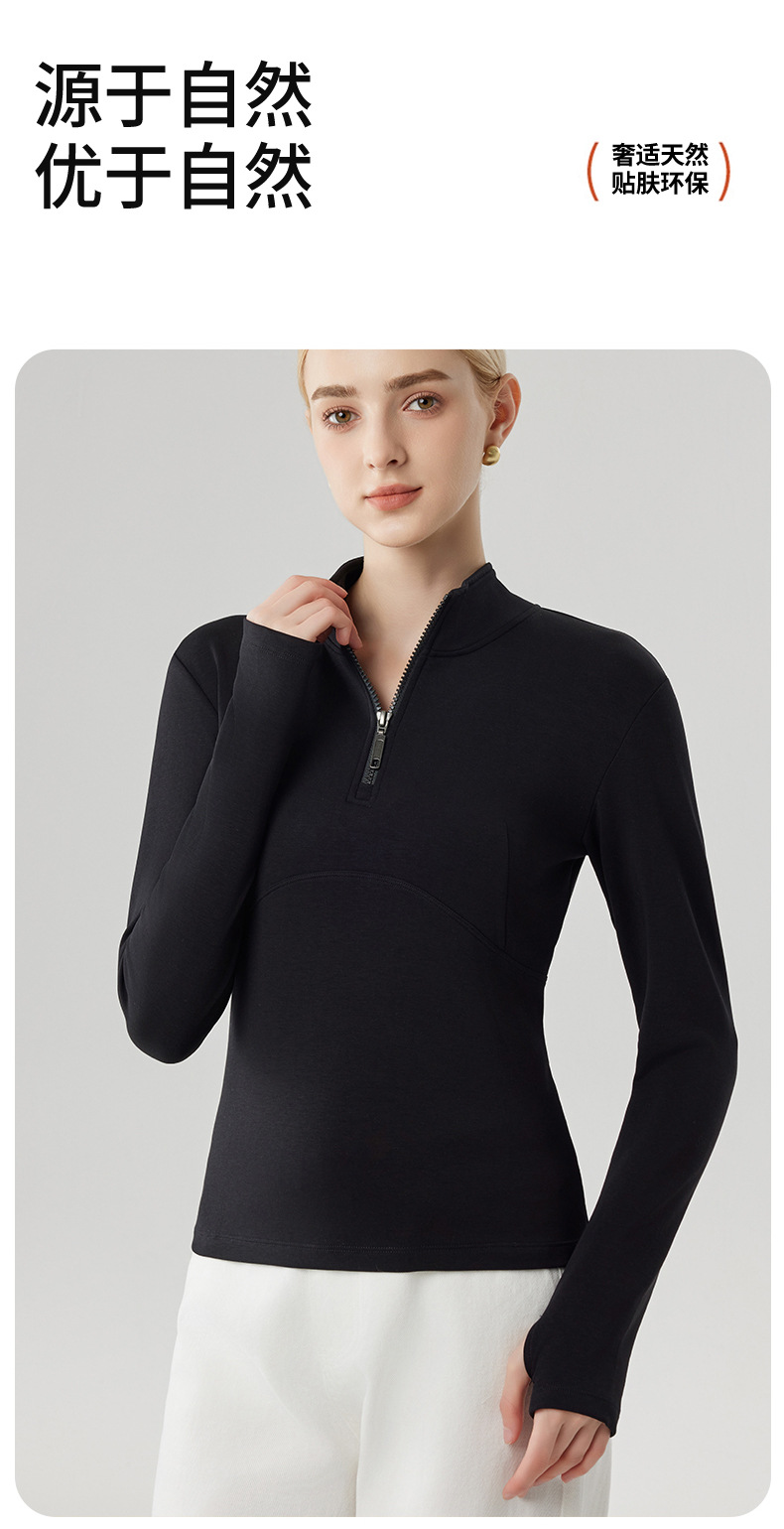 女士上衣冬季新款亲肤保暖修身可耐丽半拉链卫衣长袖上衣