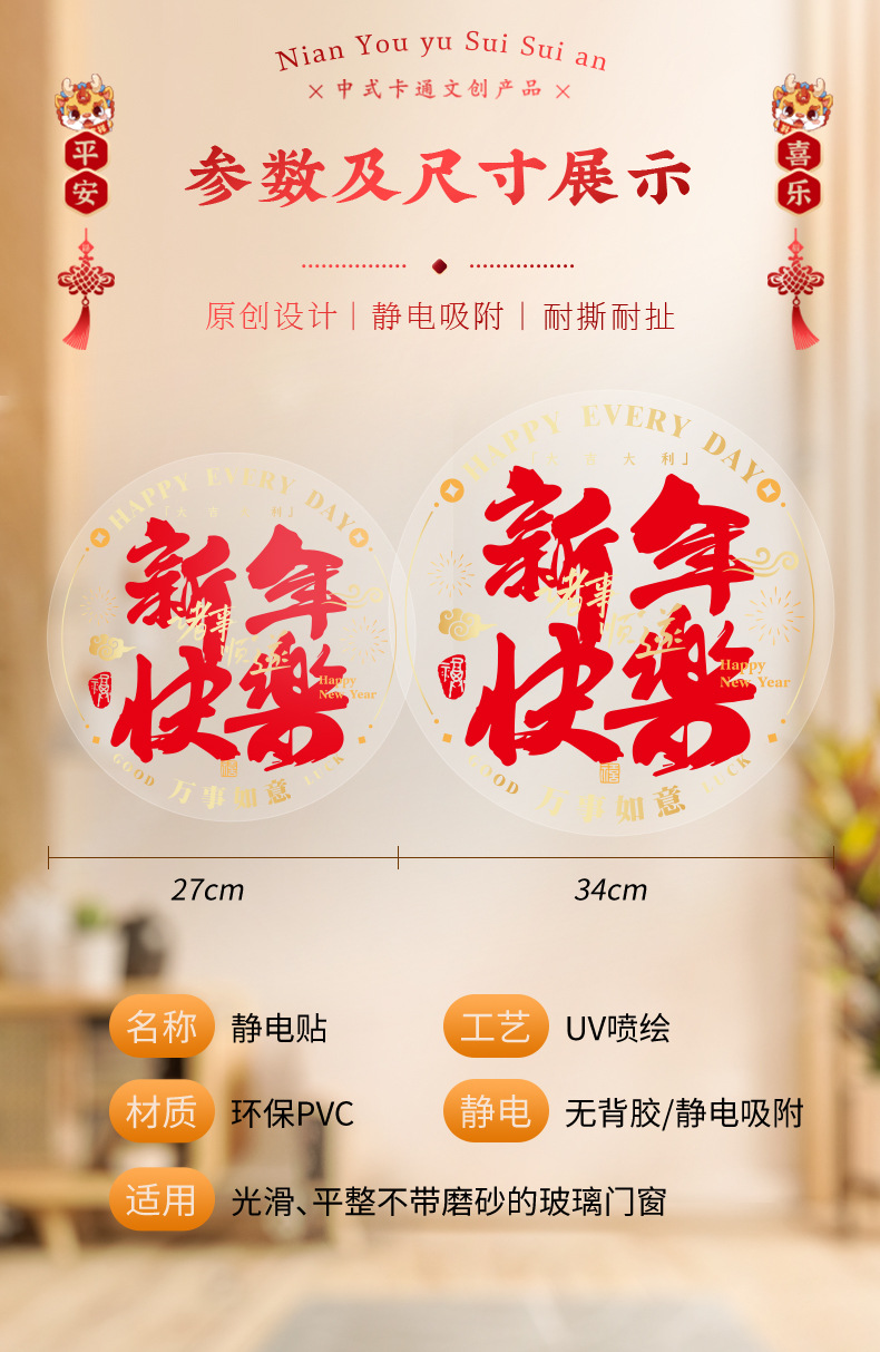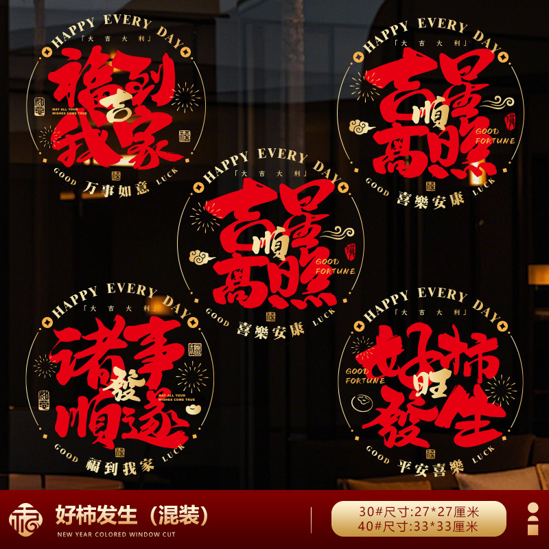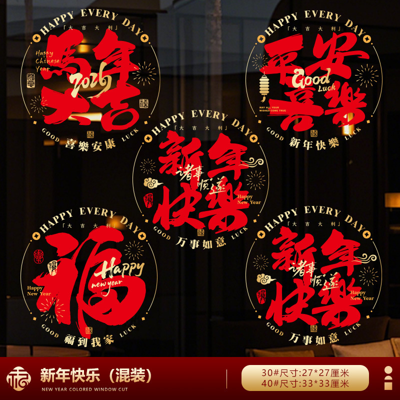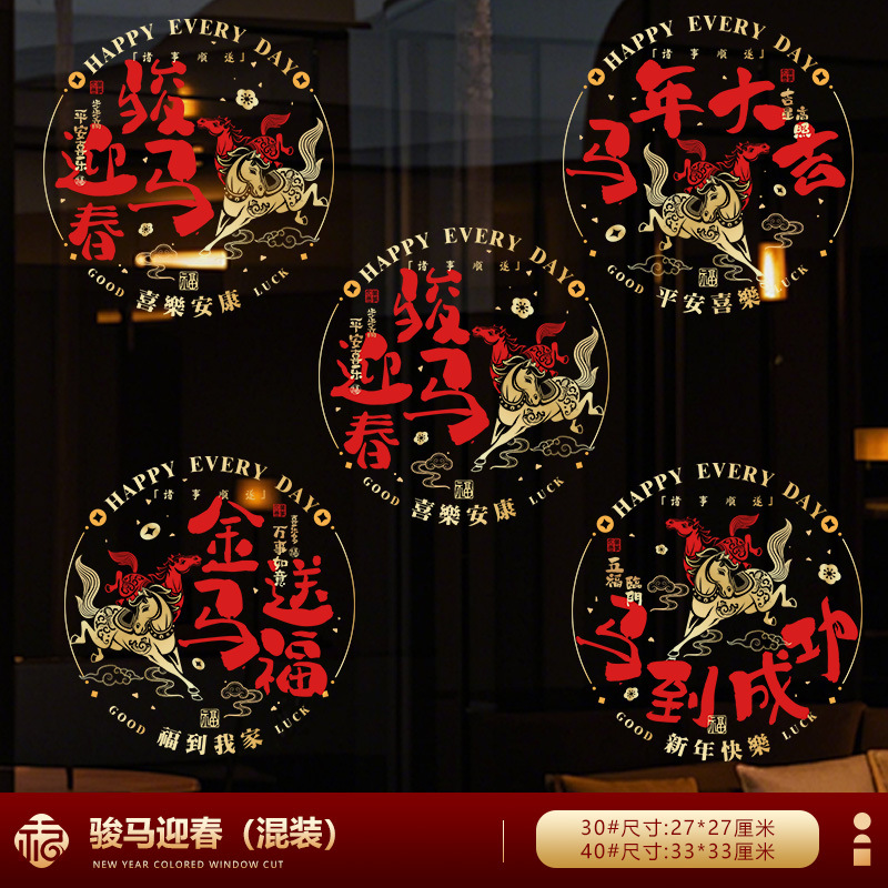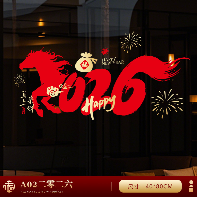 2026马年新年窗花福字门贴医院窗户布置春节过年装饰静电玻璃贴纸
