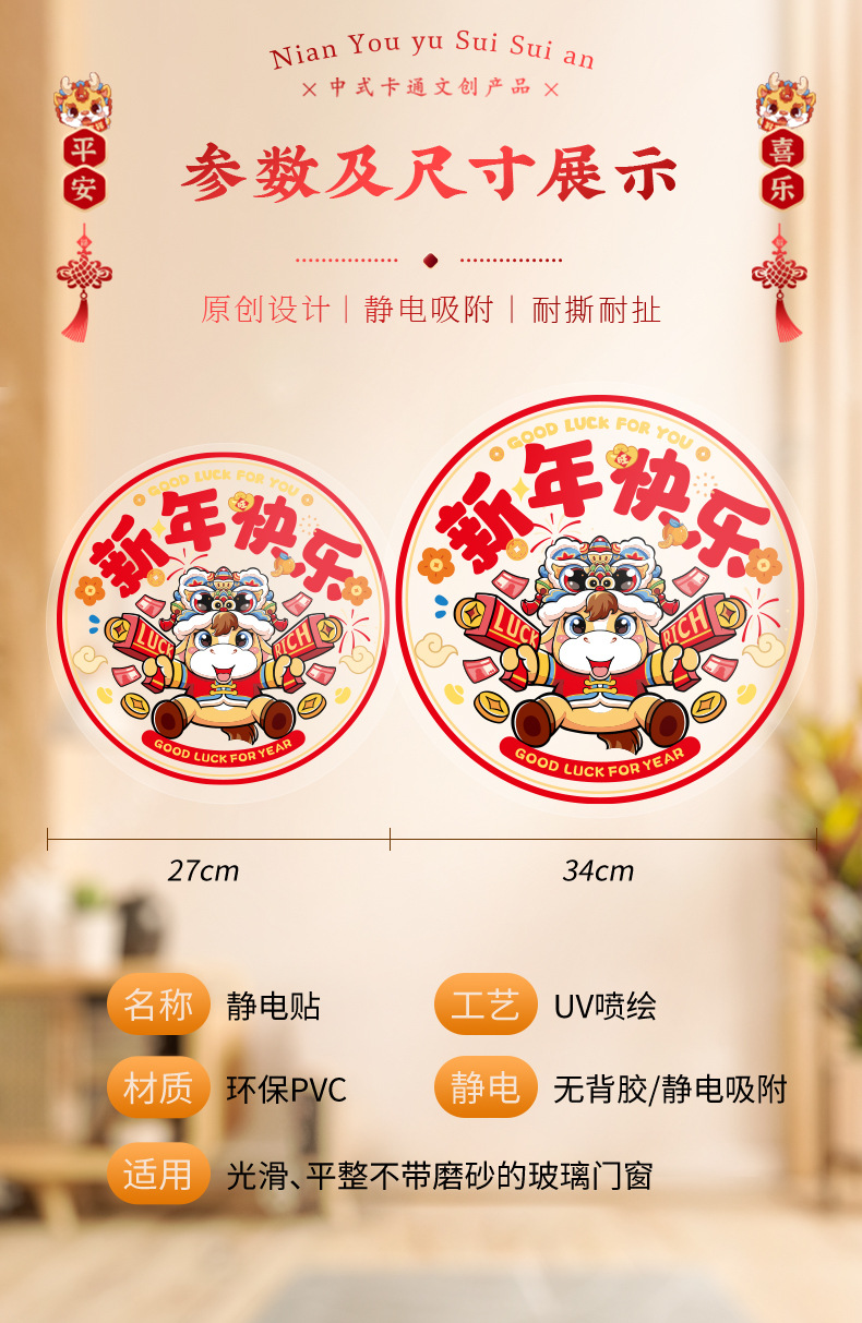 2026福字门贴马年新年装饰大张窗花贴春节过年窗户玻璃贴纸静电贴