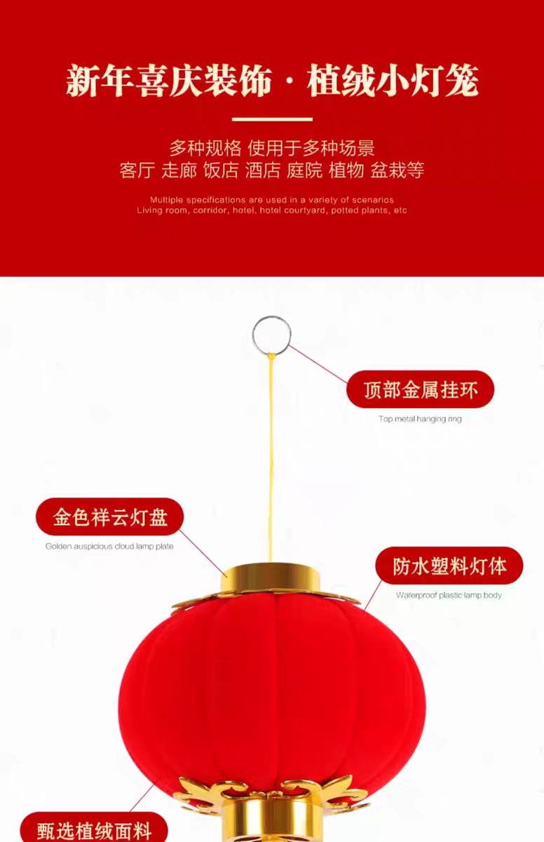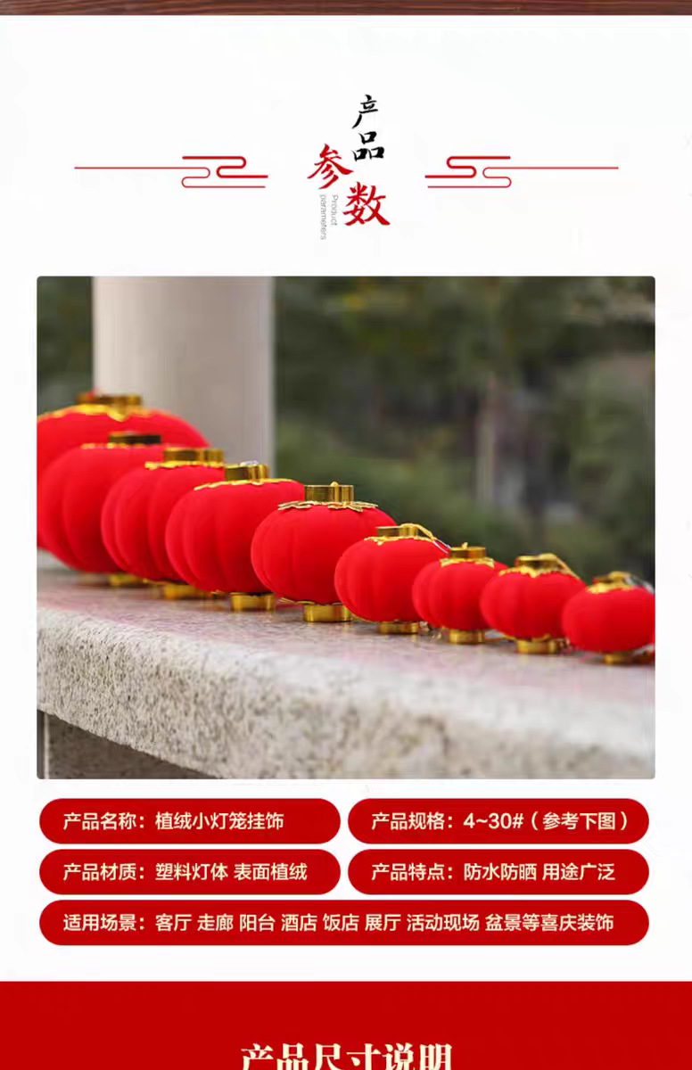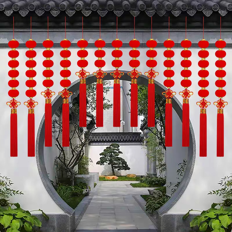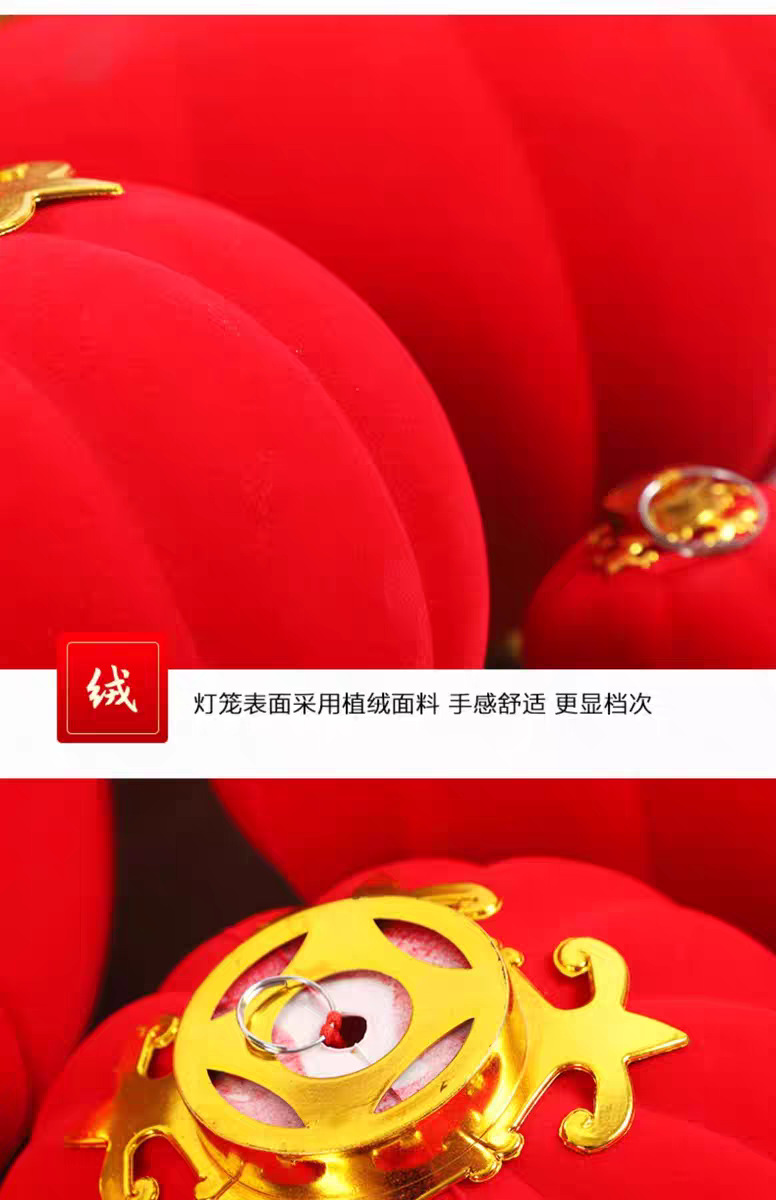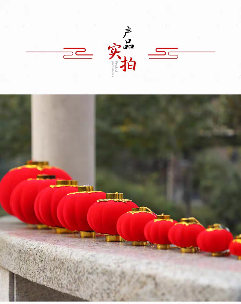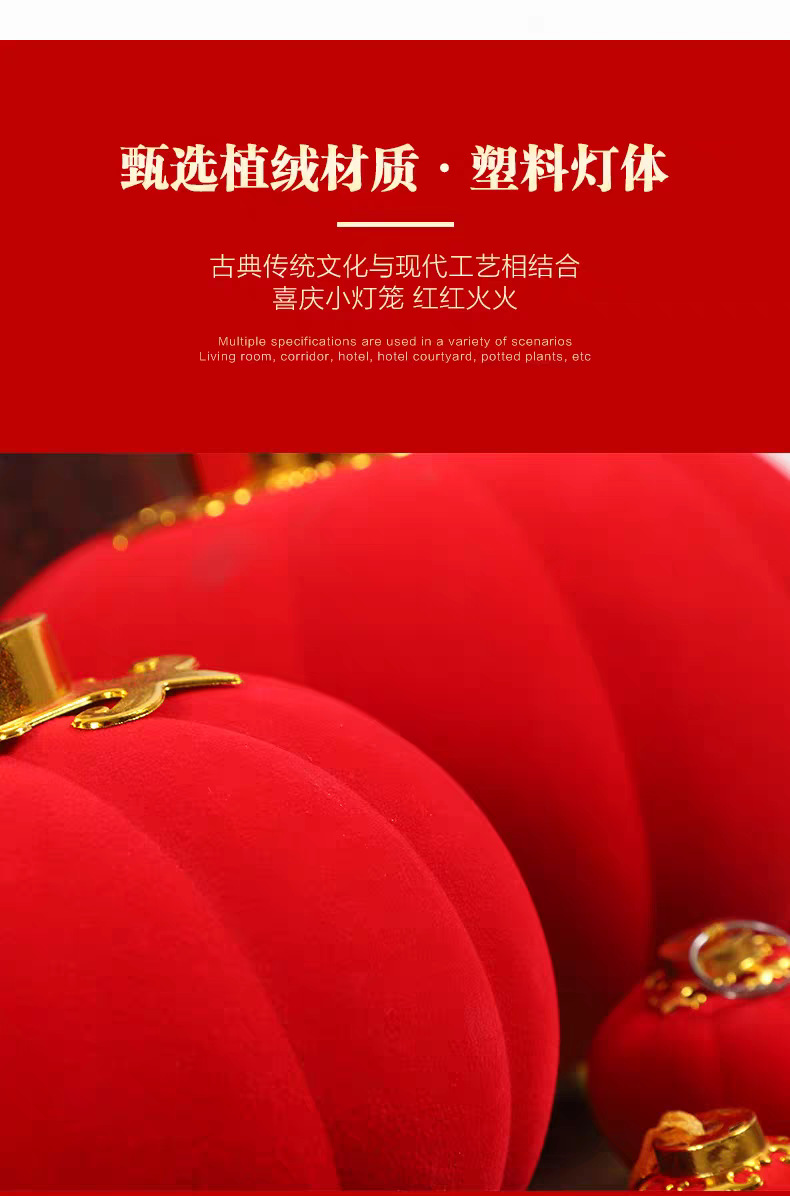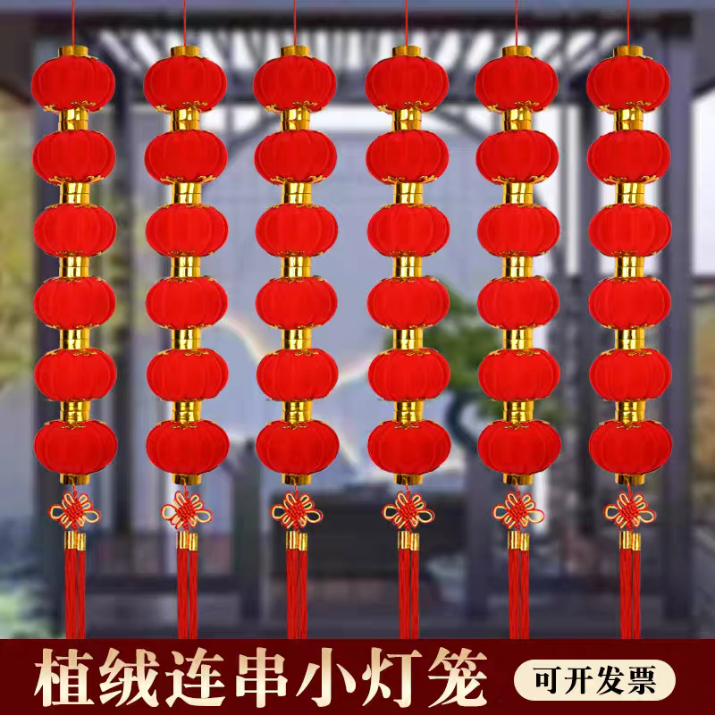 植绒小灯笼串挂饰大红连串灯笼元旦春节新年装饰品结婚时场景布置