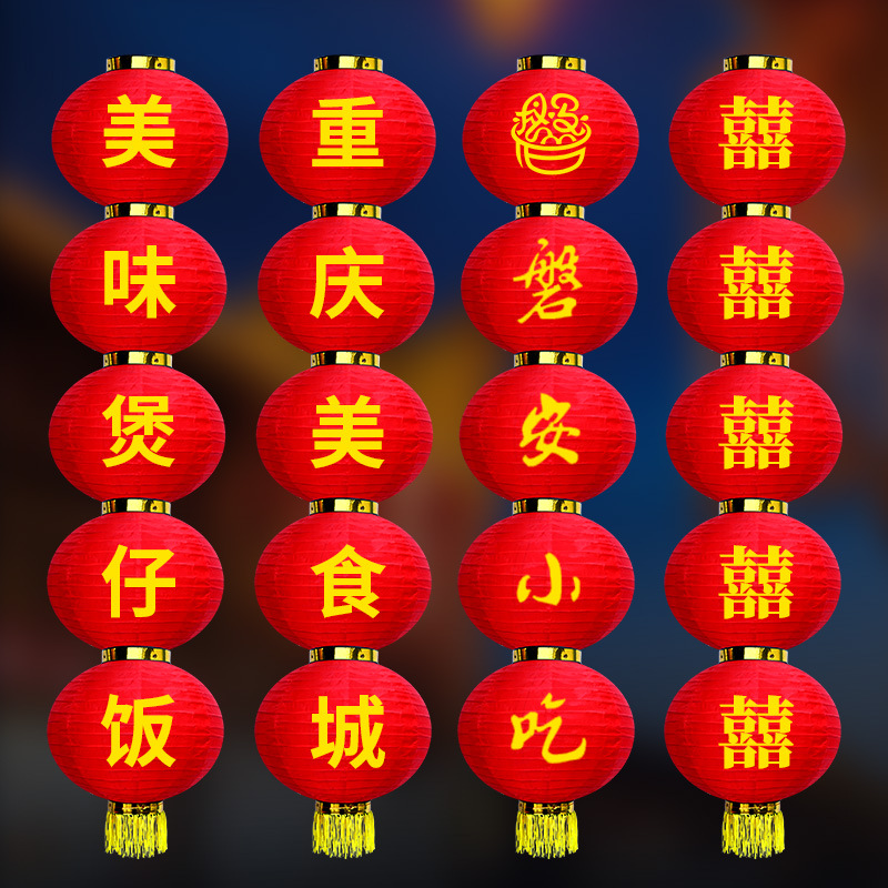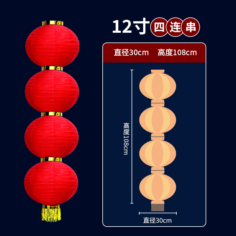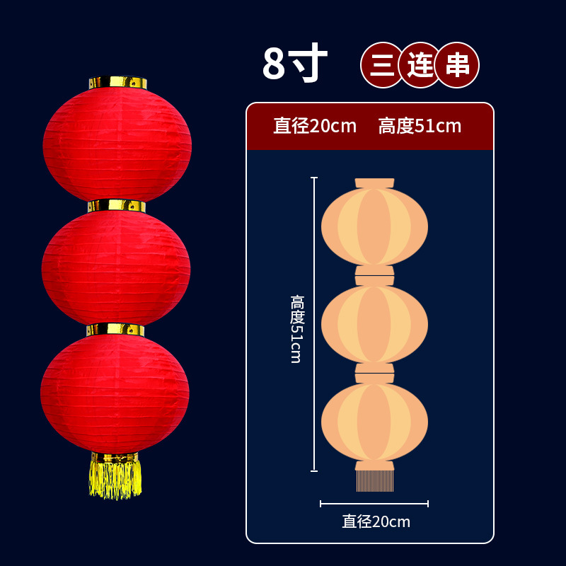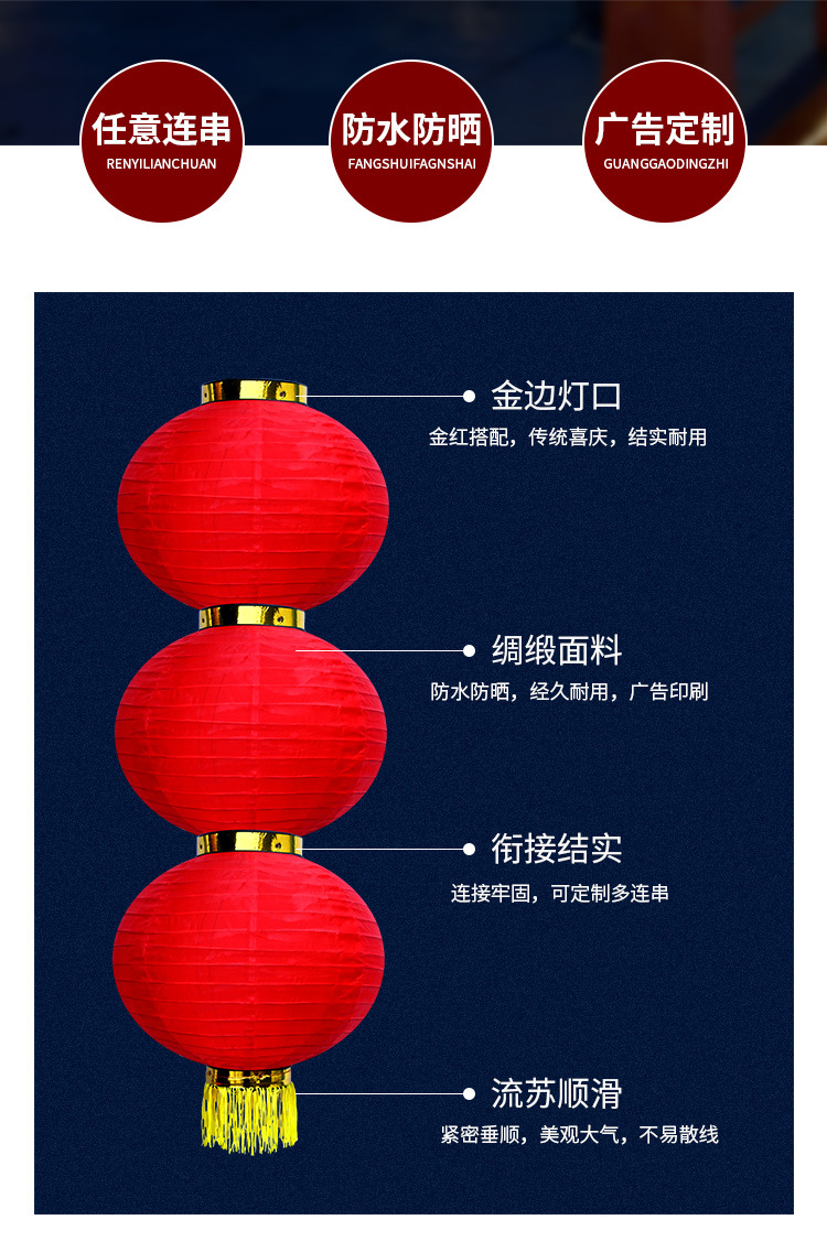 新年拉丝大红圆三四五连串灯笼春节户外防水绸布街道装饰折叠灯笼