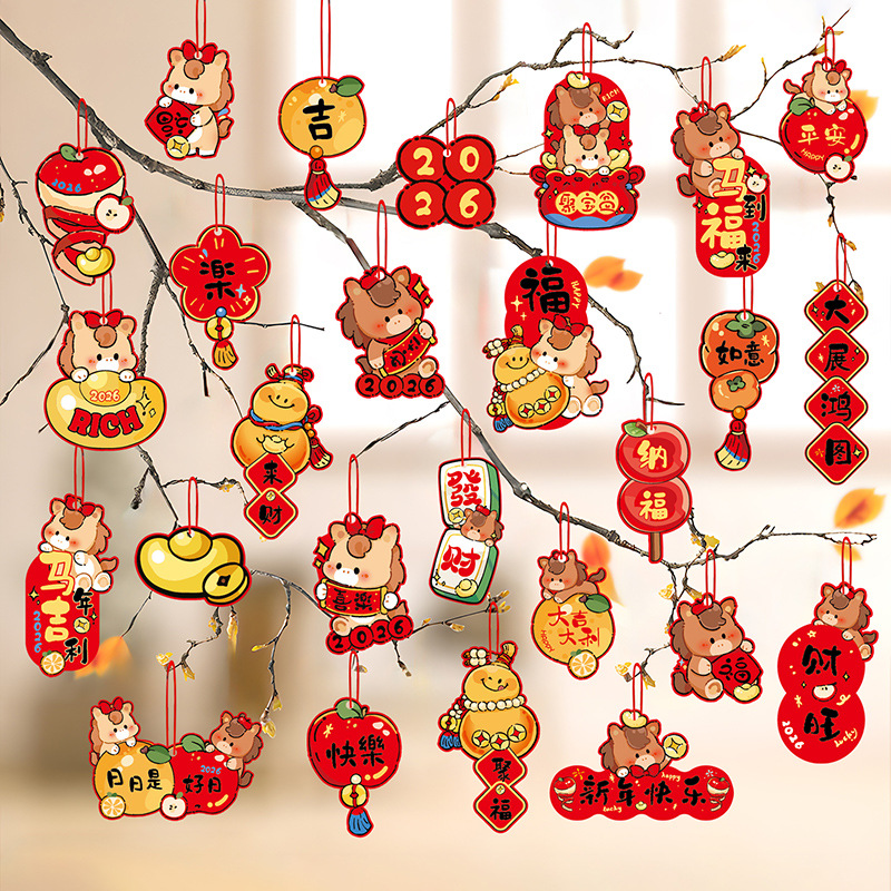 福字小挂件2026马年新款创意新年小灯笼装饰品春节盆景绿植小挂饰