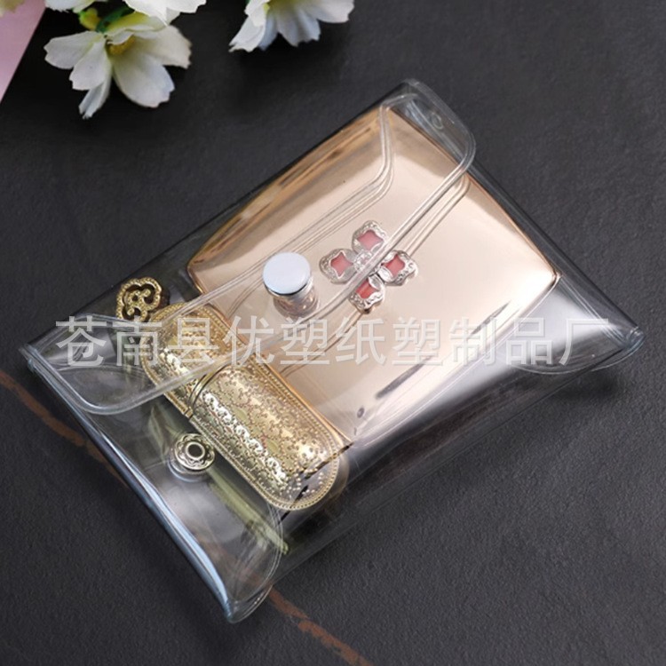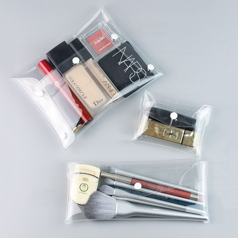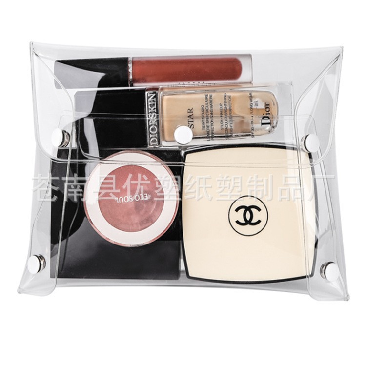 现货PVC透明化妆品包旅行便携眼影粉饼口红化妆刷按扣收纳袋定制