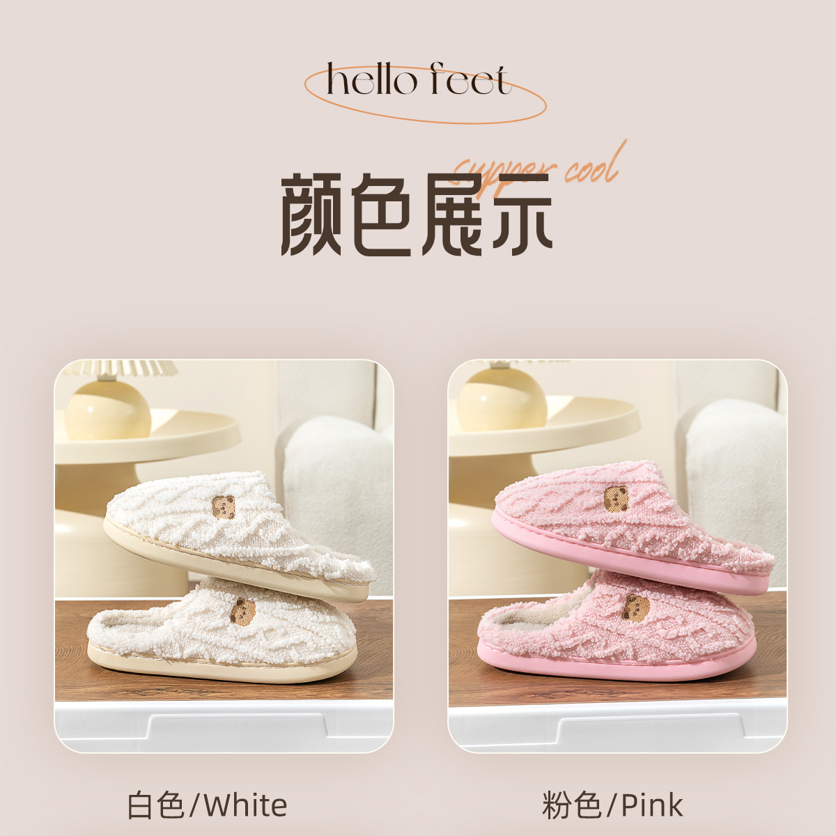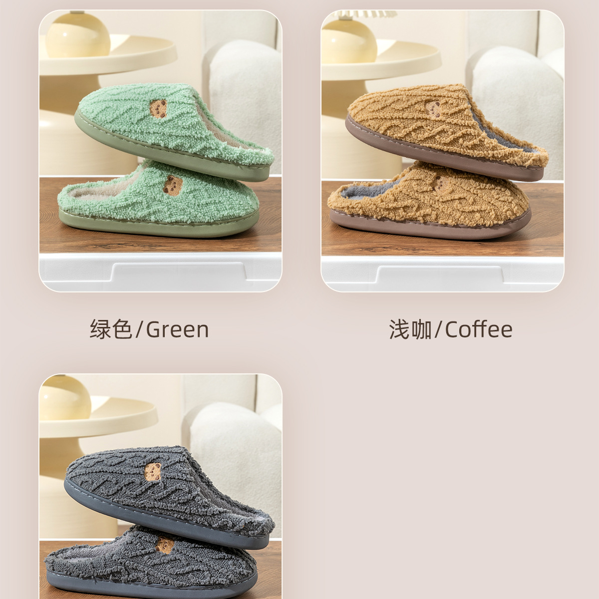 熊熊棉拖鞋女秋冬季2024新款网红爆款室内毛绒可爱厚底保暖毛拖鞋
