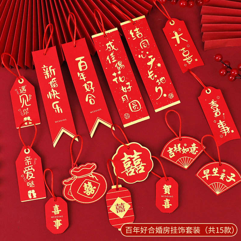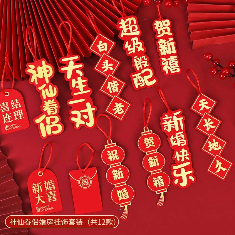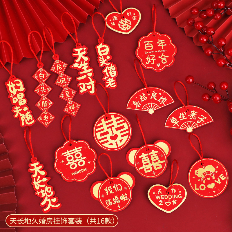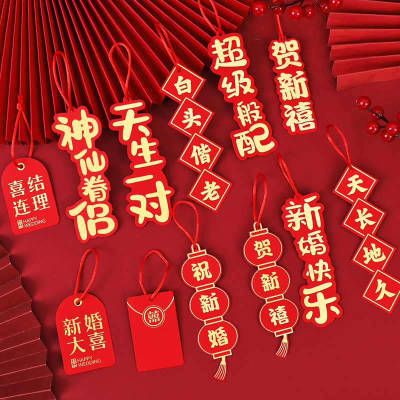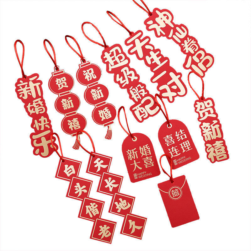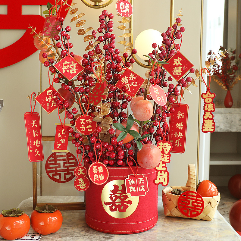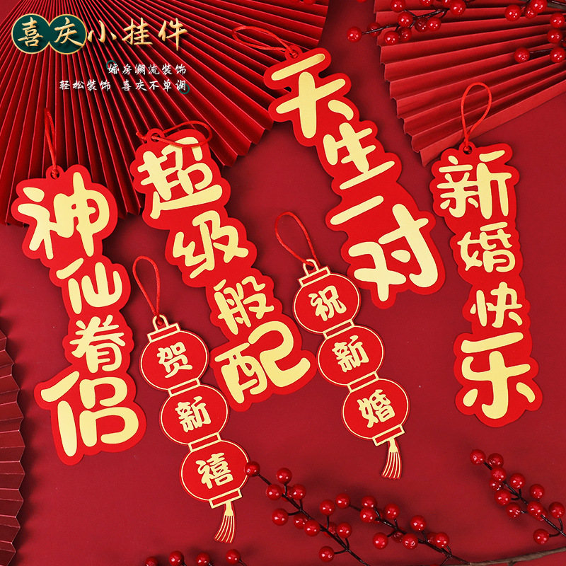 新房布置结婚喜字挂饰婚房装饰门把手客厅卧室床头乔迁盆景小挂件