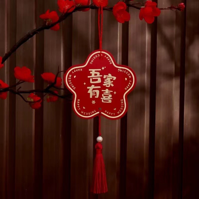厂家批发新款婚房挂件婚礼布置吊坠梅花吊卡创意绿植门把手装饰