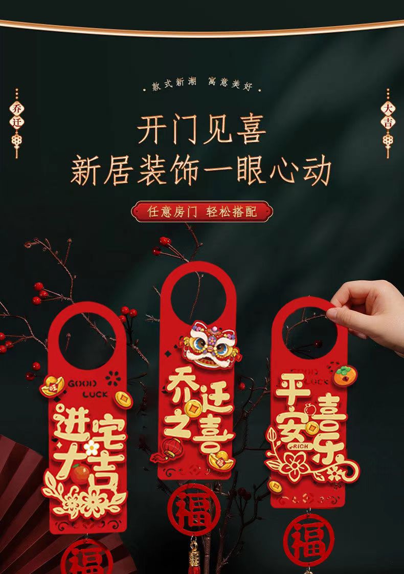 乔迁之喜门把手装饰挂件新居布置新房搬新家仪式入宅挂饰用品批发
