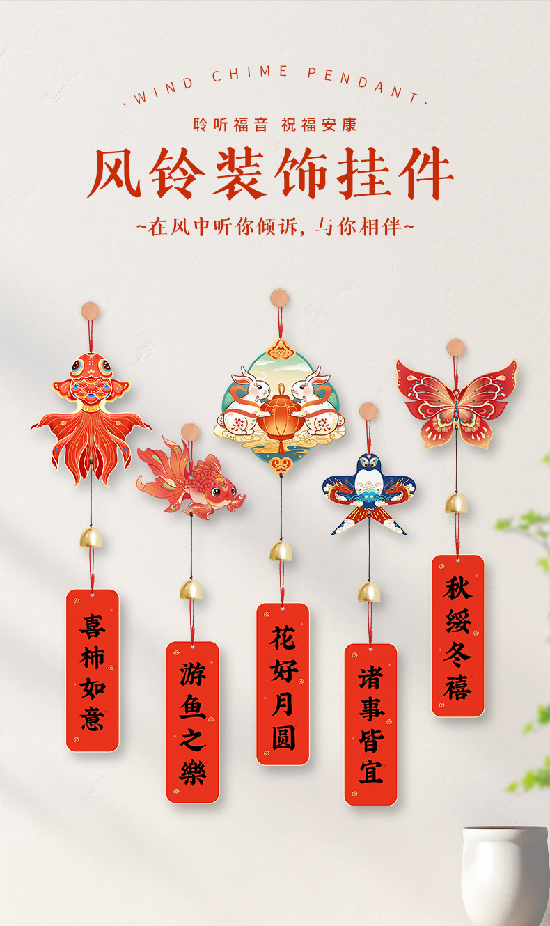 乔迁搬进新房装饰中式风铃挂件节庆用品创意玄关福字门把手挂饰