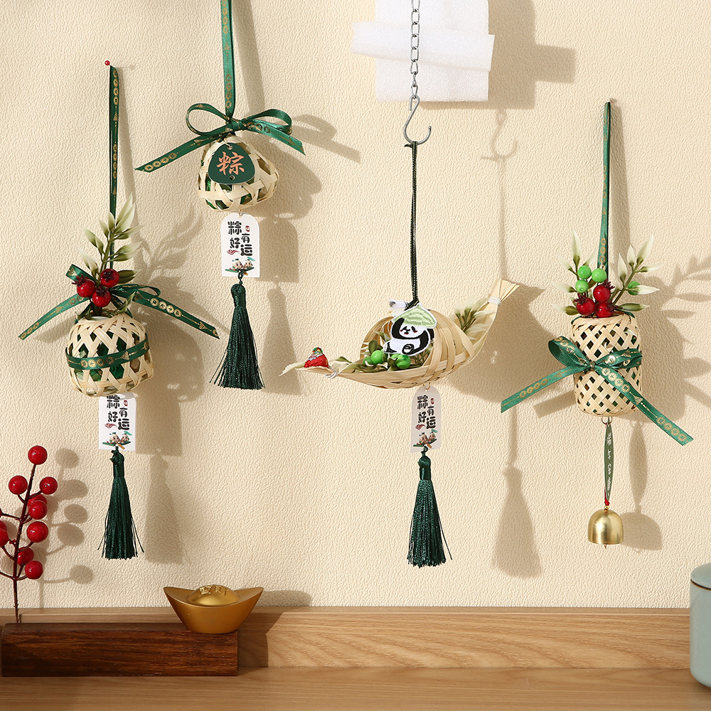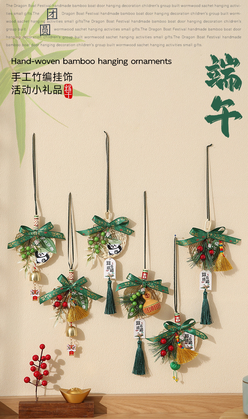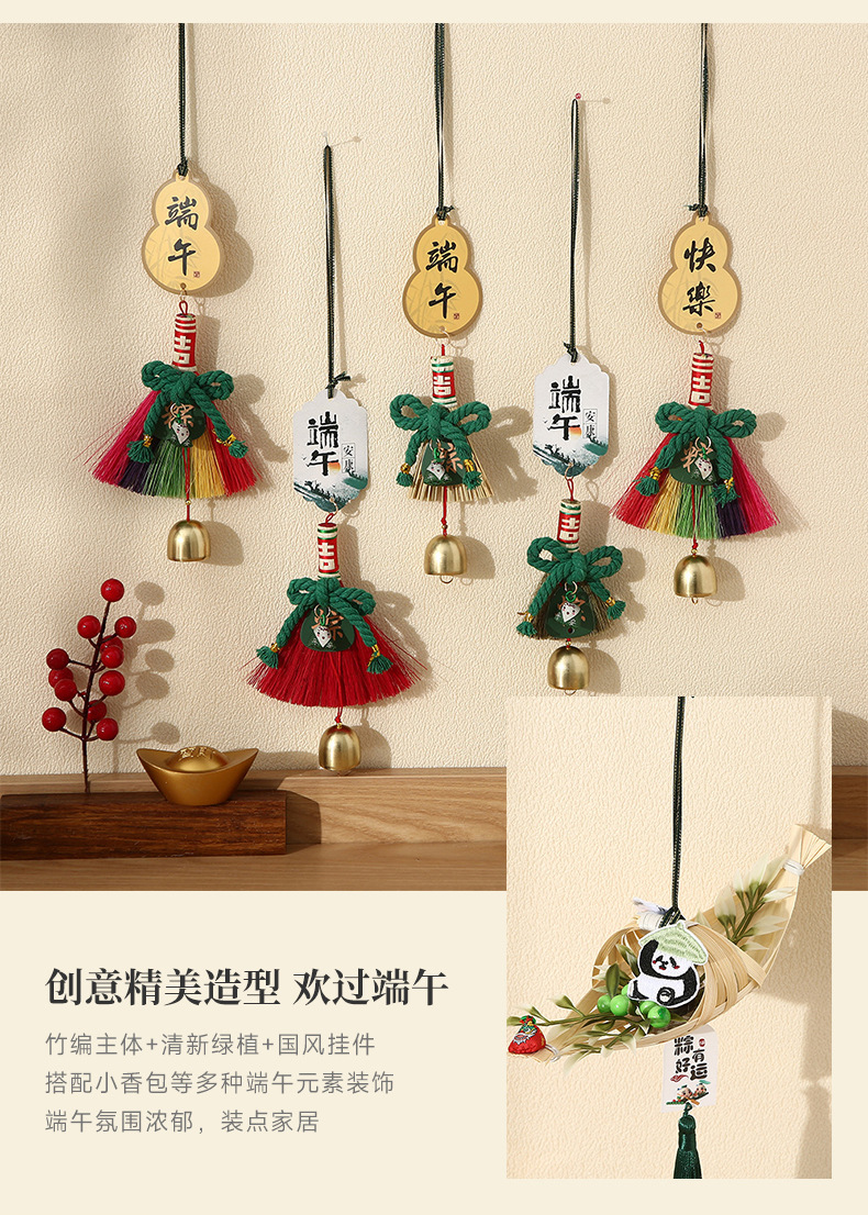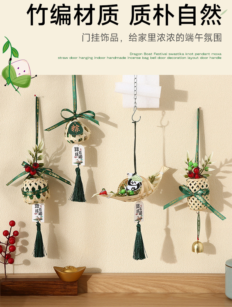 端午节小蒲扇小扫帚挂件竹编蒲扇入户门挂室内铃铛端午门把手装饰