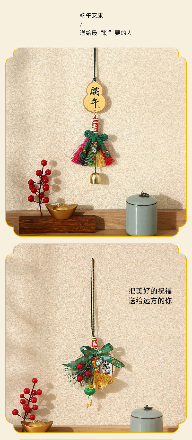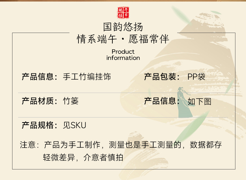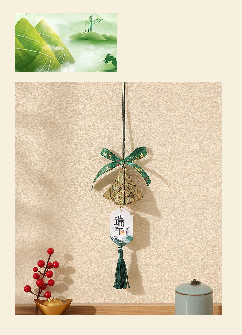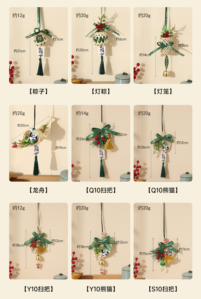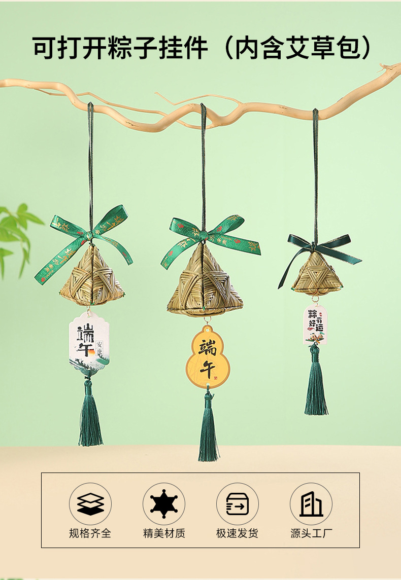 端午节小蒲扇小扫帚挂件竹编蒲扇入户门挂室内铃铛端午门把手装饰