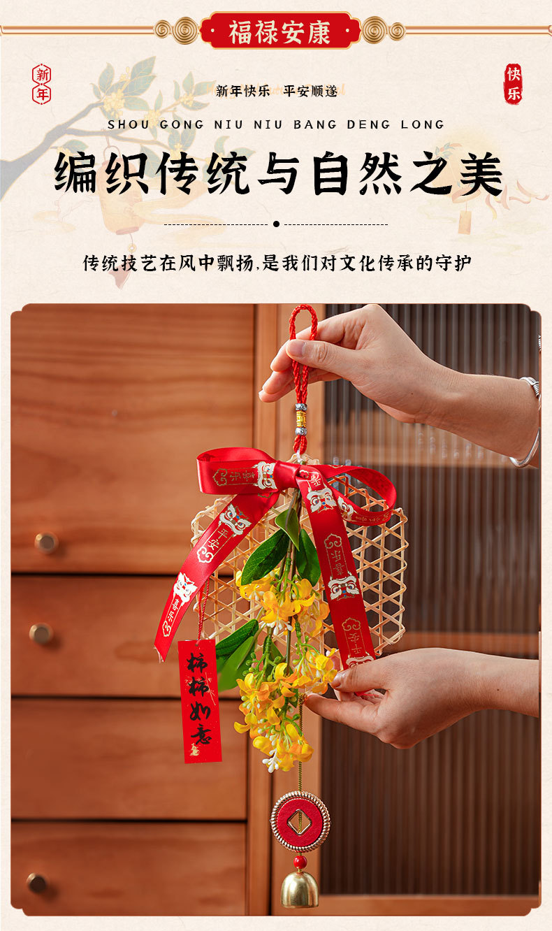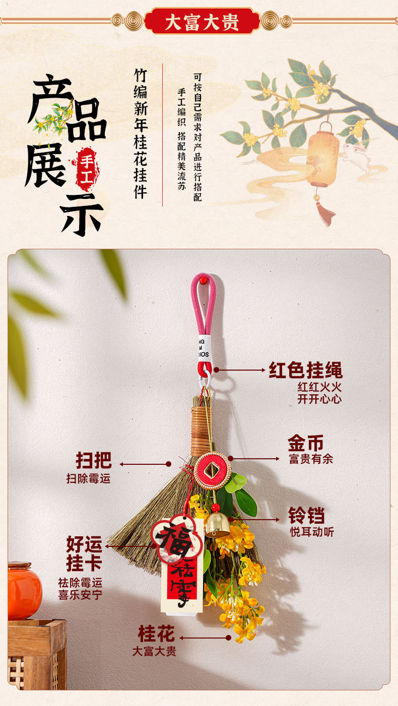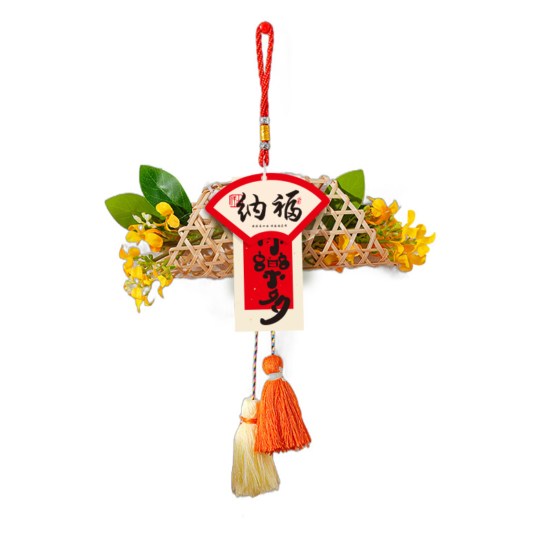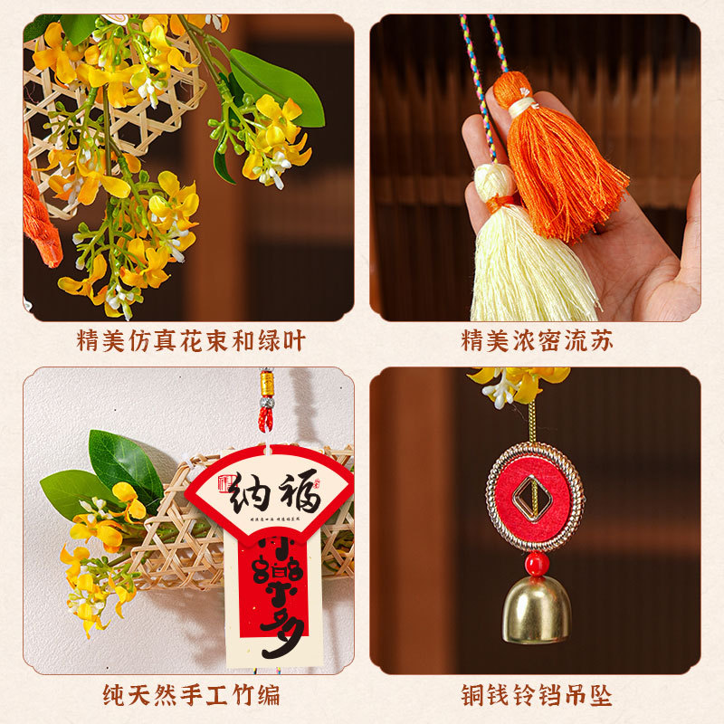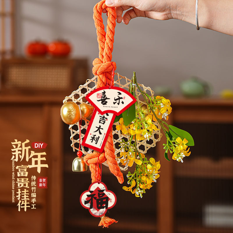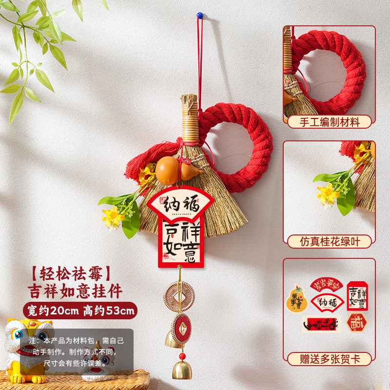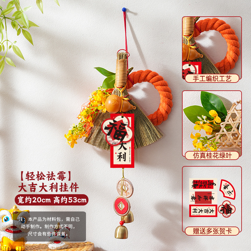 新年挂件竹编扫把门挂墙面铃铛喜庆入户门装饰布置门把手挂件