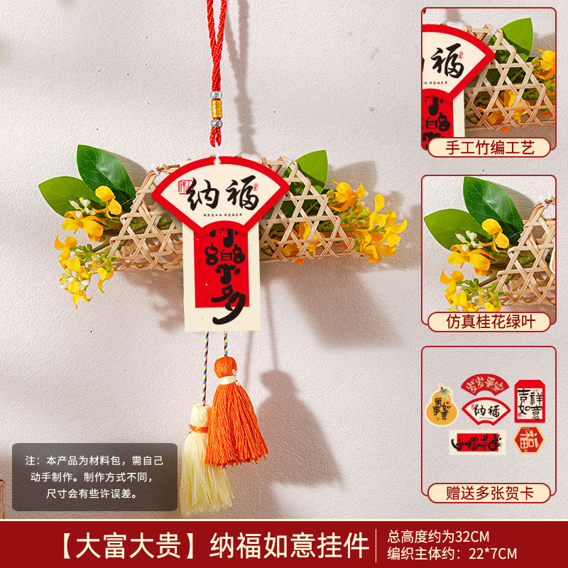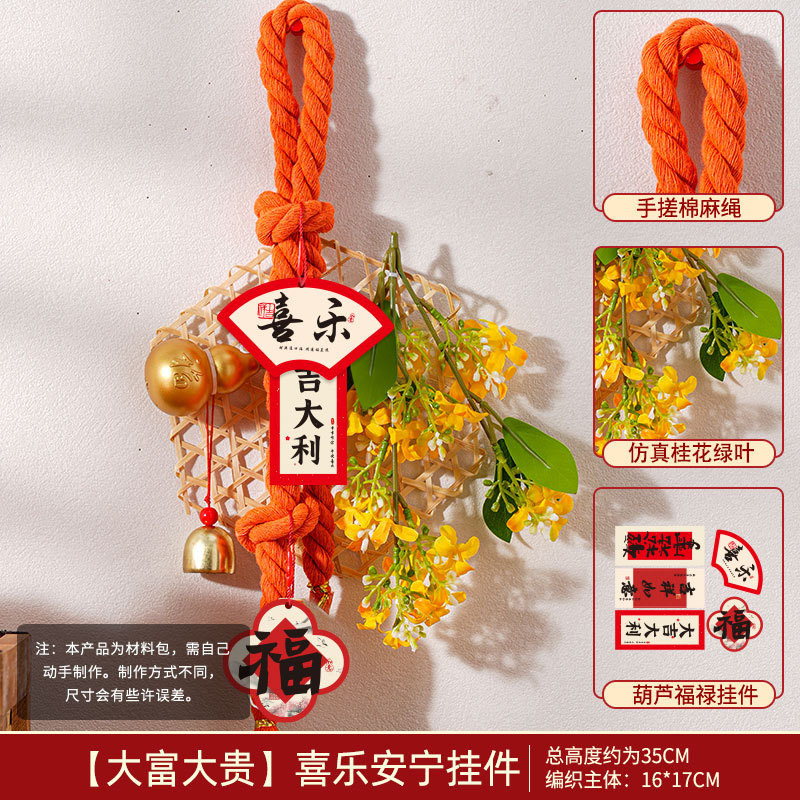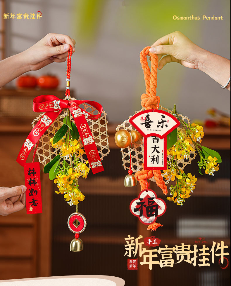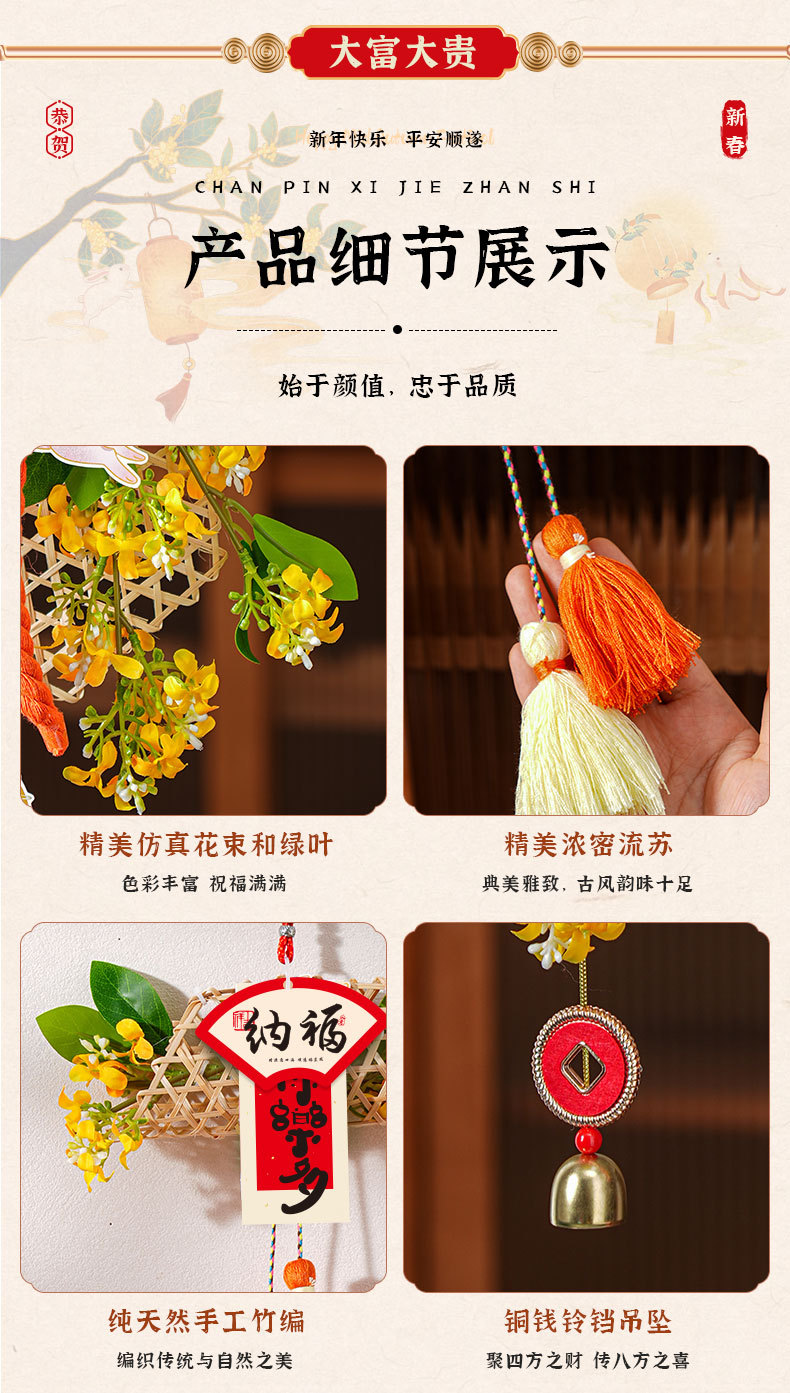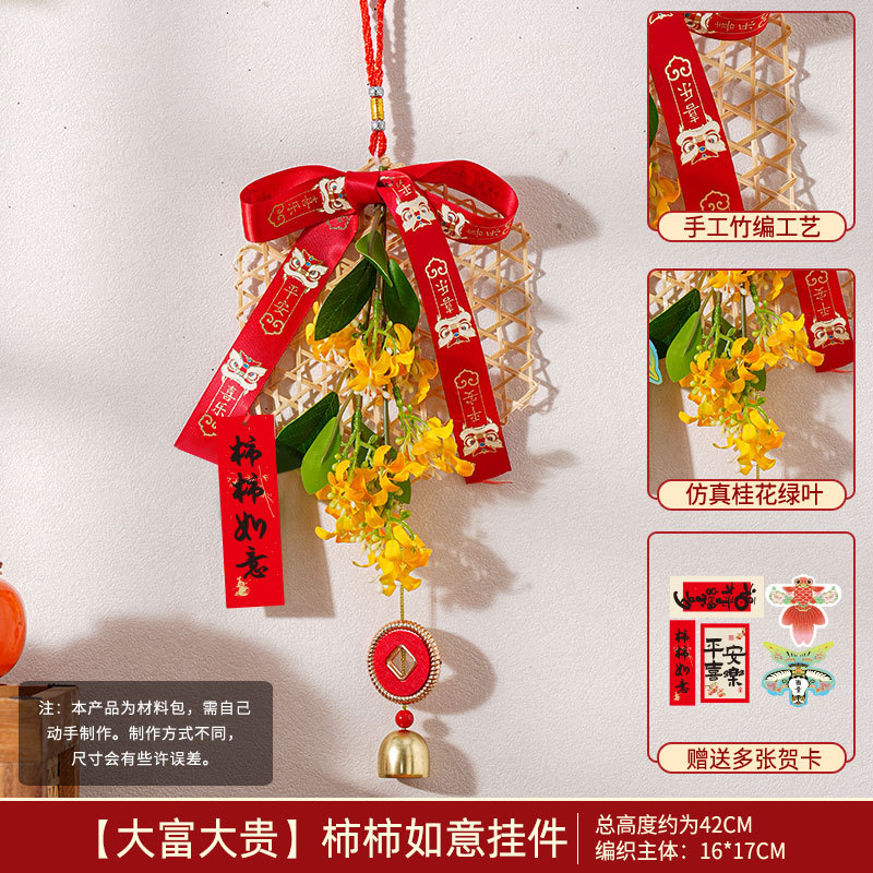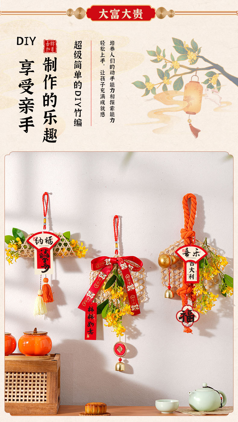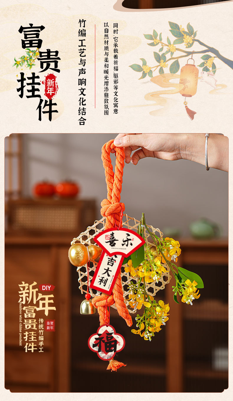 新年挂件竹编扫把门挂墙面铃铛喜庆入户门装饰布置门把手挂件