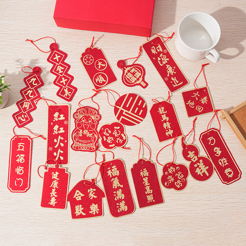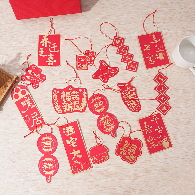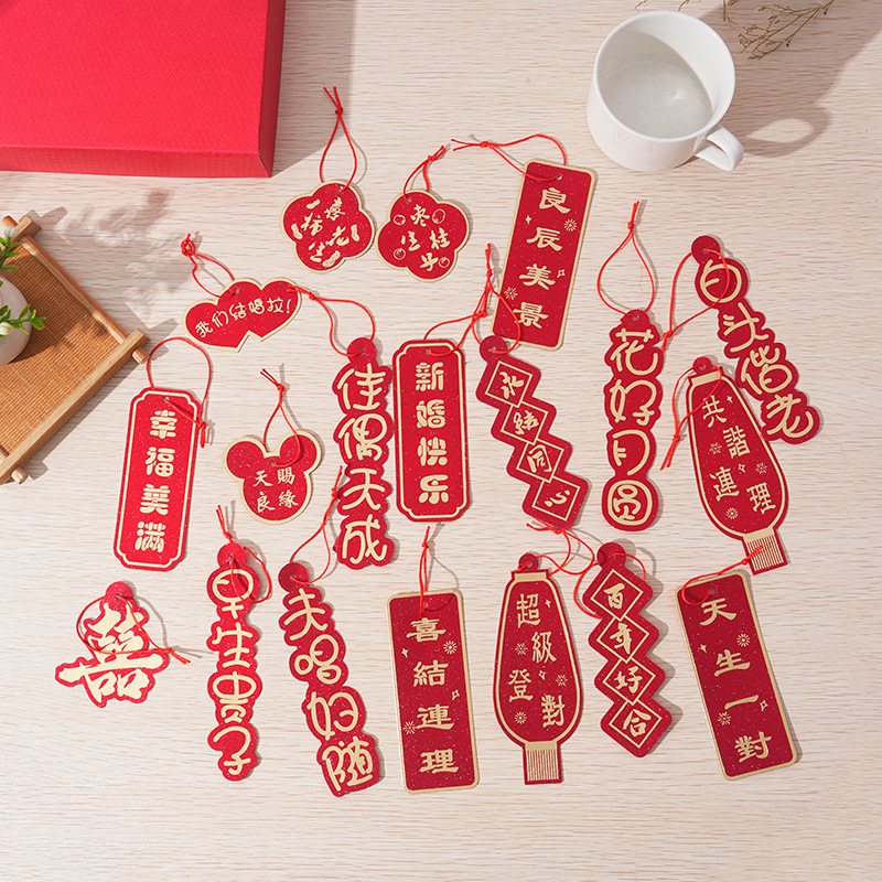 婚房装饰小吊卡挂件门把手喜字挂卡新年盆景小吊牌乔迁新居小卡片