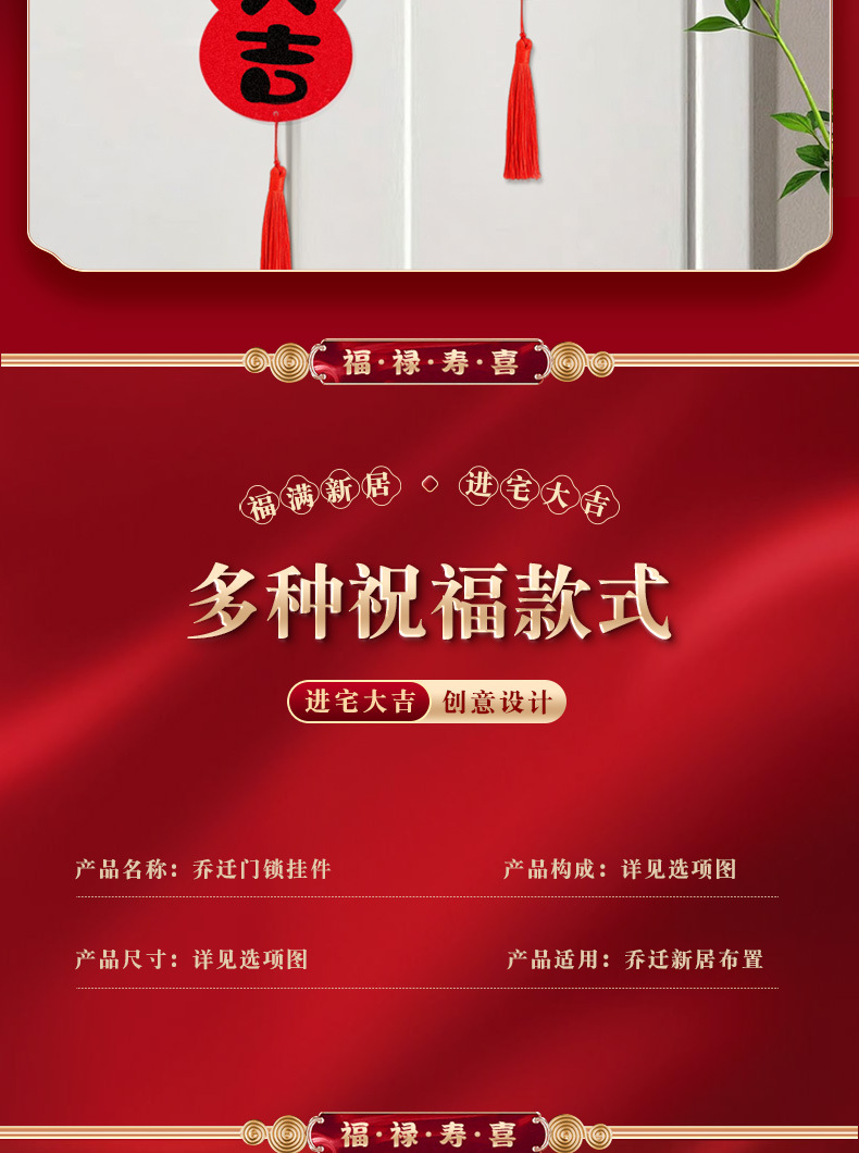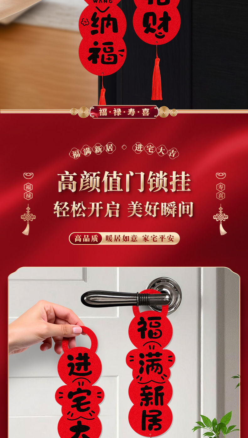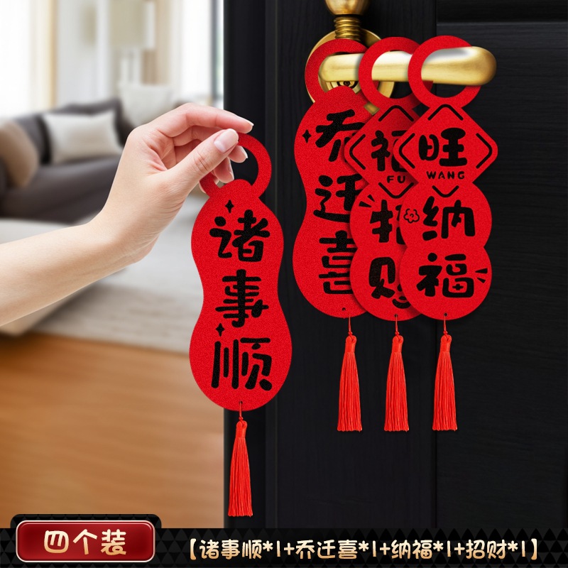 乔迁之喜挂件门把手保护套装饰新居搬家入宅仪式创意门锁挂饰用品