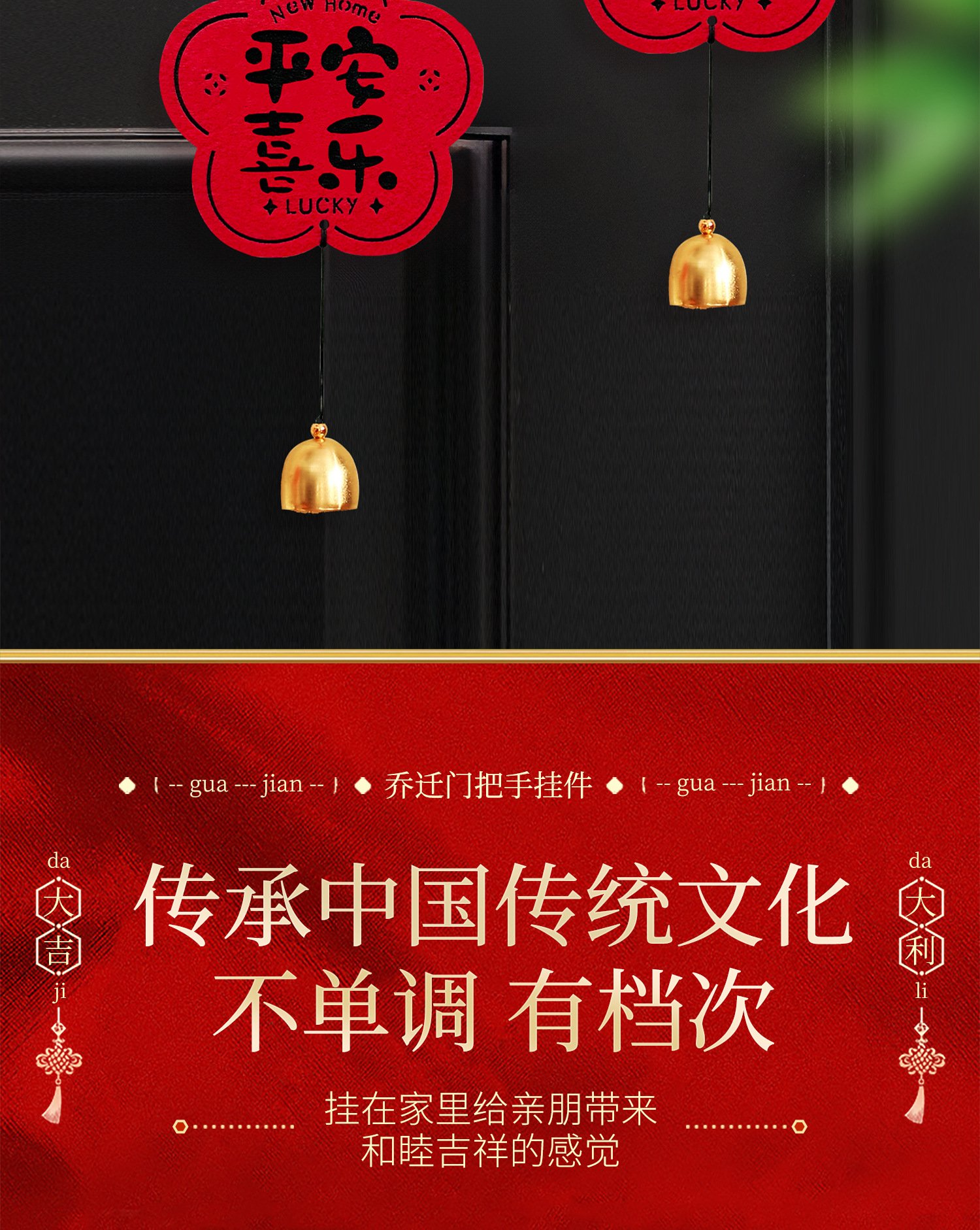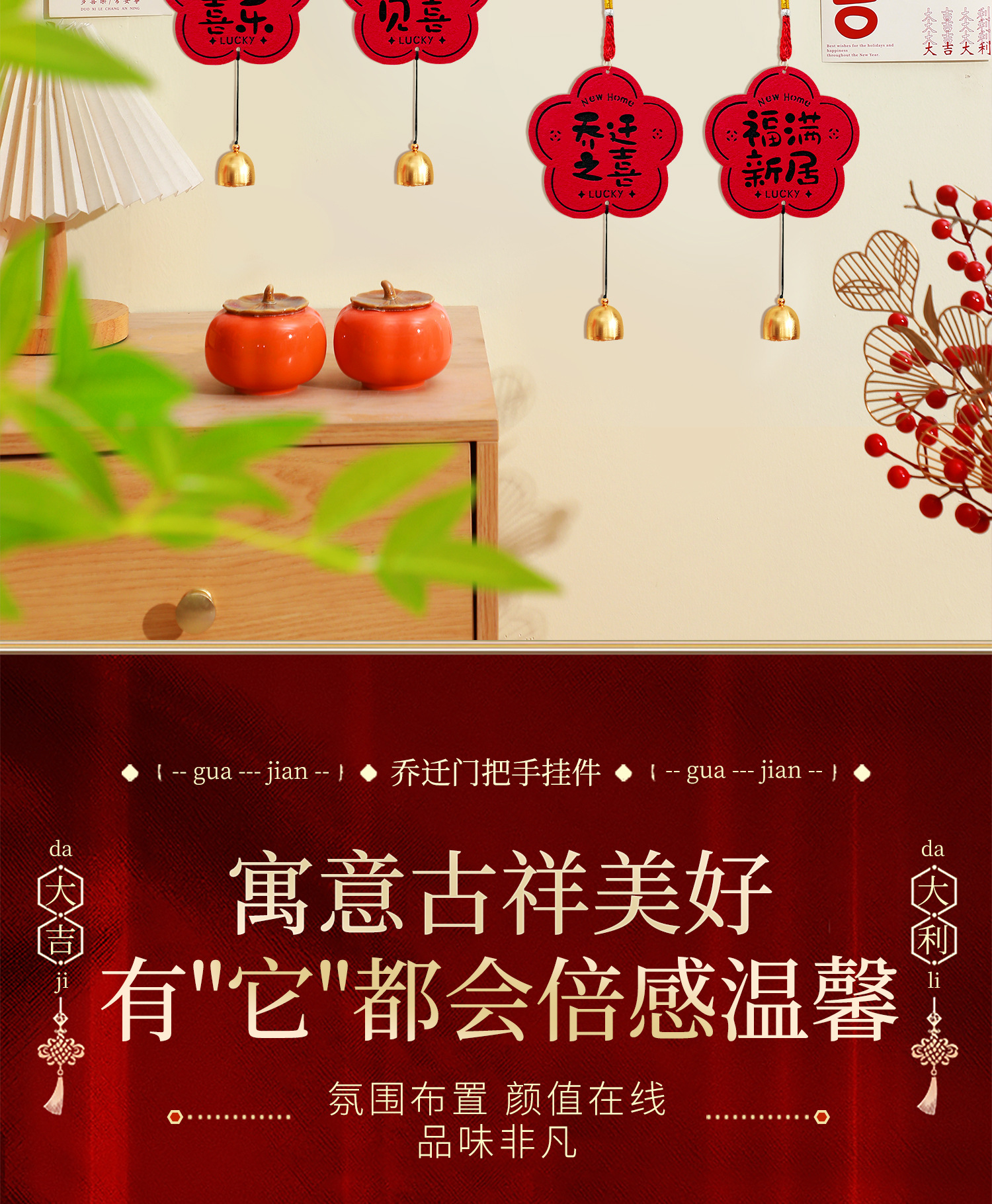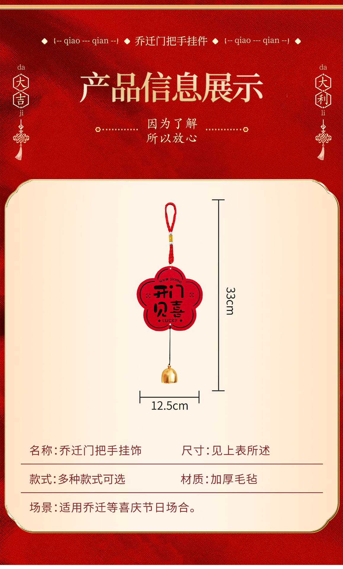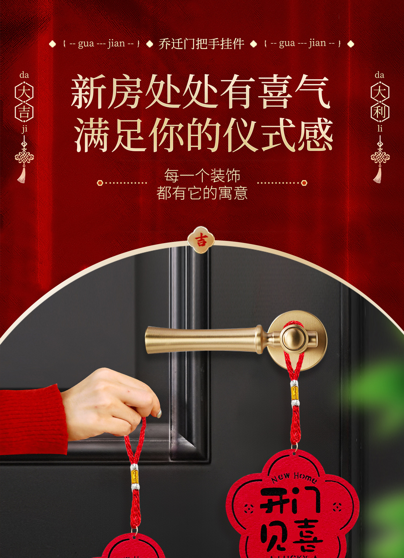 乔迁之喜装饰品门把手挂饰新居布置用品门挂搬家入宅仪式礼物挂件