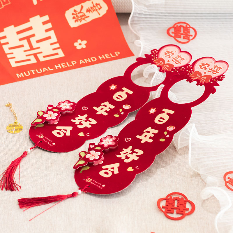 锁美家居婚礼门把手装饰卧室客厅门把手挂件婚礼装饰用品装饰布置