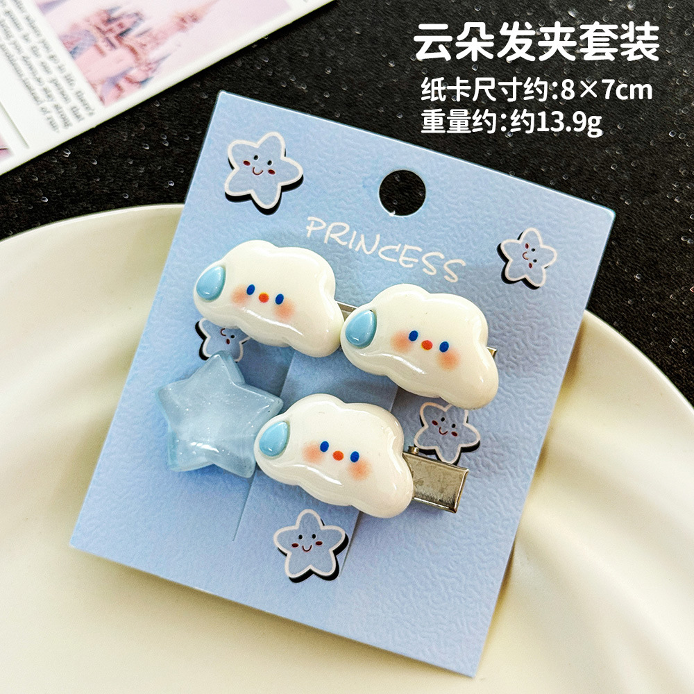 多巴胺云朵发夹 少女心星星刘海侧边夹可爱碎发夹Y2k发卡头饰套装