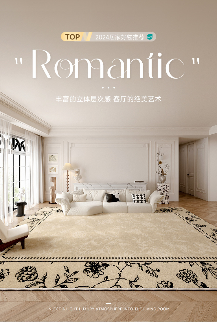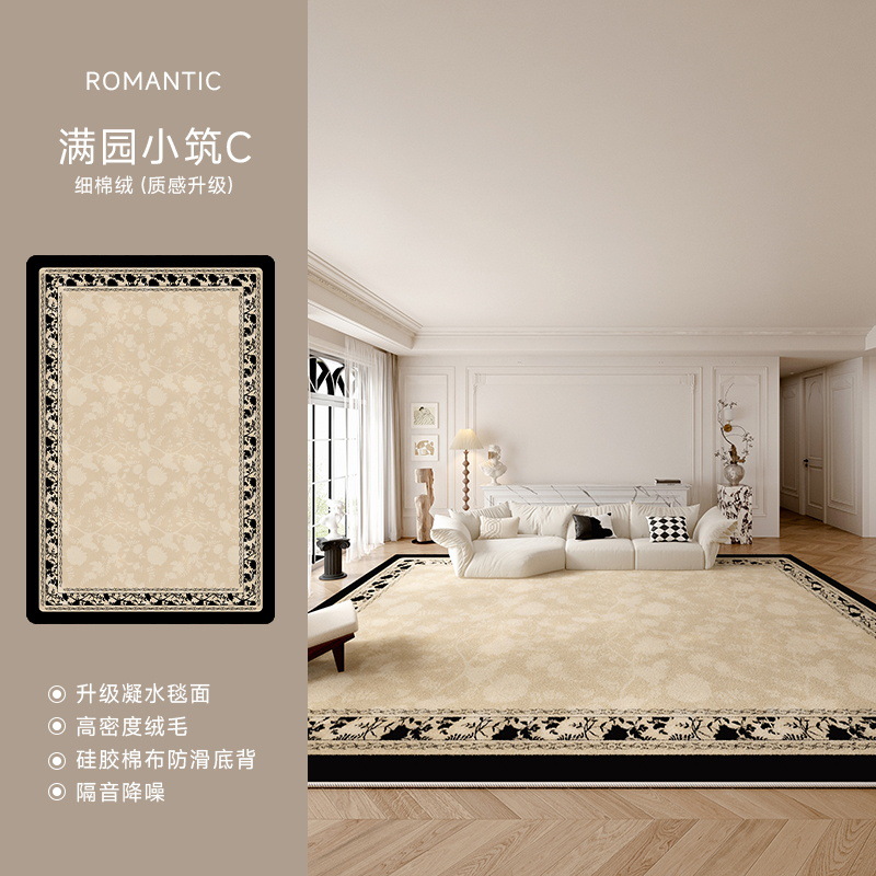 法式秘境花园防水抗污地毯客厅卧室茶几毯轻奢高级感中古风床边毯
