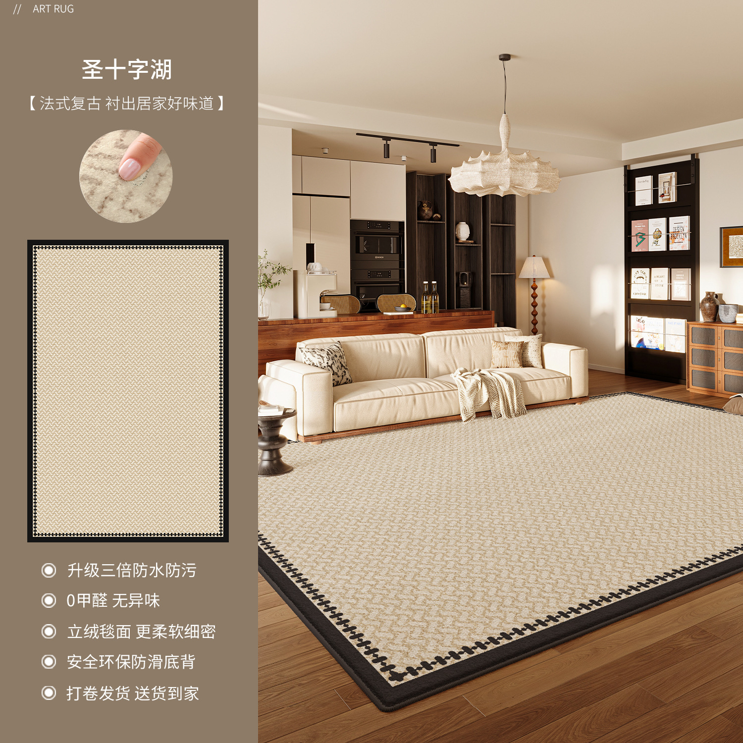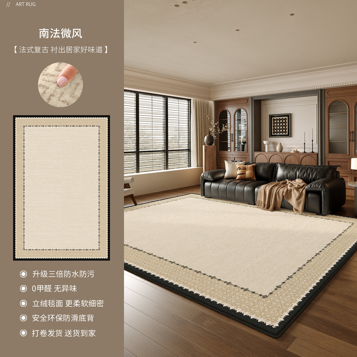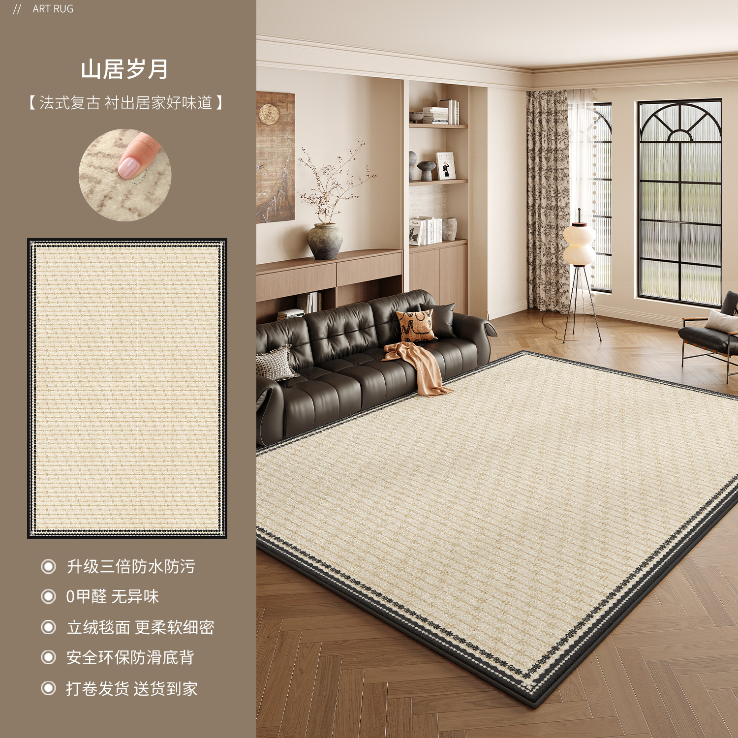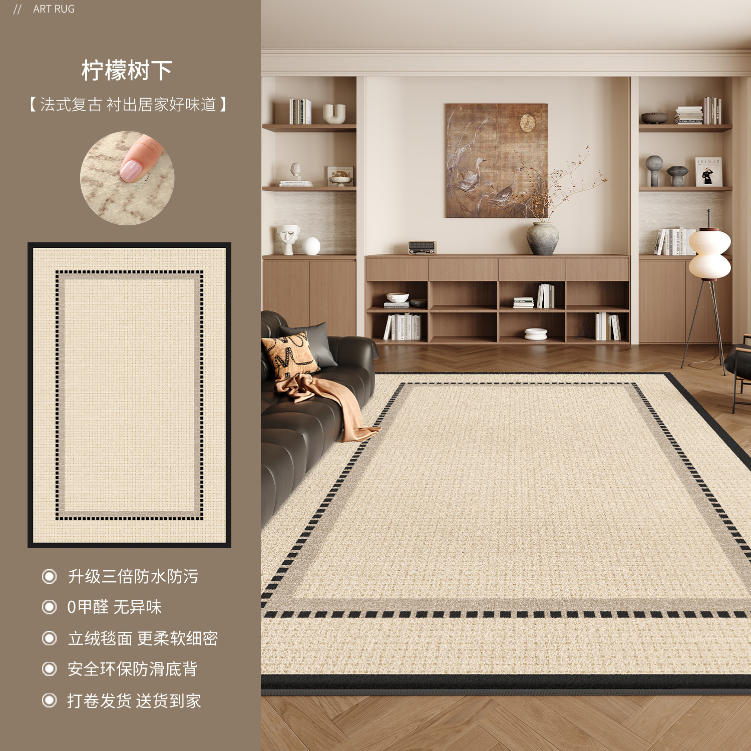 地毯客厅2025新款中古风卧室轻奢高级感沙发易打理防水防污地垫